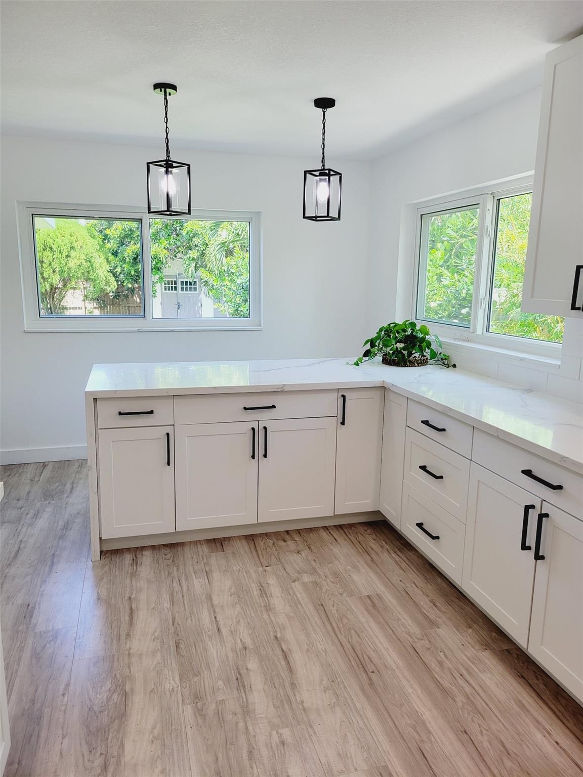 STUNNING tastefully updated WEST BOCA 4 BR on large quiet beautifully landscaped fully fenced lot. NO HOA. Home features a large very bright open kitchen with extra thick Calacatta quartz countertops and new appliances under warranty. The large master bath features free-standing soaking tub with separate shower and bidet. Guest bath is equipped with a tub and double vanity sink. The home boasts new SPC and laminate floors as well as modern baseboards, moulding and solid core wood doors. Watch the beautiful sunsets from the large covered patio surrounded by gorgeous lush palm trees. Home is protected with impact energy efficient windows and doors. New commercial water heater, washer/dryer, HVAC w warranty.