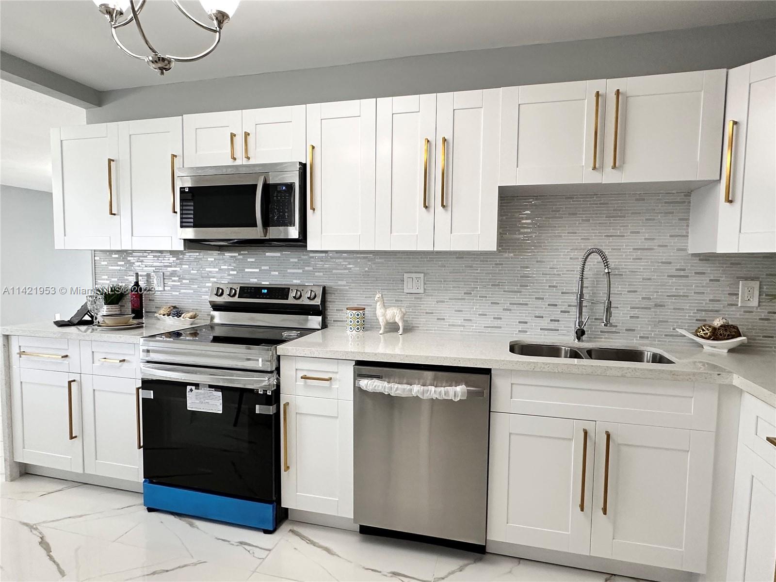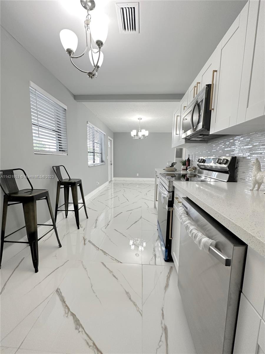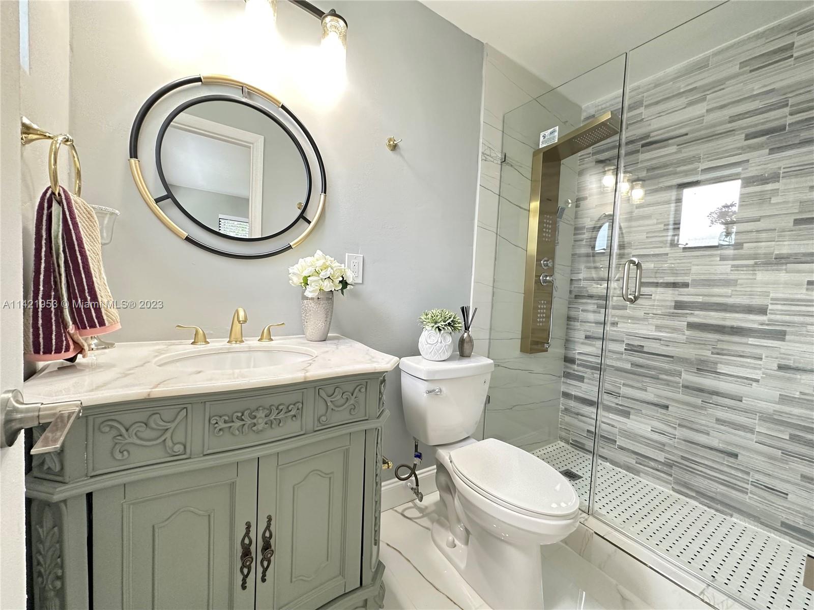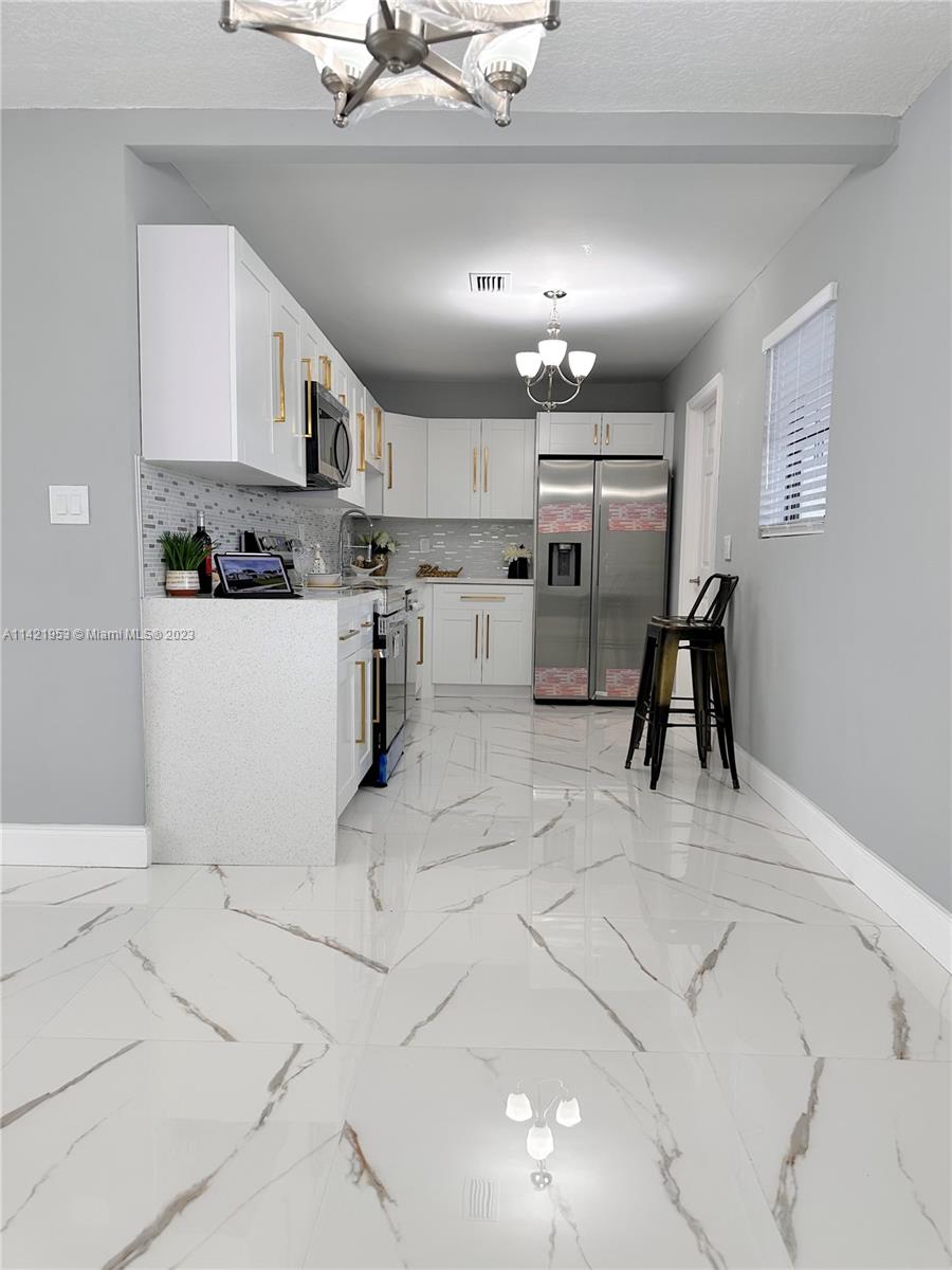 This unique GEM is in a league of its own in this area. Luminous elegant one story 3 bedroom and 2 bathroom.New Roof with permit.New interior and exterior electrical panel.New wiring in Kitchen, Bathrooms and Laundry room.New A/C. New A/C duct entire the house.New smoke detectors.New flooring Tile and Wood laminate in Bedrooms.New Bathrooms full remodeled w/New vanity, glass panels. New kitchen w/Quartz counter top on hard wood Cabinets with New SS Appliances.New Plumbing & Electrical fixtures.New full size washer&dryer.New water heater.New interior and exterior doors.New landscaping with New Sprinkler piping and Equipment.New Blinds.New ceiling insulation.New driveway asphalt.Freshly exterior & interior painting. Must see.