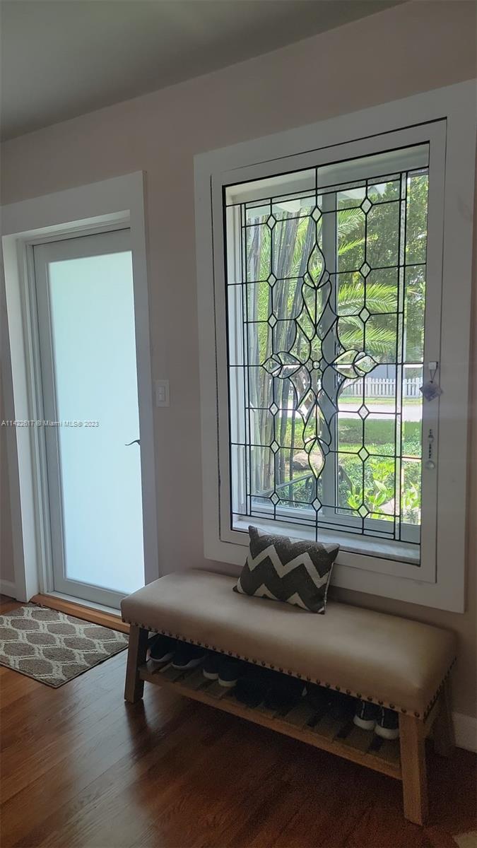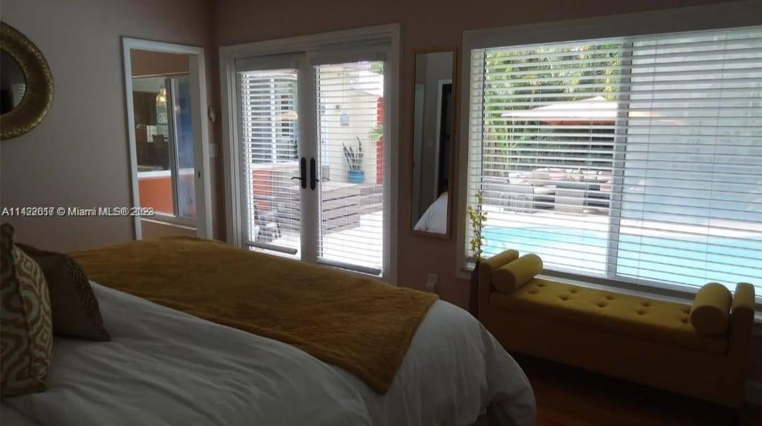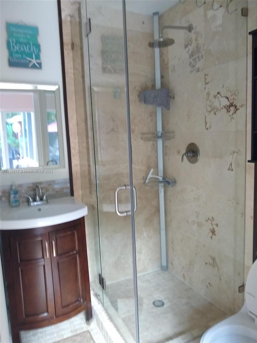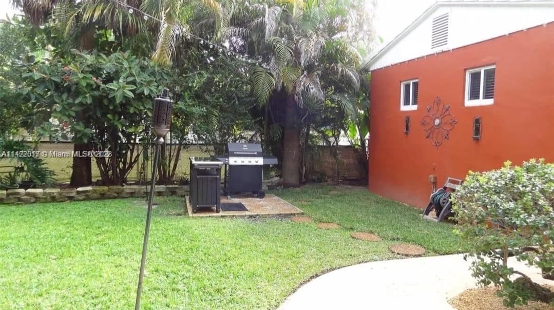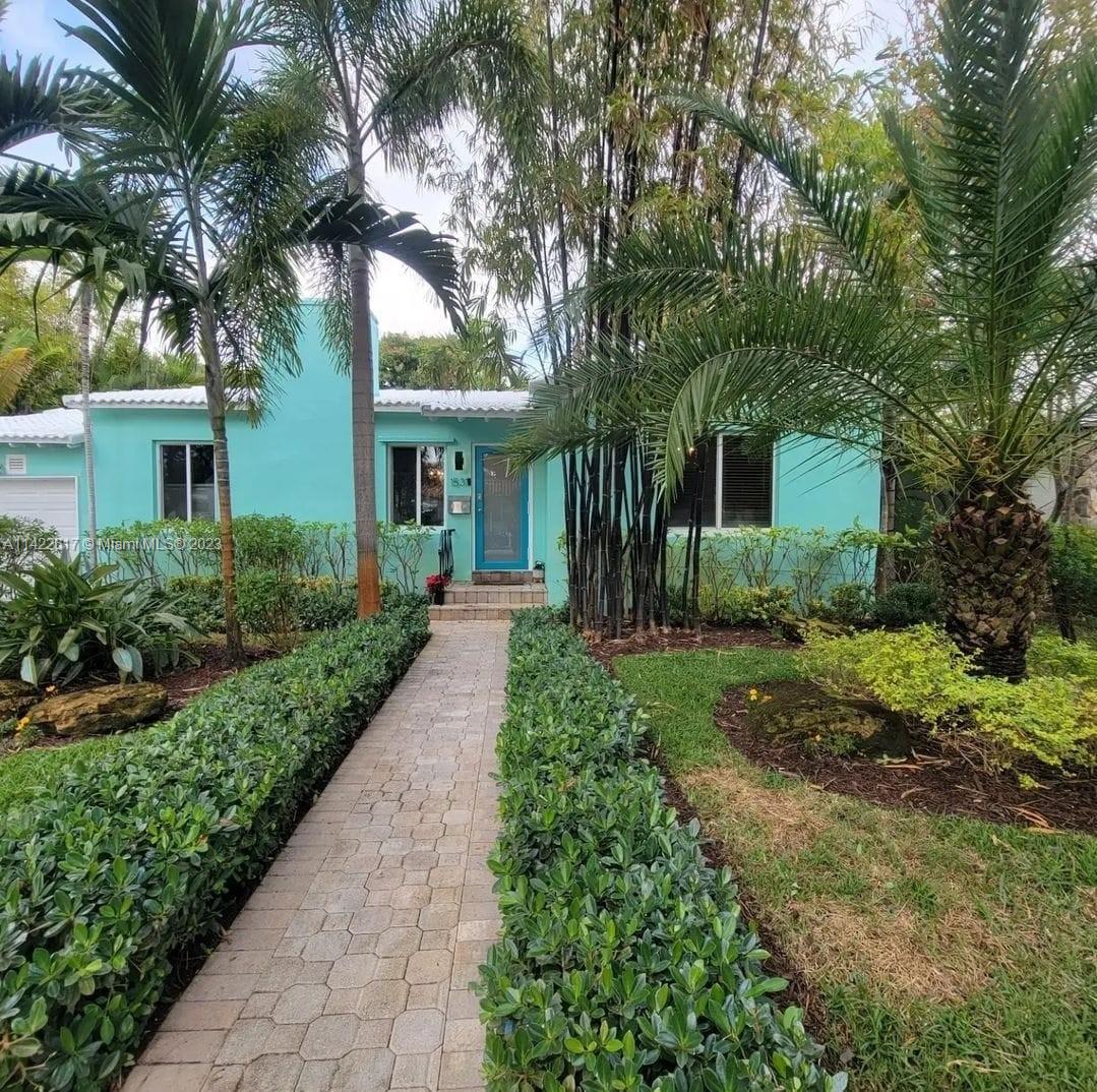 Fully furnished. Turn-key property. Charming Home with Modern Upgrades and Pool. The 1560 sq ft living space has 2 bedrooms and 2 full baths. The kitchen boasts black granite countertops, a mosaic backsplash, and LG smart wifi-enabled appliances. Enjoy the sunroom's views of the pool and mango tree. The dining room features a wood fireplace. Impact windows and doors, York air conditioner, and security enhance comfort. Outdoors, find a delightful in-ground pool with multi-colored lights, travertine pavers, a grill, and a serving station. The front yard is landscaped with pavers, Gardenias, Ixoras, Palms, and a majestic coconut tree. Don't miss this well-maintained home with a pool oasis. Own comfort, style, and relaxation.