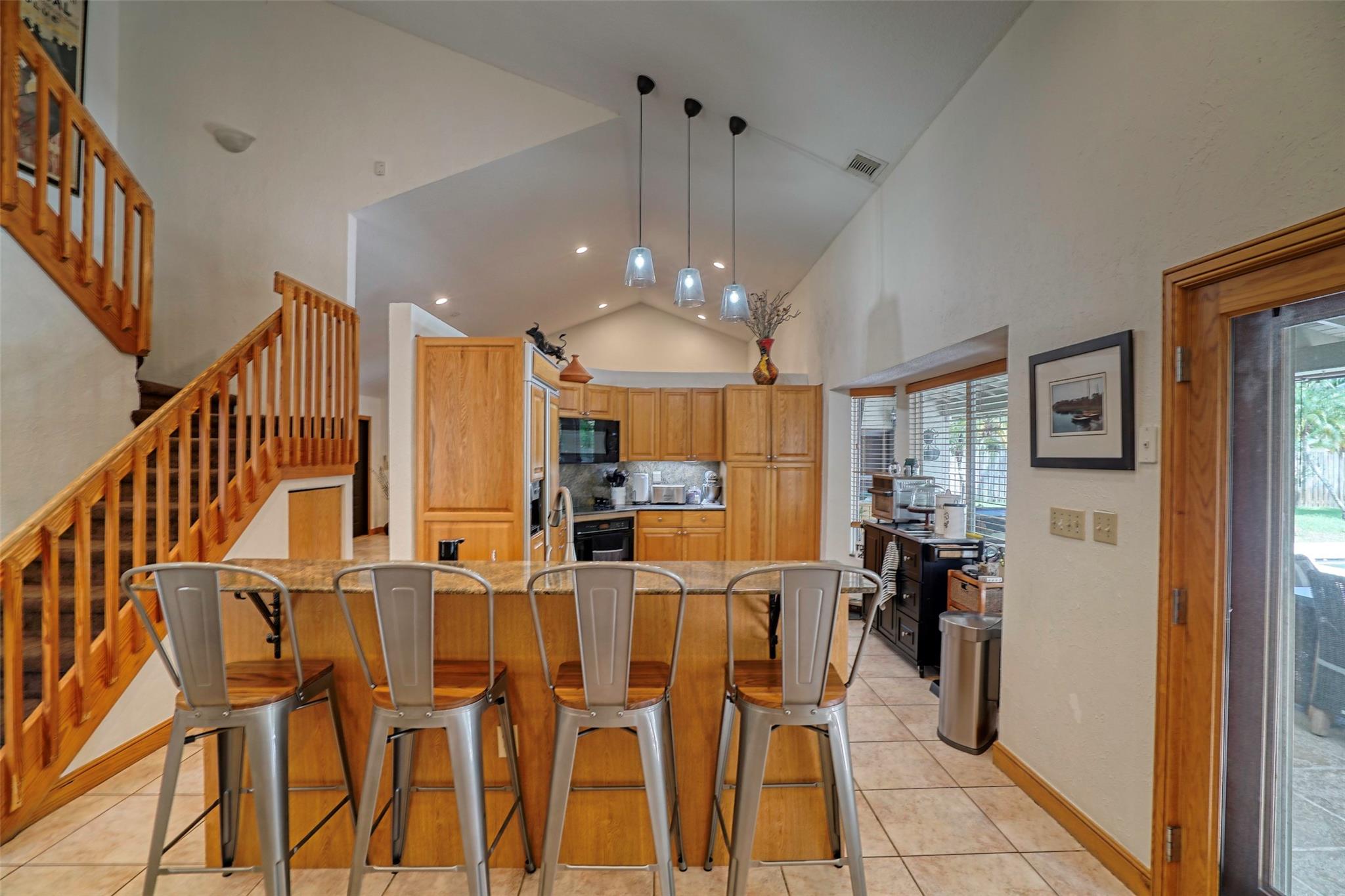 Welcome to this stunning 3-bedroom home with an additional bedroom suite, nestled in the sought-after Shenandoah. The open floor plan, vaulted ceilings, and ceramic tile create a captivating ambiance. The large gourmet kitchen with French doors leads to the inviting pool area. Imagine laughter as guests enjoy the saltwater pool and spa. A full pool bathroom offers convenience for outdoor living. Tranquility awaits in the master bedroom on the 1st floor, with an expansive master bathroom. Upstairs, two bedrooms and an extra bedroom offer versatile spaces. The roof is approximately 4 years old. Excellent shopping, delightful restaurants, and easy access to major expressways, you will have everything at your fingertips.
