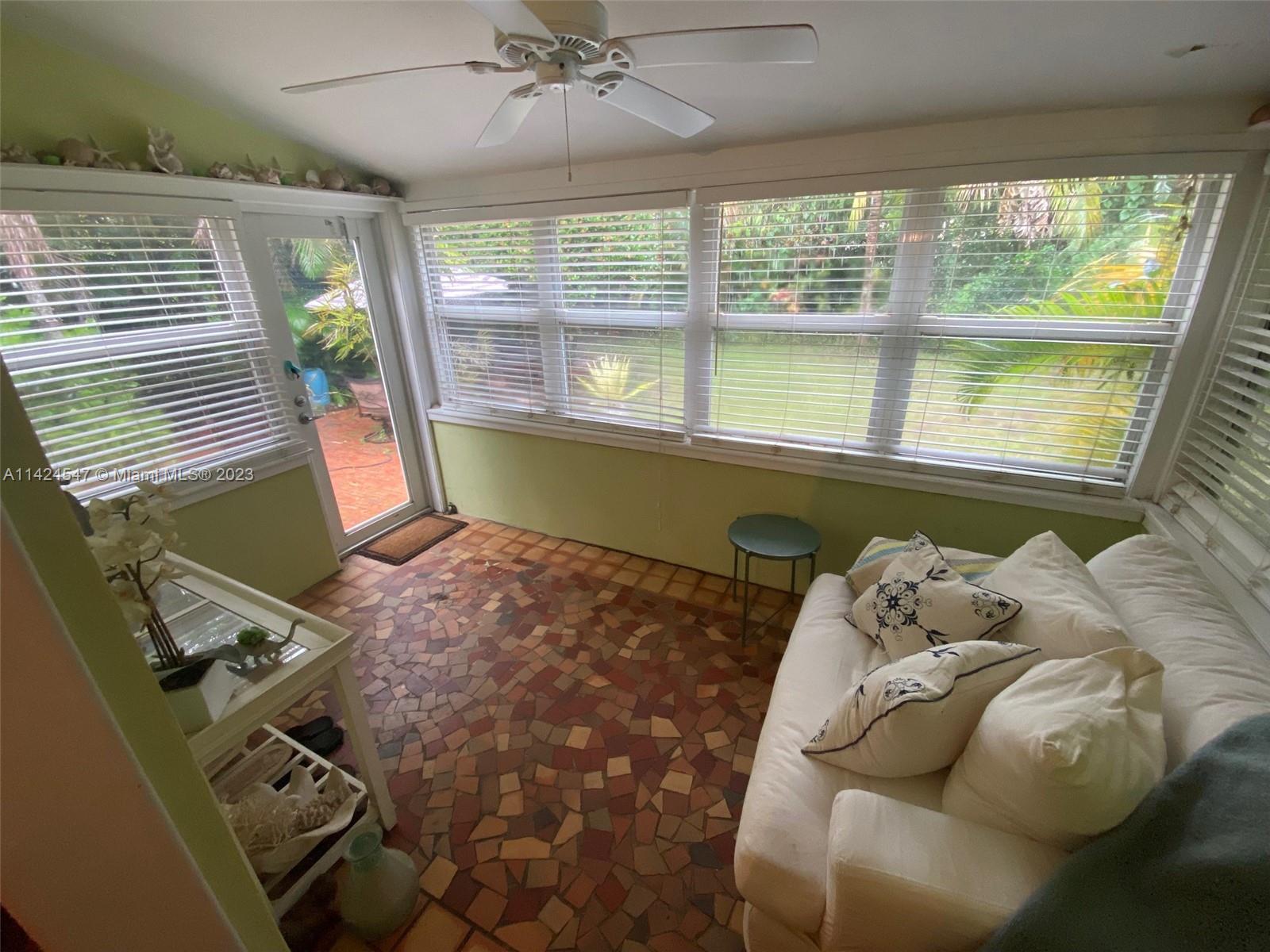 Adorable 2 bedroom 1 bath bungalow Miami Shores home with good bones. 1-car attached garage. Property sits on large 9,150 sq. ft. lot. Older roof, but a/c condenser & air handler only 10 months old. Water heater is 10 years old and in good condition. Shortly after the property was purchased by the current owner, all galvanized piping was replaced with pvc and copper, all electrical was updated, and the kitchen & bathroom were updated at that time, as well. All windows are hurricane proof. Hot tub in rear of house is included with the sale. All appliances remain with the property. Washer and dryer are located in the attached garage. Garage storage shelving remain. Impeccably decorated, the rear sunroom wall requires some TLC, due to some recent water damage. Easy to show by appt only.