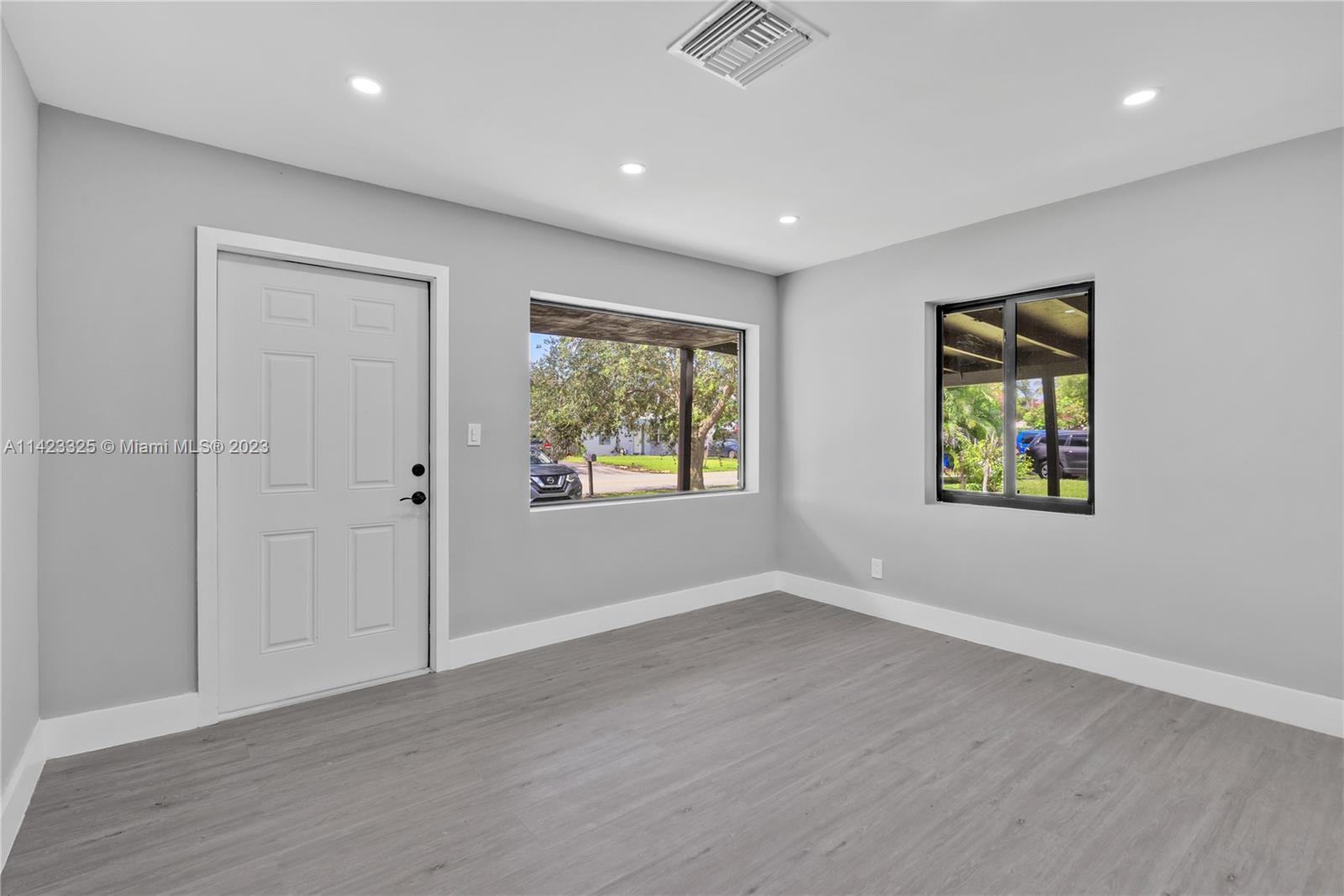 Tastefully updated cozy home with a modern theme ready to move in featuring 2 bedrooms / 1 bathrooms, located in a very quiet neighborhood minutes from the beach. As you walk in you are greeted with an open floor plan with a completely renovated kitchen featuring quartz countertops and SS appliances. New light fixtures, vinyl plank floors, and updated bathroom. Home features impact windows and doors, and a new AC. Roof replaced in 2015. Home also features a walk in laundry room and storage area with new washer & dryer. No HOA. Minutes from great schools, major highways, banks, and new shopping centers.