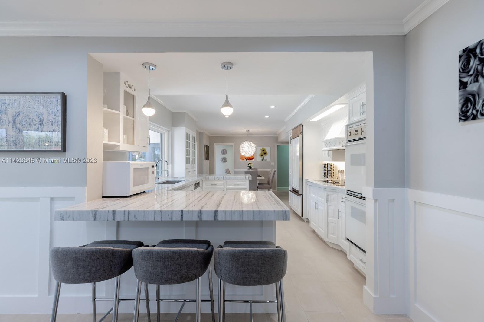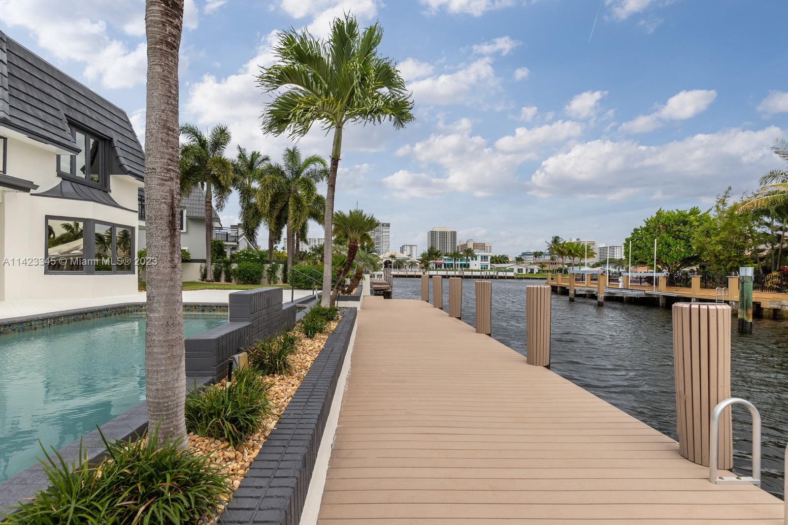 Welcome to this exquisite waterfront home with a pool, nestled in the highly prestigious Coral Ridge Country Club community. This stunning home embraces the epitome of waterfront living, offering breathtaking views of the sparkling waters from nearly every angle. Whether you're gazing out from the living room, kitchen, or master suite, you'll be captivated by the serene beauty of the water. 90' of Trex dock provides the perfect spot to dock your yacht and sets the stage for unforgettable boating experiences along the Intracoastal Waterway. The homes layout is thoughtfully designed, seamlessly blending comfort with elegance. Enter through the formal double door with a grand circular staircase. The open kitchen seamlessly integrates with the living and dining area.