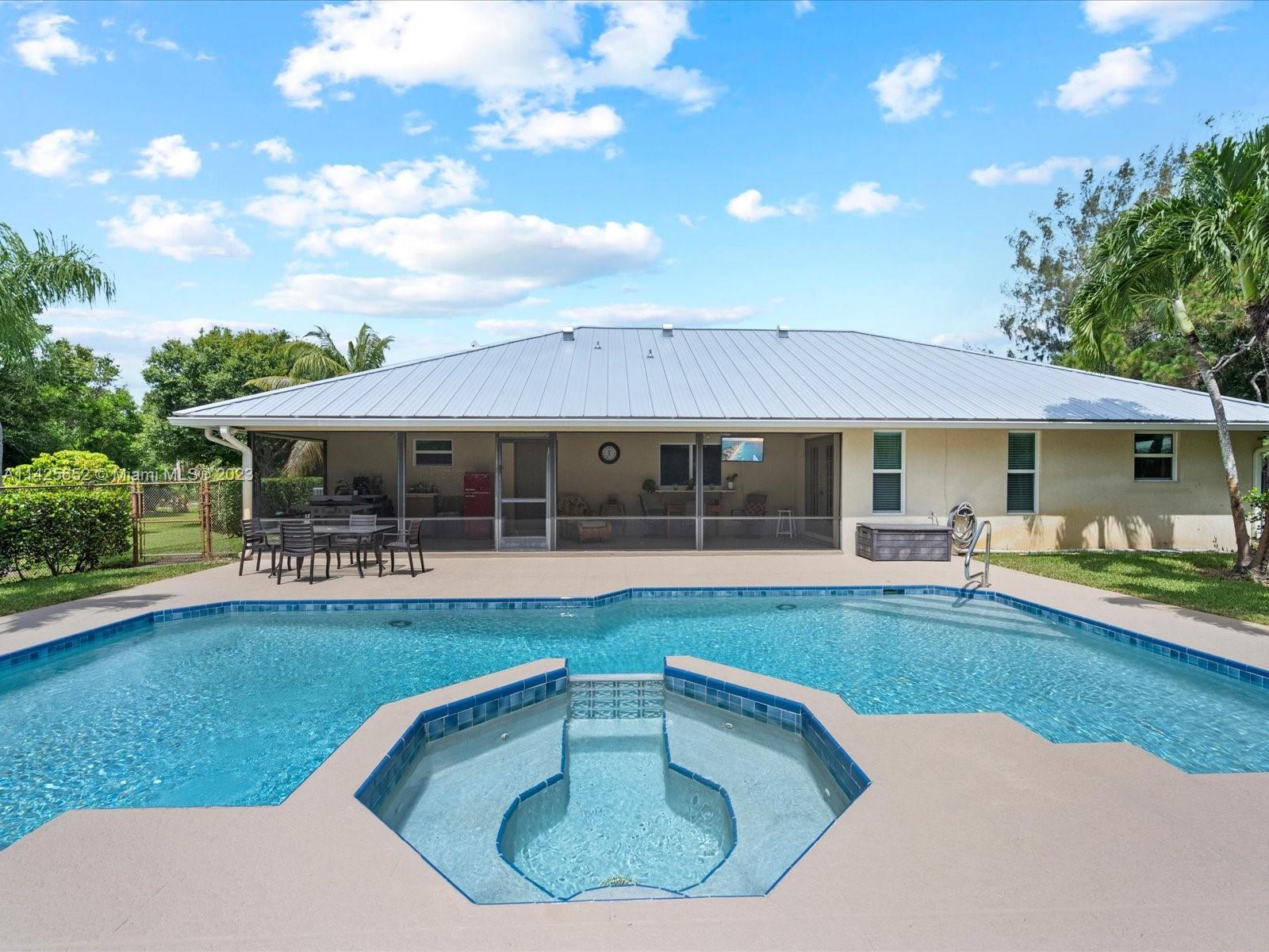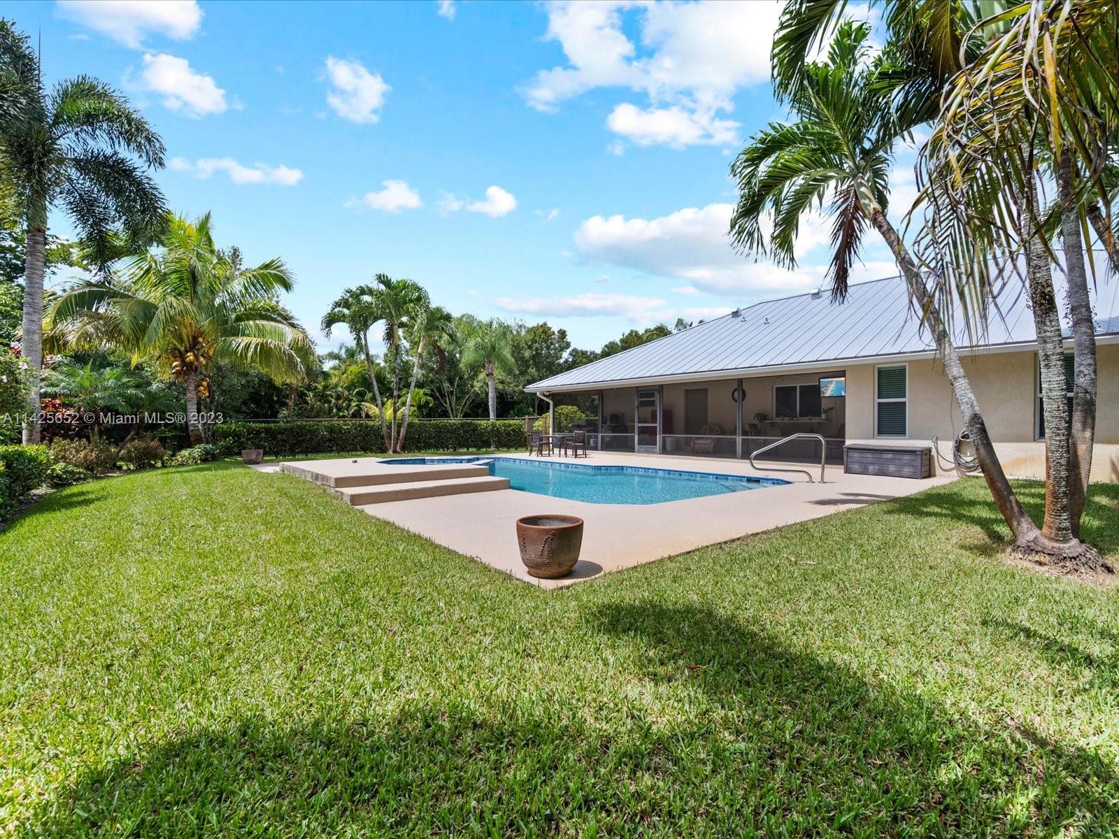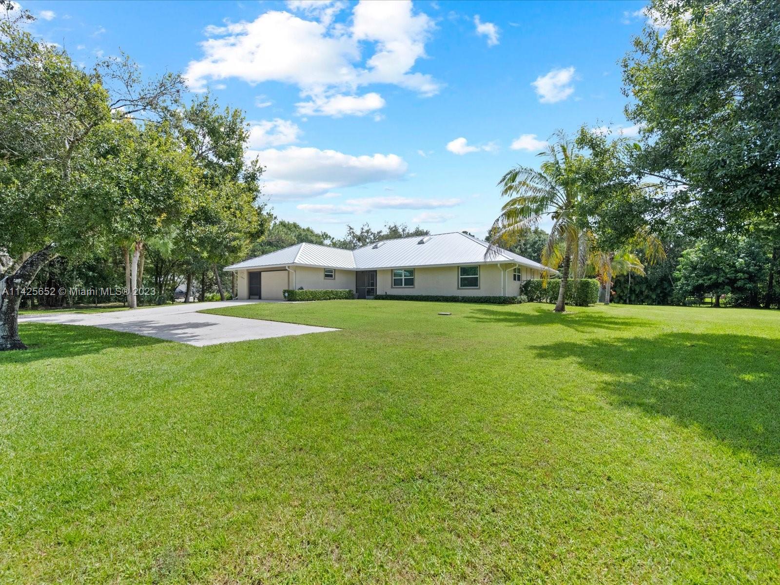 Incredible opportunity to own a beautiful pool home in the fantastic community of Palm Beach Country Estates. This well loved and well maintained home is being offered for sale. It has a metal roof, vaulted ceilings, large bedrooms, plenty of storage and closet space, lots of windows with tons of natural light, detached workshop/garage built in 2016. Metal roof was put on in 2022, Impact Windows, A/C replaced in 2018, salt water pool. The home is just a short walk over a foot bridge into River Bend Park. The community is outdoor living at its finest. Horses are permitted, bring your boats, campers, work vehicles and trailers to your home with no neighborhood restrictions. Great schools, restaurants, and shopping all conveniently nearby.