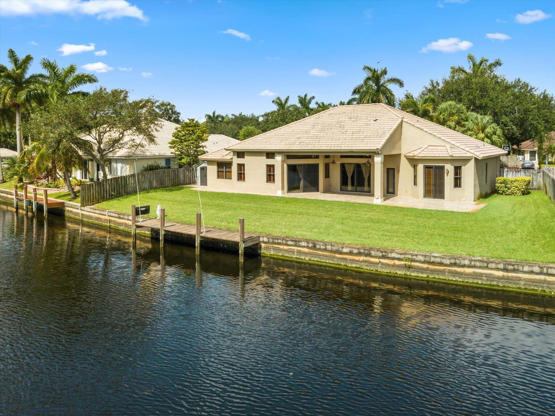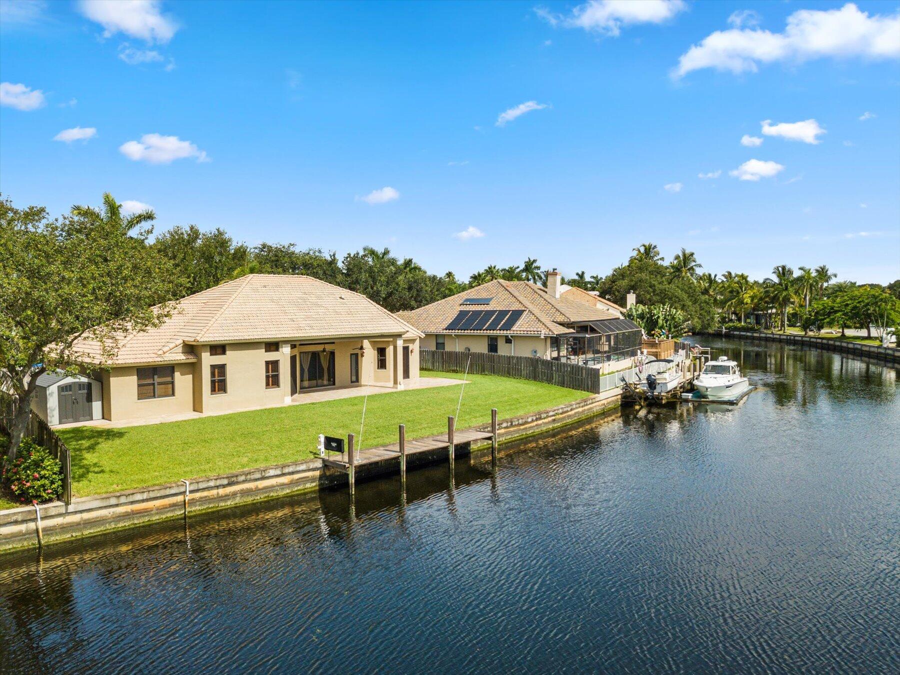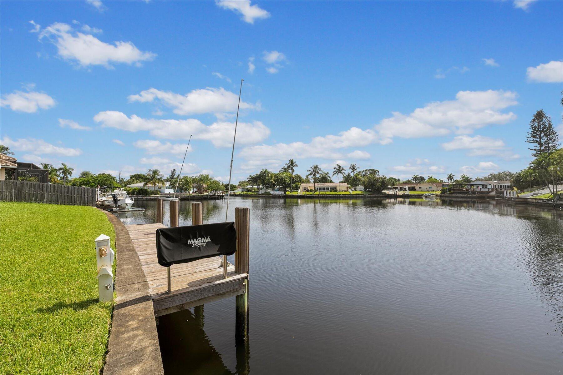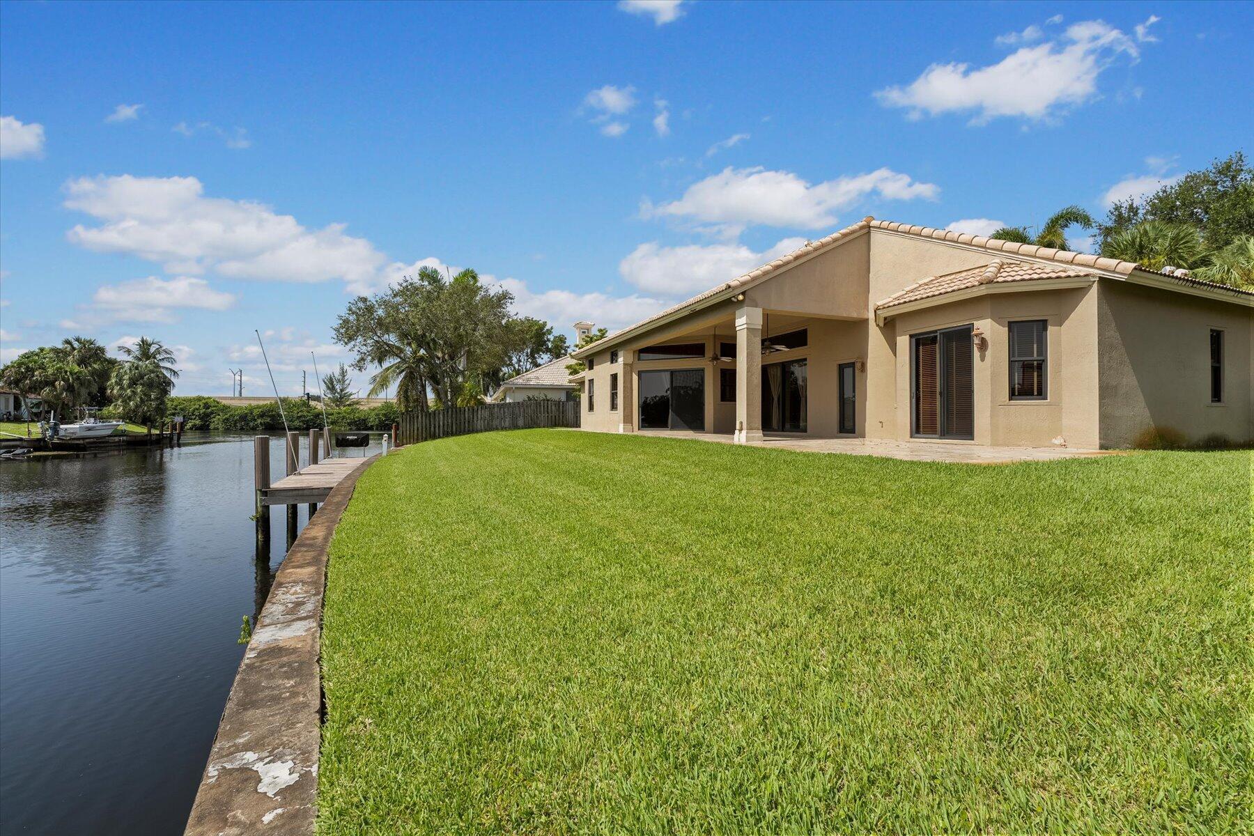 Welcome to the gated community of Isla Del Sol. This waterfront home has a 120ft concrete seawall & private dock on a premier lot with no fixed bridges leading out to the intracoastal waterway and ocean. The home features a split floor plan with 3 beds, 3 full baths, an office, formal dining room, formal and casual living areas and an updated kitchen. Travertine flooring flows seamlessly throughout the home. The gourmet kitchen has Samsung Chef Collection appliances, a copper sink and oversized island. High efficiency Trane HVAC,newer boat dock w/ shore power & water, Travertine patio and driveway. Impact W&D & 80 gallon hot water heater. Patio is equipped with 220 amp power, ready for a swim spa /jacuzzi. Garage is tiled & Air Conditioned. Call today!