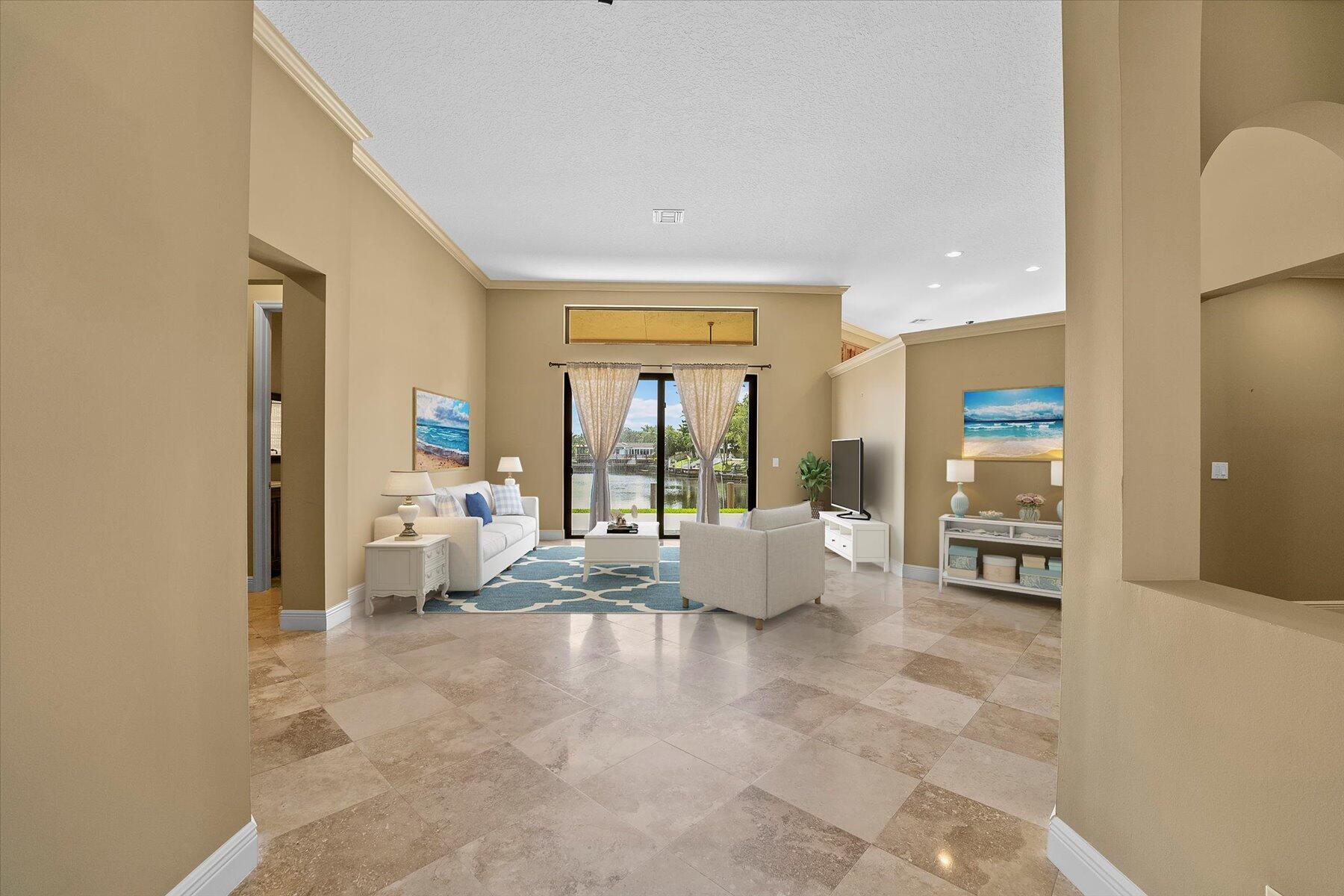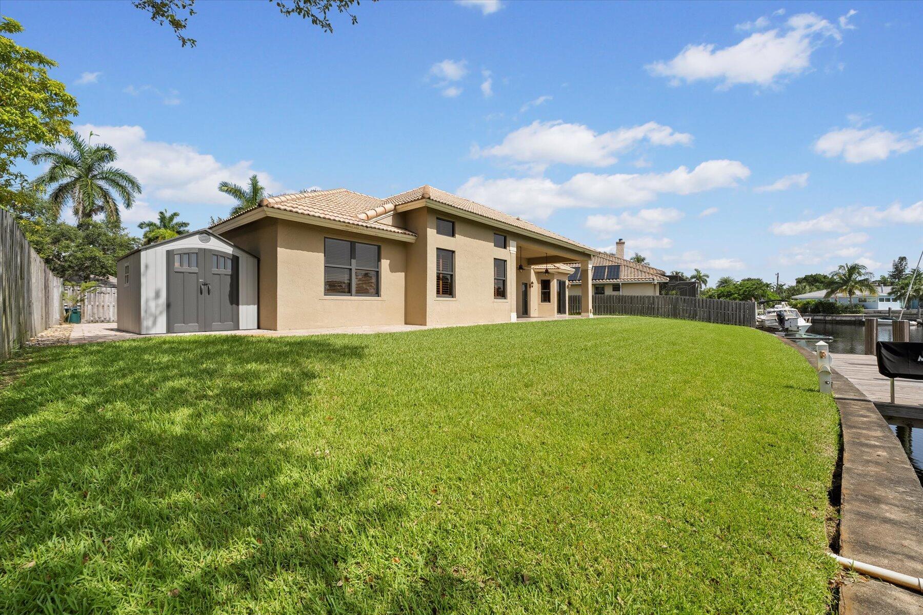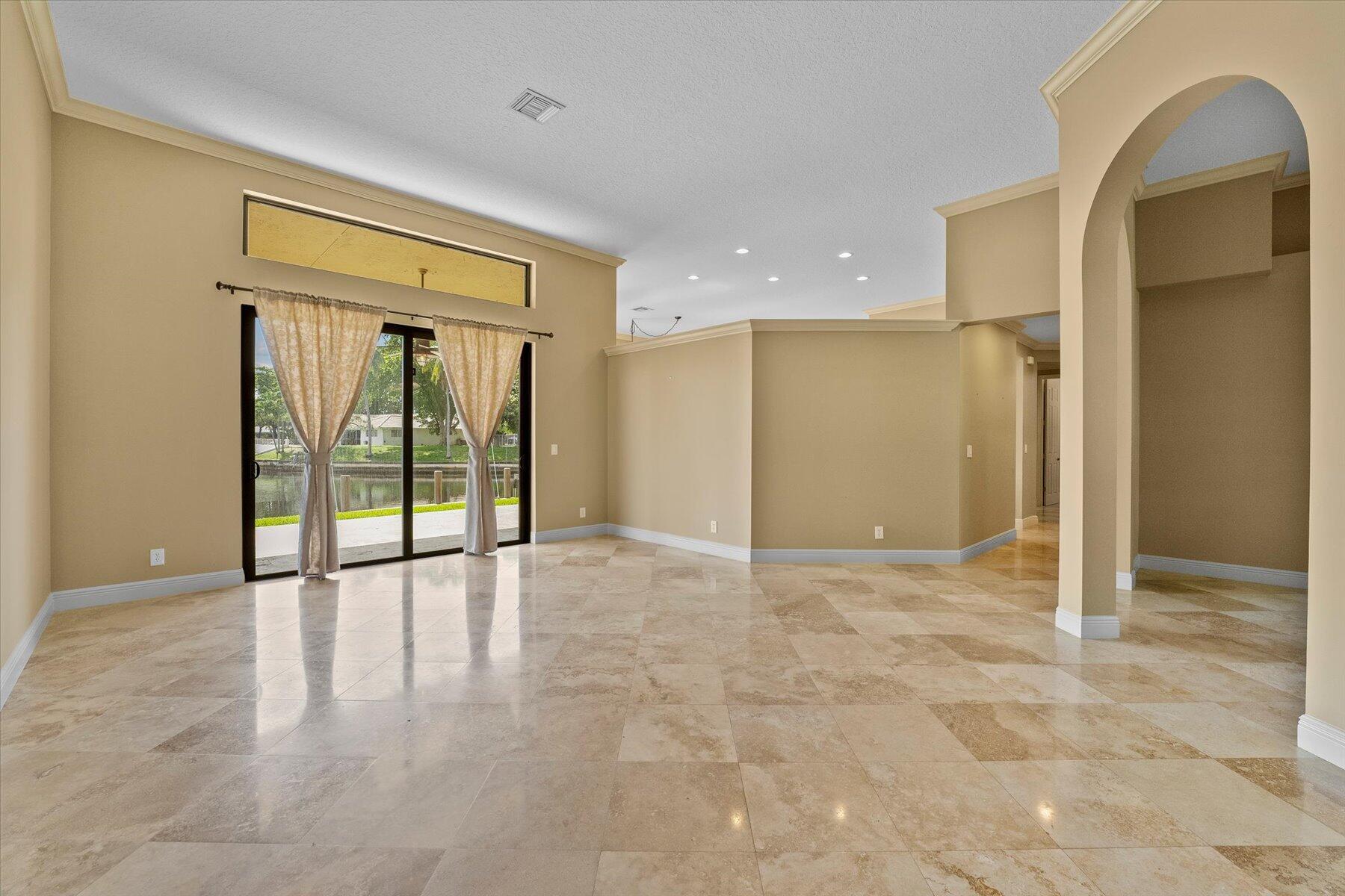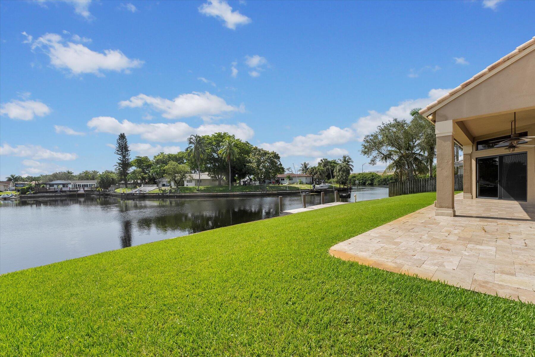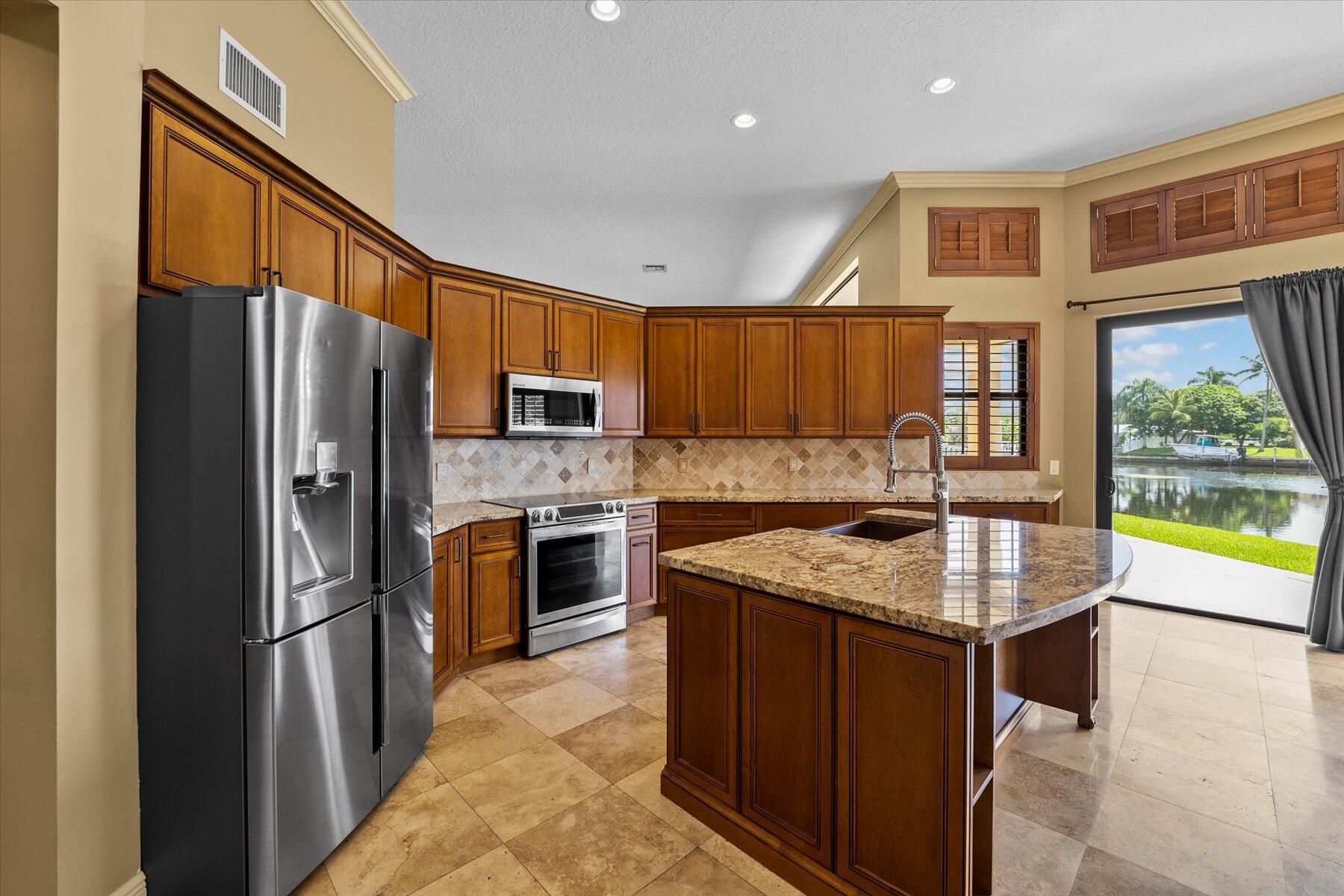 Welcome to the gated community of Isla Del Sol. This waterfront home has a 120ft concrete seawall & private dock on a premier lot with no fixed bridges leading out to the intracoastal waterway and ocean. The home features a split floor plan with 3 beds, 3 full baths, an office, formal dining room, formal and casual living areas and an updated kitchen. Travertine flooring flows seamlessly throughout the home. The gourmet kitchen has Samsung Chef Collection appliances, a copper sink and oversized island. High efficiency Trane HVAC,newer boat dock w/ shore power & water, Travertine patio and driveway. Impact W&D & 80 gallon hot water heater. Patio is equipped with 220 amp power, ready for a swim spa /jacuzzi. Garage is tiled & Air Conditioned. Call today!