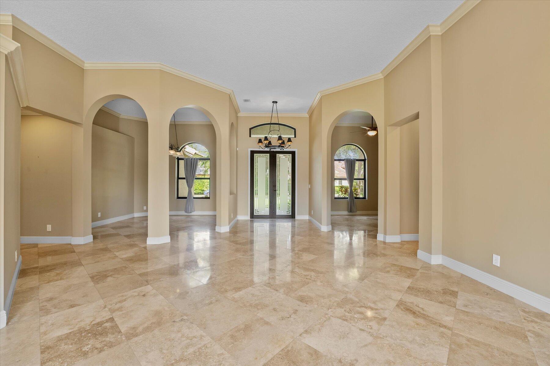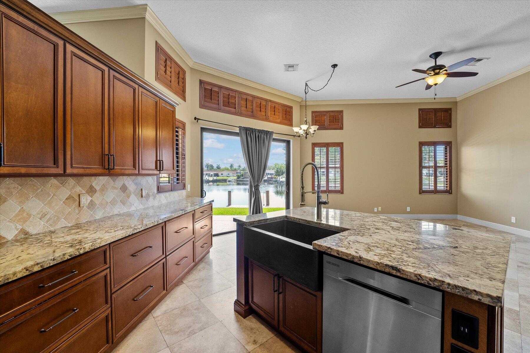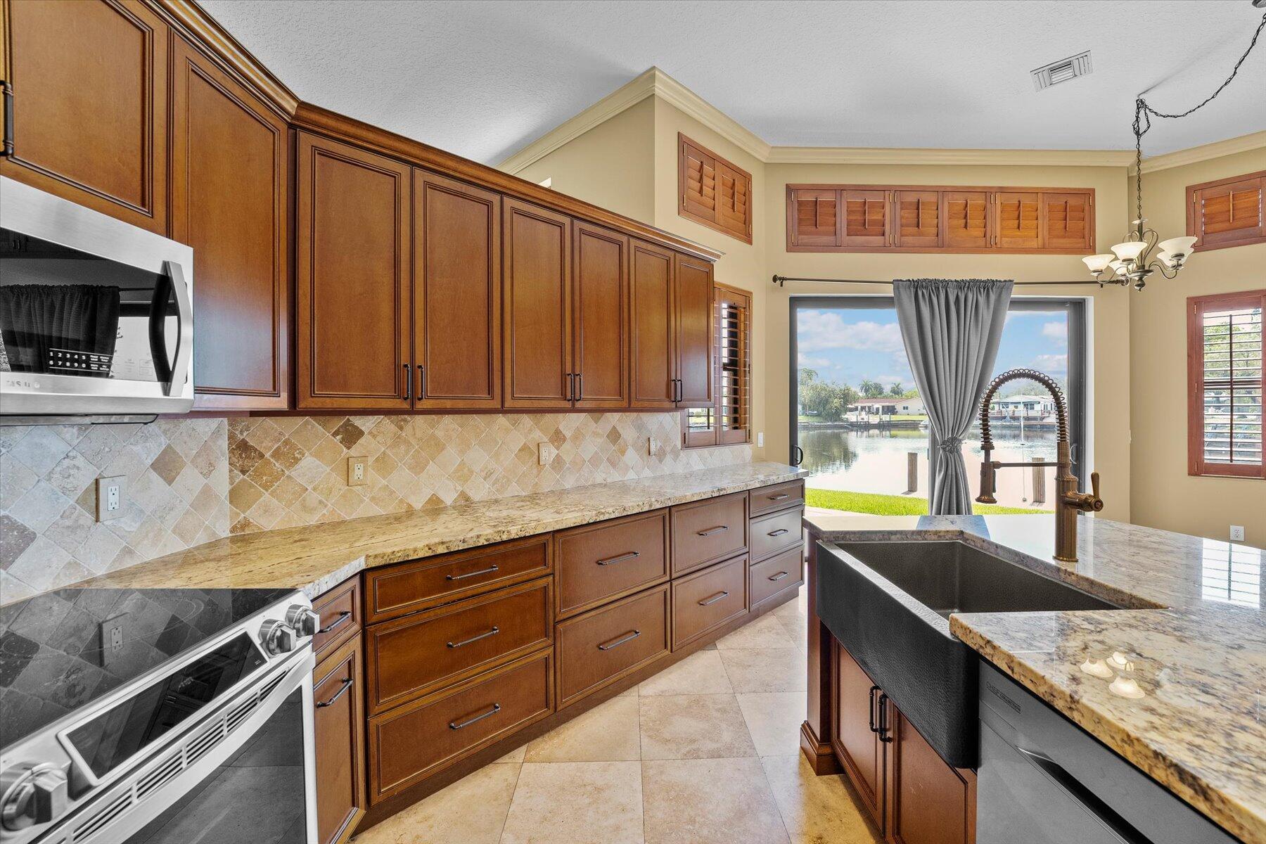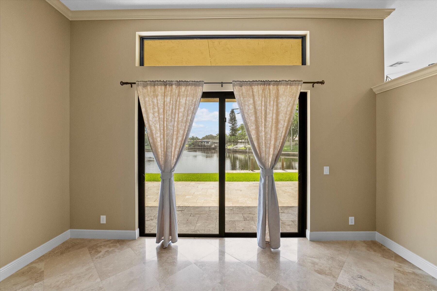 Welcome to the gated community of Isla Del Sol. This waterfront home has a 120ft concrete seawall & private dock on a premier lot with no fixed bridges leading out to the intracoastal waterway and ocean. The home features a split floor plan with 3 beds, 3 full baths, an office, formal dining room, formal and casual living areas and an updated kitchen. Travertine flooring flows seamlessly throughout the home. The gourmet kitchen has Samsung Chef Collection appliances, a copper sink and oversized island. High efficiency Trane HVAC,newer boat dock w/ shore power & water, Travertine patio and driveway. Impact W&D & 80 gallon hot water heater. Patio is equipped with 220 amp power, ready for a swim spa /jacuzzi. Garage is tiled & Air Conditioned. Call today!
