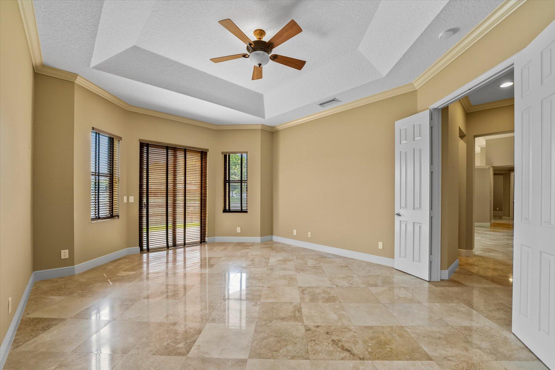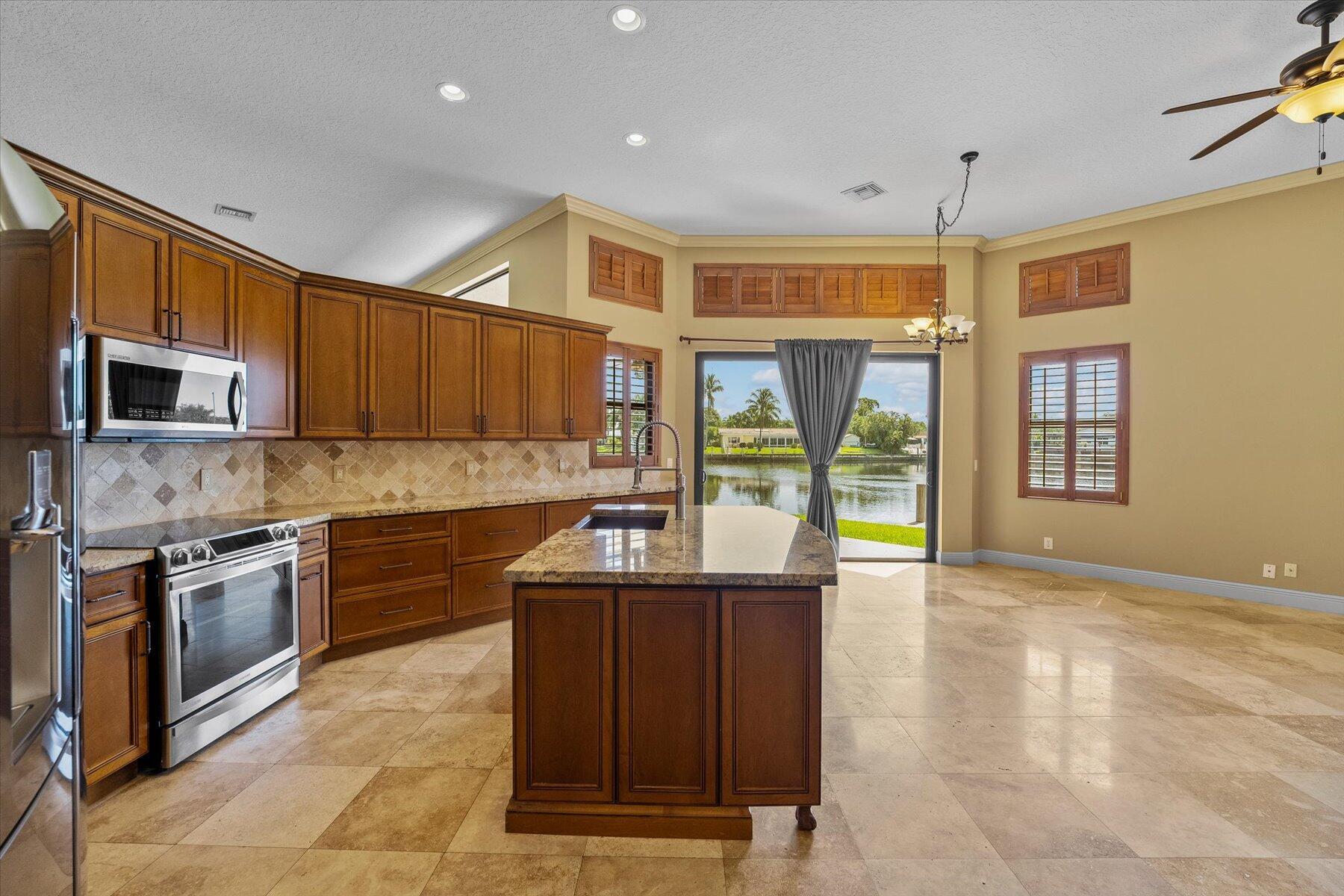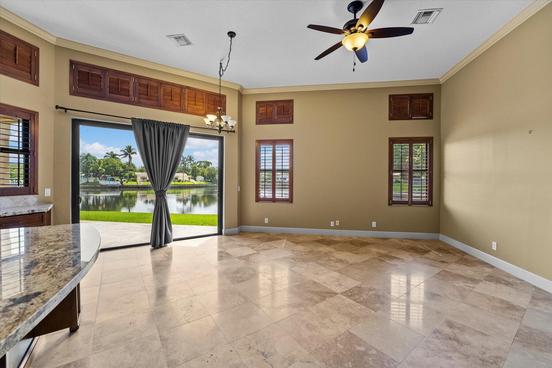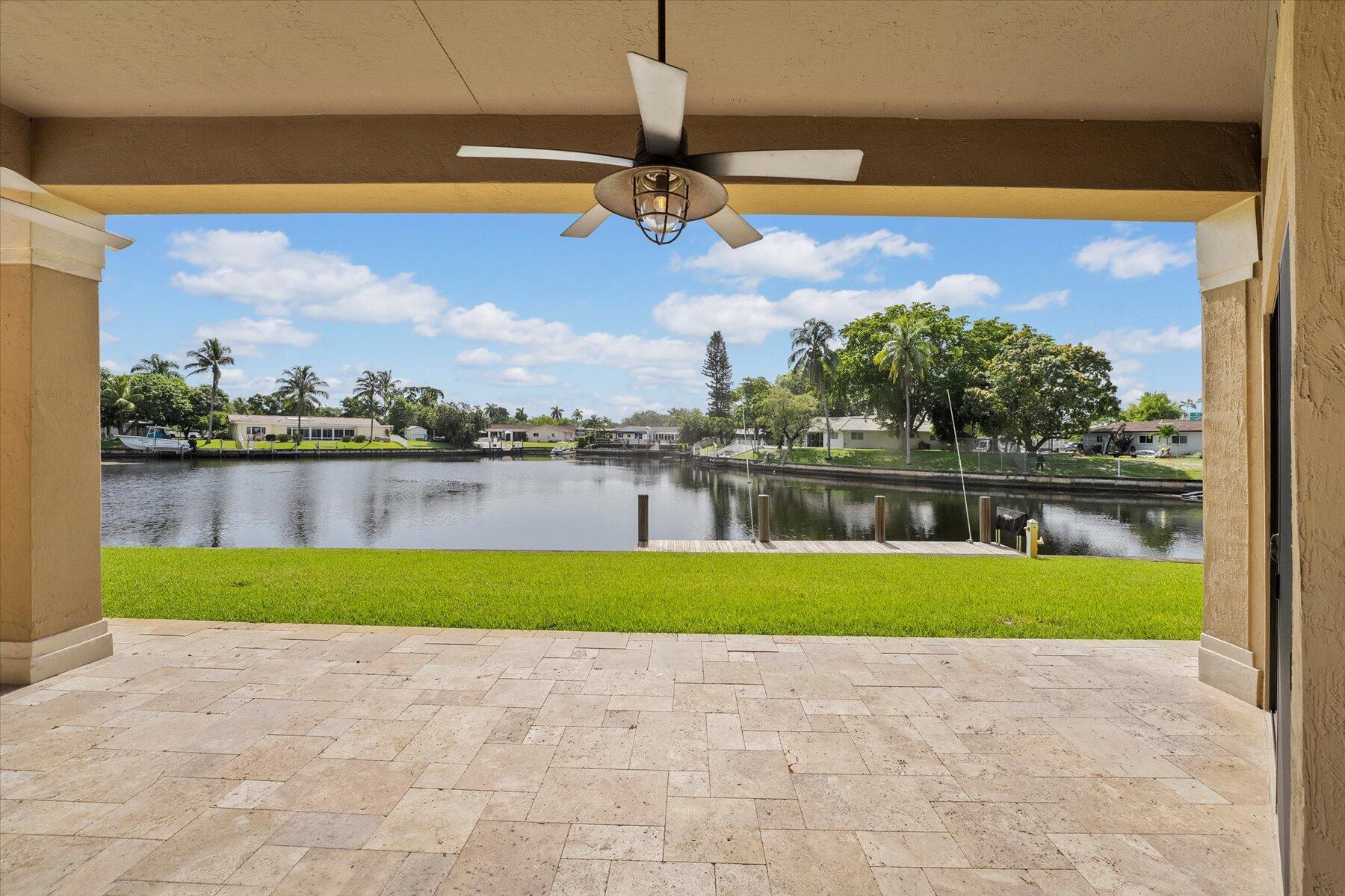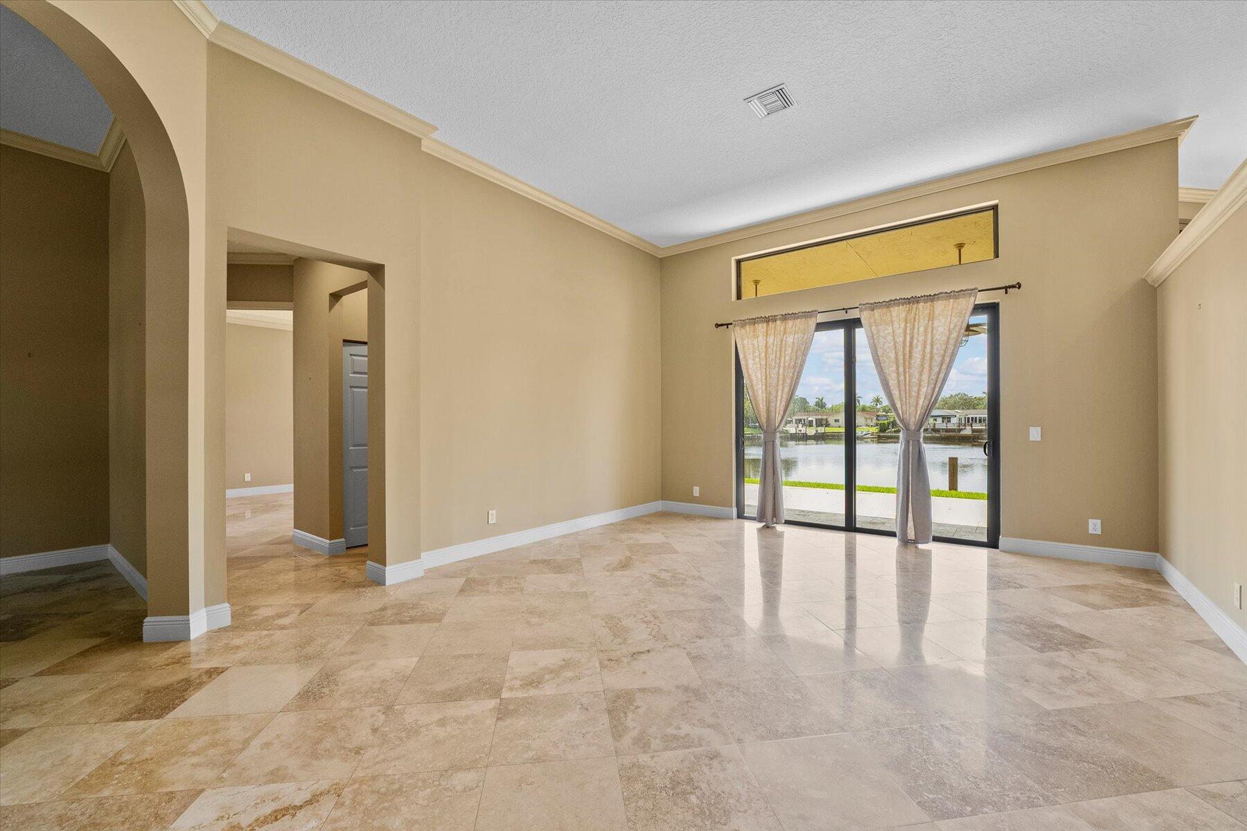 Welcome to the gated community of Isla Del Sol. This waterfront home has a 120ft concrete seawall & private dock on a premier lot with no fixed bridges leading out to the intracoastal waterway and ocean. The home features a split floor plan with 3 beds, 3 full baths, an office, formal dining room, formal and casual living areas and an updated kitchen. Travertine flooring flows seamlessly throughout the home. The gourmet kitchen has Samsung Chef Collection appliances, a copper sink and oversized island. High efficiency Trane HVAC,newer boat dock w/ shore power & water, Travertine patio and driveway. Impact W&D & 80 gallon hot water heater. Patio is equipped with 220 amp power, ready for a swim spa /jacuzzi. Garage is tiled & Air Conditioned. Call today!