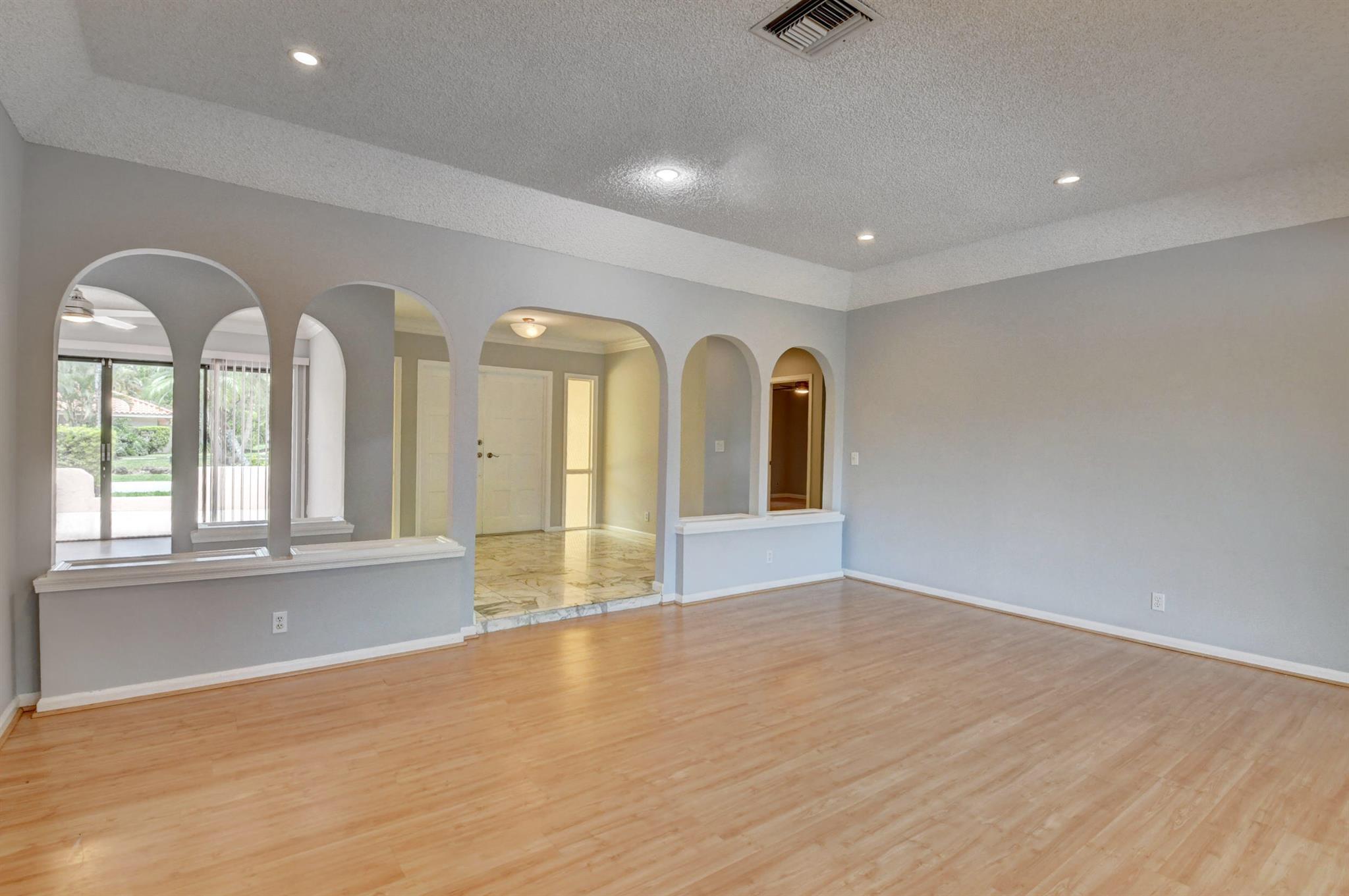 Location, location, location. La Estancia, just minutes from Boca Raton Town Center, easy access to I-95 and Turnpike. This home is light and bright, it features 3 large bedrooms plus a den/studio office, and 3 and half bathrooms. Home features an excellent open floor plan with large living space and kitchen with views of the pool & outdoor patio area, make this home your own way. Circular paved driveway, 2 car garage, PET friendly gated community, with a private park/kid's playground, tennis, basketball court. Home features a newer roof, newer A/C unit. A-rated schools.