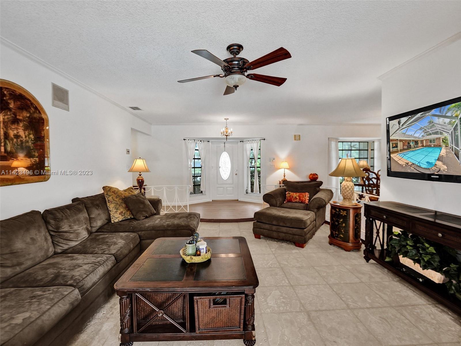 Nestled in the heart of Plantation, here is a must-see opportunity to live in a well-regarded neighborhood in Plantation Secluded Gardens. Enjoy single-floor living in this spacious and charming 4-bed, 3-bath home, plus bonus room that can be used as an office or art room. In the kitchen, fresh updates boast granite countertops and stainless steel appliances. The oversized corner lot features two separate driveways, fruit trees, a screened-in pool, an outdoor shower, a built-in BBQ grill, and blacktop court. The two-car garage features built-in shelving and storage space. The front door is an easy walk to Liberty Tree Park and just a short drive to Plantation Walk, Broward Mall, Downtown, Fort Lauderdale Airport and the beaches. This home is a blank canvas for your lifestyle and memories!