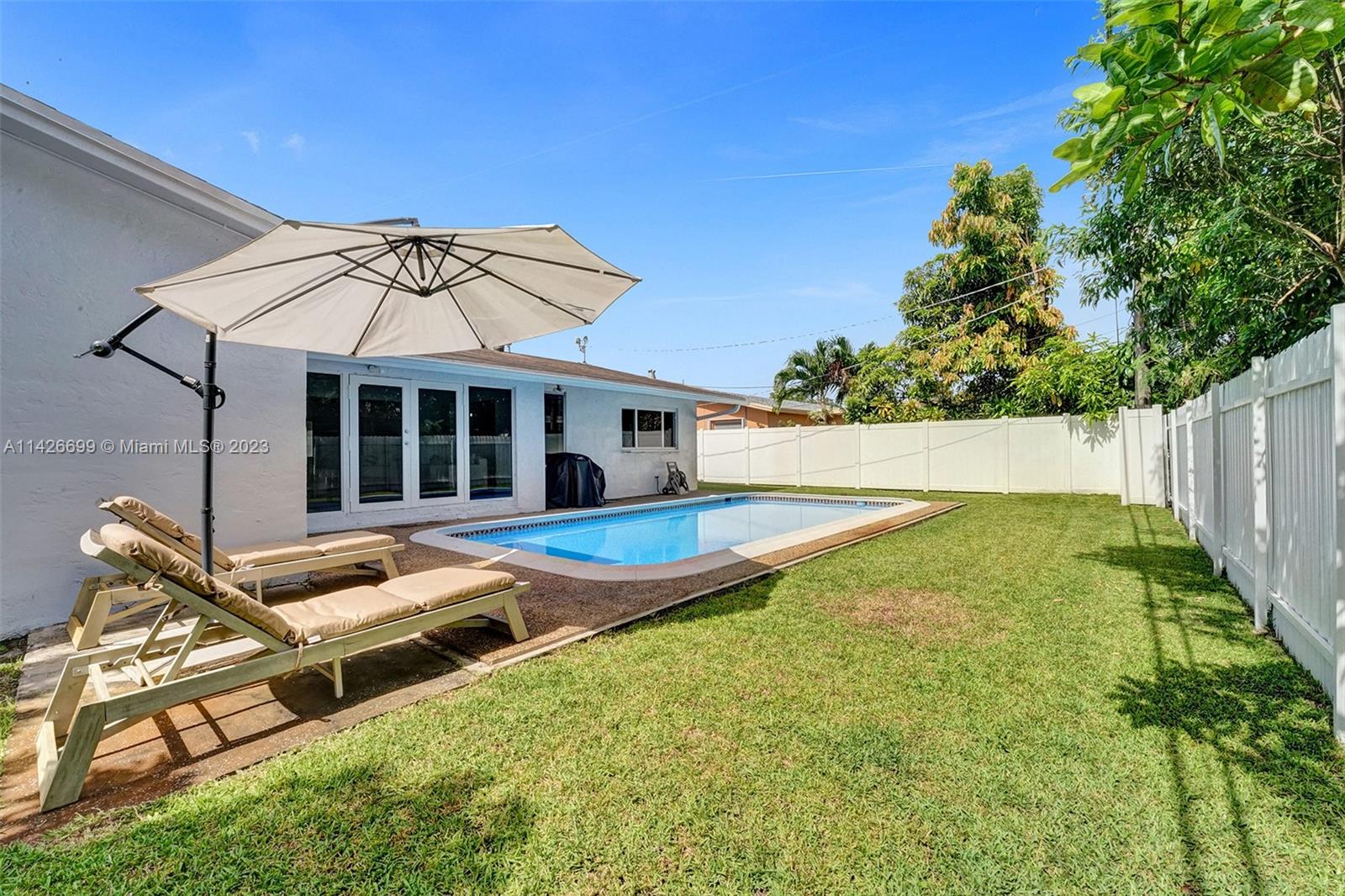 BEAUTIFUL UPDATED 3 BEDROOM 2 BATHROOM SINGLE-FAMILY HOME WITH LARGE POOL IN THE HEART OF THE CITY OF MIRAMAR! THIS CONTEMPORARY HOME FEATURES: A LARGE DRIVEWAY THAT CAN ACCOMMODATE SIX CARS, TWO CAR GARAGE, FRESHLY PAINTED EXTERIOR & INTERIOR WITH OUTSTADING CURB APPEAL. PROPERTY FEATURES: ALL IMPACT WINDOWS & DOORS, NEWER A/C UNIT, NEWER WATER HEATER, GUTTERS ALL AROUND, A HUGE KITCHEN WITH GRANITE COUNTER TOPS, STAINLESS STEAL APPLIANCES (WASHER & DRYER DO NOT CONVEY). ALL THREE BEDROOMS ARE SPACIOUS, THE PRIMARY BATHROOM FEATURES BEAUTIFUL TRAVERTINE MARBLE TILES, FRAMELESS SHOWER DOOR AND DUAL SINKS. VERY LARGE POOL IN THE BACK. SECURITY CAMARA SYSTEM INCLUDED! ACTUAL LIVING SQF IS 1,940...HURRY! THIS ONE WON'T LAST.