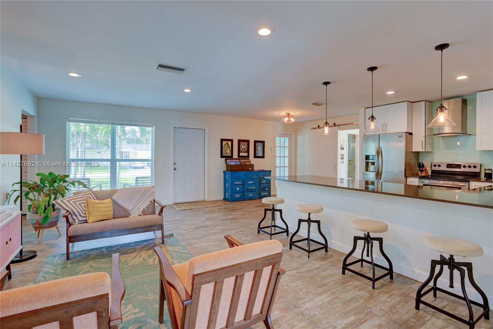 Beautifully remodeled 4/2 with a pool and office in the heart of Sunrise. Completely remodeled with stainless steel appliances, quartz countertops, “wood look” porcelain tile floors continuous throughout the house. Convenient indoor laundry. COMPLETE NEW ROOF BEING INSTALLED NOW ITH PERMITS New impact hurricane windows installed in 2021. Open concept design allows plenty of natural lights throughout the house. Primary bedroom has en-suite and beautiful doors to the outdoor patio. The Tiki bar outside is perfect for entertaining poolside. Minutes to Sawgrass Mills and FLA Live Stadium! No HOA, close to restaurants and major highways. Do not miss this opportunity! SELLER AGREES IN COOPERATING WITH $5,000 SELLER CREDIT FOR CLOSING COSTS OR ANY OTHER COST BUYER HAS.