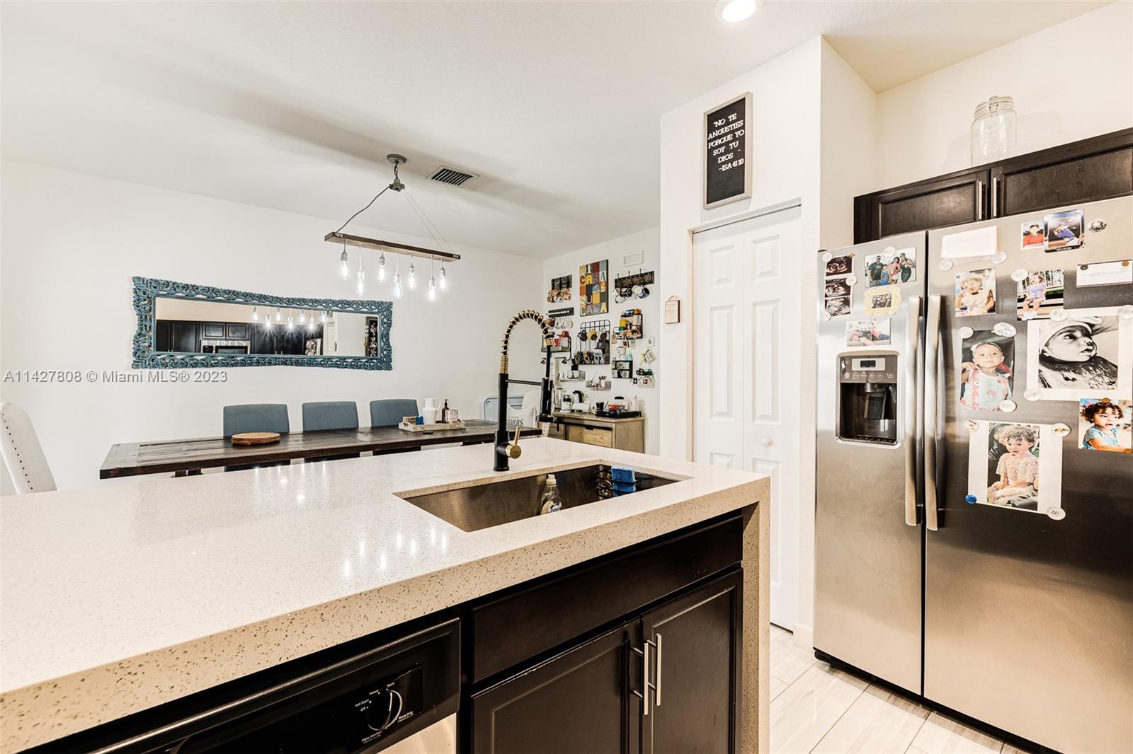 Nicely upgraded Townhouse 3 Bedrooms and 2 1/2 Bathes in Aquabella Resort Style community with lots of amenities. The home features upgraded tiles on the first floor, Quartz waterfall countertops, tile backsplash, stainless steel appliances. French Impact Glass Doors open up to your Pergola & Pavers on your patio. Upstairs is engineered wood floors plus 3 bedrooms and 2 bathes and laundry. Community includes Club house, multiple pools, gym, water park for children and cabanas.