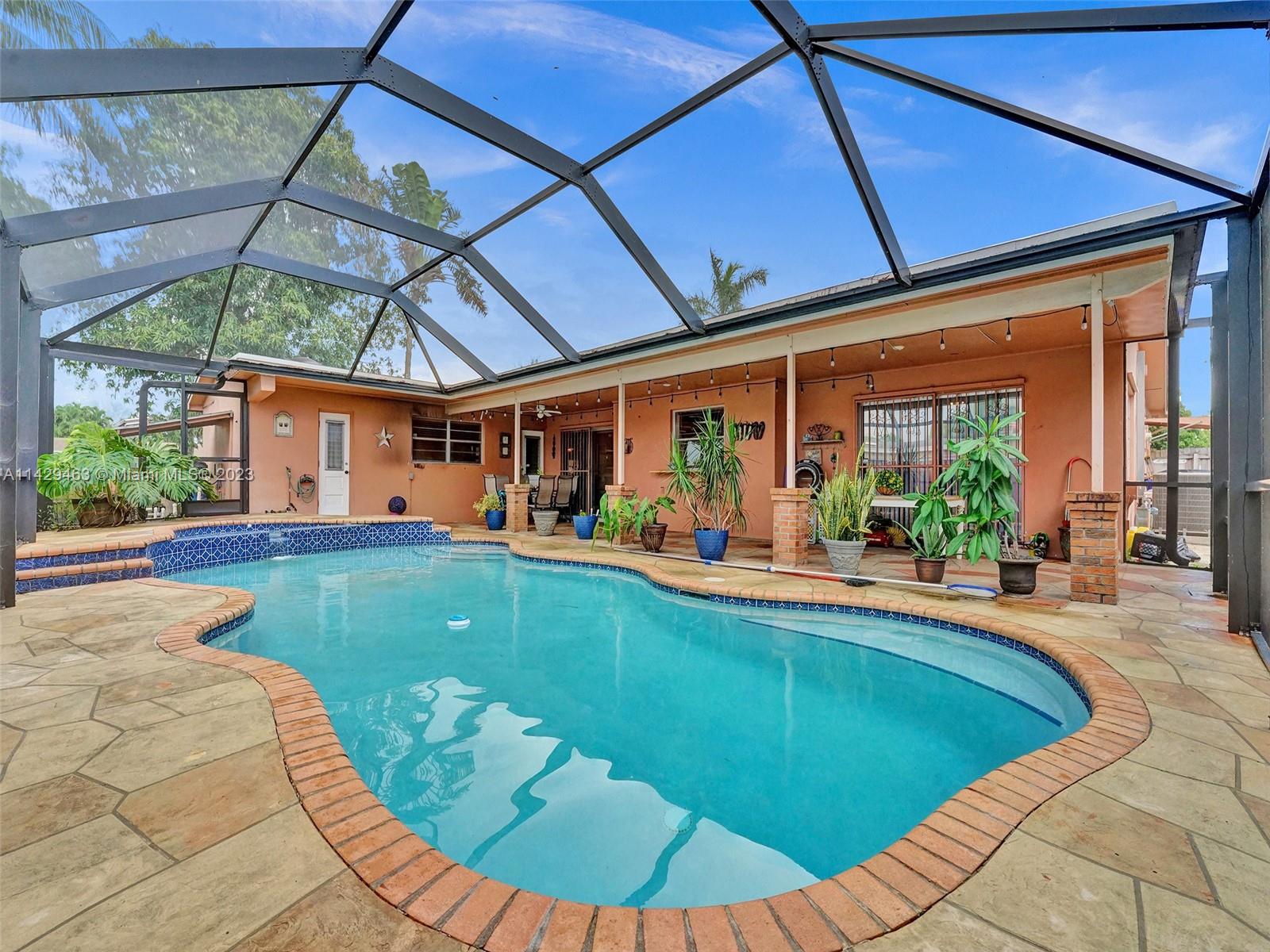 Large Single Family House located in the Pasadena Lakes community of Pembroke Pines on a corner lot. 2,021 SqFt Under Air. This is a true 4-bedroom 2-bathroom with a big 2.5 Car Garage (621SqFt). 3 Bedrooms are stacked on one side of the house and the 4th is located on the opposite side. Perfect for an in-law or office. Beautiful screened-in pool area with a stamped concrete deck. Great area for birthday parties and family gatherings. A large circular driveway that can fit multiple cars. The side of the house can fit a large boat or trailer. Great Neighborhood. No HOA. Roof 2010 A/C 2012.
