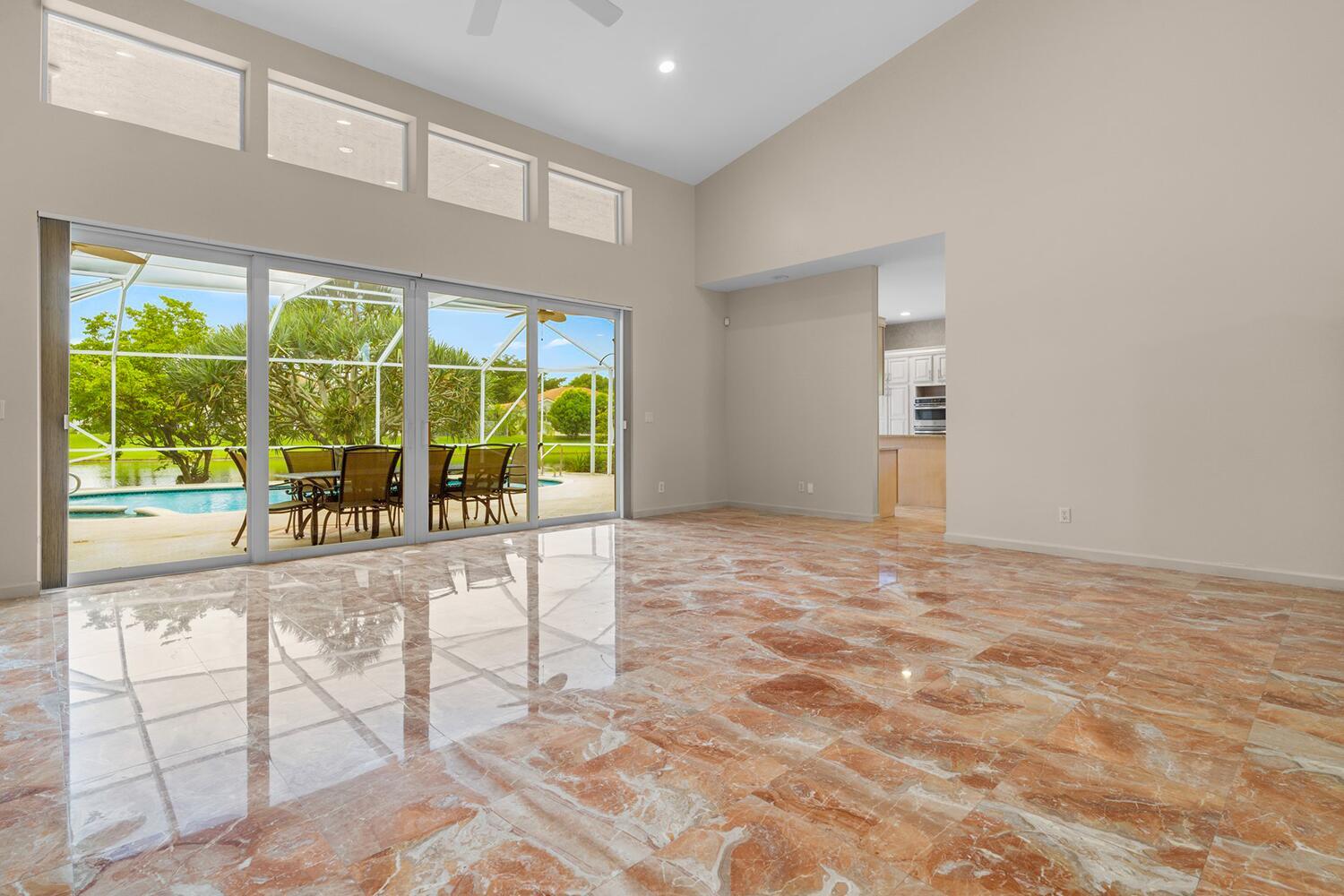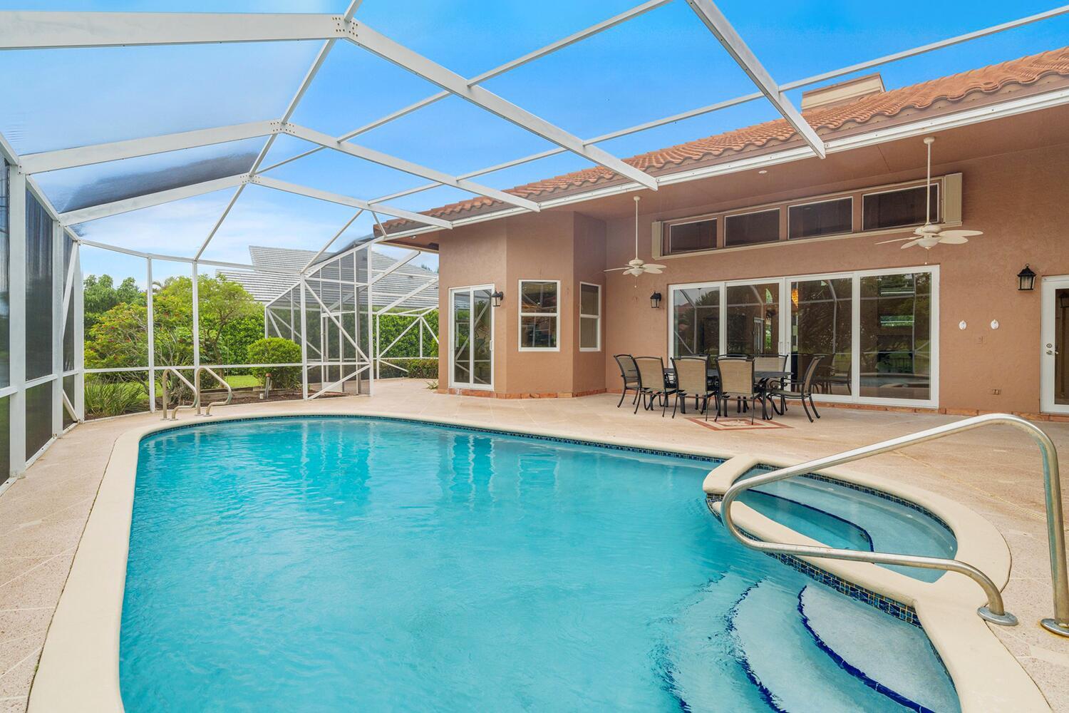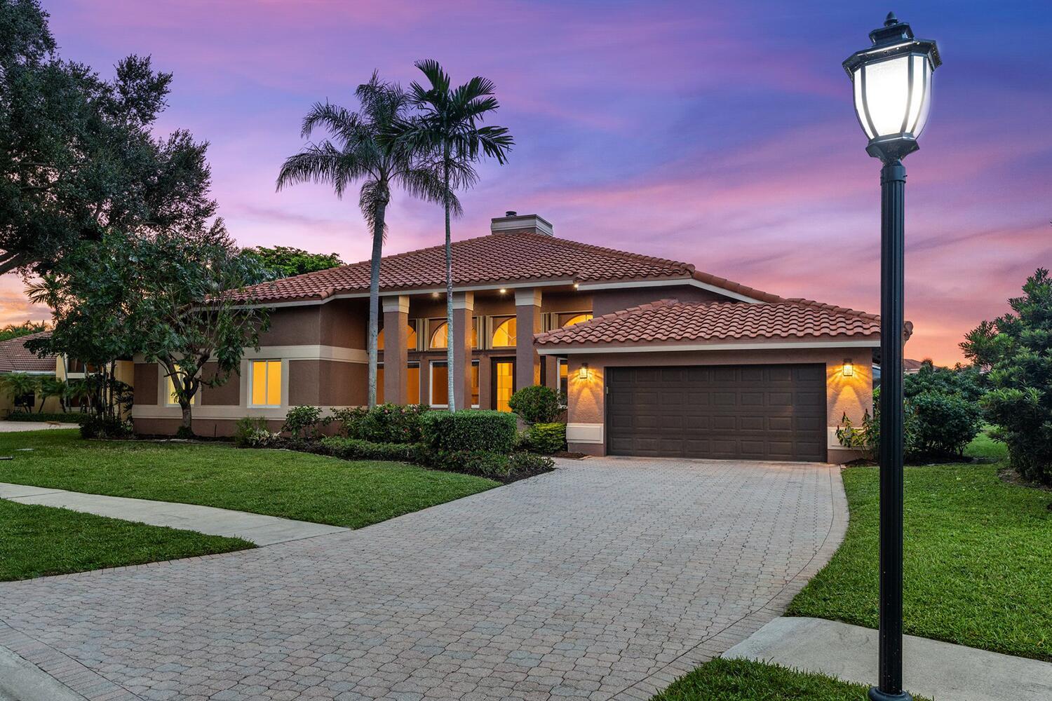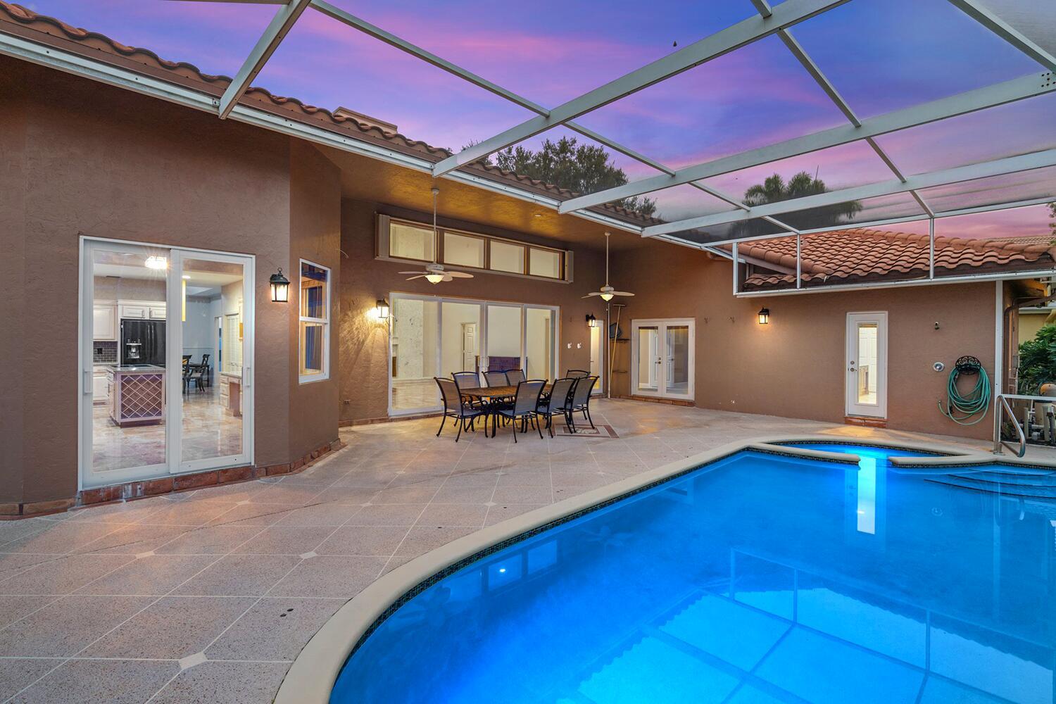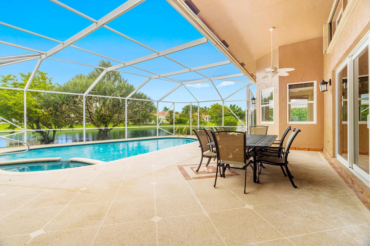4 bedrooms, 3.5 bathrooms, one-story lakefront home with PRIVATE pool, spa, large yard, 2 car garage at the Newport Bay Club 24-hour manned gated community in Boca Raton. Family & Pet friendly, all-ages country club lifestyle with low monthly HOA fees, NO equity buy-in membership fees and A Rated Schools.The home features a den and family room with a coral fireplace, 22-foot ceilings, marble floors, updated bathrooms, a large eat-in kitchen, over-sized waterfront pool Screened patio.Newport Bay Club offers an active lifestyle with the new Sports Complex with Pickleball courts, and 7 Lighted Tennis courts, state-of-the-art fitness center, pro-shop, sauna, basketball court, staffed pro shop, heated swimming pool, kids playground and organized social events with many classes & club.