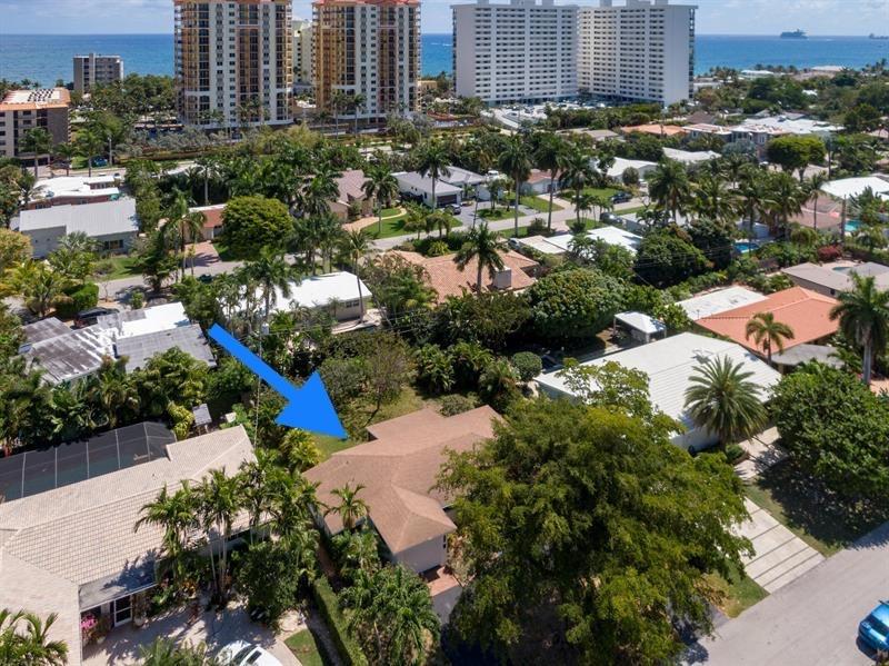 Just two blocks to the beach and one block to the North Gate of the 180 acre Birch State Park! This mid century home sits on a lot that's 8250 square feet. Great little vacation rental for income stream. The kitchen and bathrooms remain in almost perfect condition. Light colored terrazzo floors throughout which are also in great shape. The home is selling for lot value, but there's plenty to work with if you want to upgrade the existing house and lots of room for a nice pool. There's a great kid's park just two blocks away too. Walking distance to the new Auberge, SunTower and Pelican Beach resorts and restaurants.