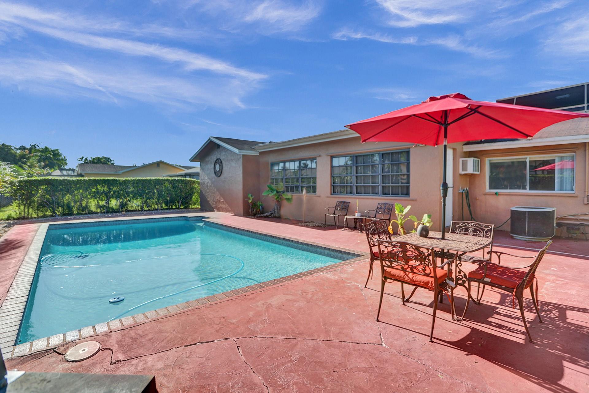 4 Bedroom 2 Bath Pool Home In Woodstock in Sunrise. Interior features open floor plan with large family room, kitchen with pantry, stainless steel appliances, countertop seating overlooking pool area. Expanded Florida room, formal dining room. Large outdoor entertaining area with pool, fenced in yard. 1 car garage, washer and dryer, hurricane shutters, alarm and video doorbell system. Roof 2016, A/C 3 years old. Priced to sell!