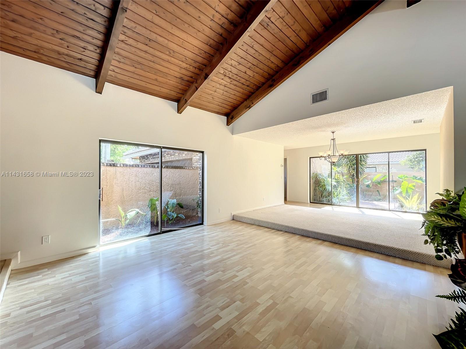A rare find. Beautiful neighborhood of Maplewood in the heart of Coral Springs.Open plan main/great room with gorgeous 15ft exposed beam ceiling.Landscaped Atrium views from living and dining areas.2nd Atrium view from hallway and Master bedroom,Free form pool w/waterfall.Outdoor decks. Outdoor Gazebo. 2 full cabana baths. 1/2 bath. Cooking island with overhead hood, Expensive cedar walls, doors.Outdoor grille. Outdoor sink. Automatic sprinklers fed by canal water so you don't pay for water and no rust staining, Extensive lush landscaping. Beautiful trees. Large Bedrooms.Indoor Laundry room under AC. Large master with pool and atrium views. Master bath has a private landscaped atrium and sky view. Separate dining and breakfast rooms. Within a close distance to Maplewood Elementary school.