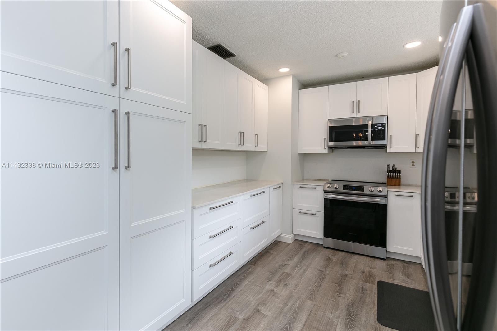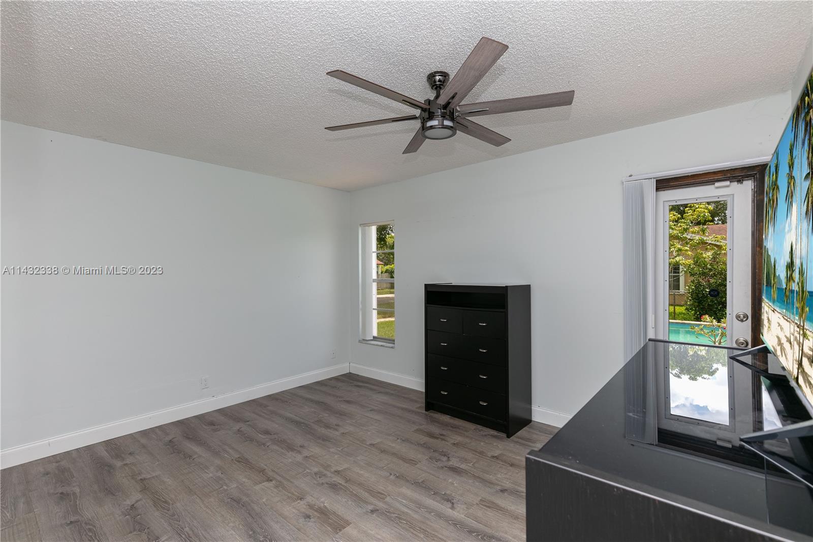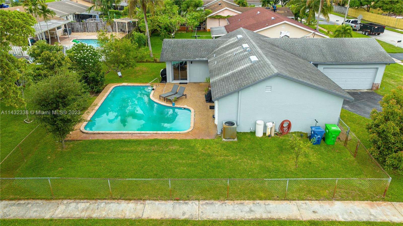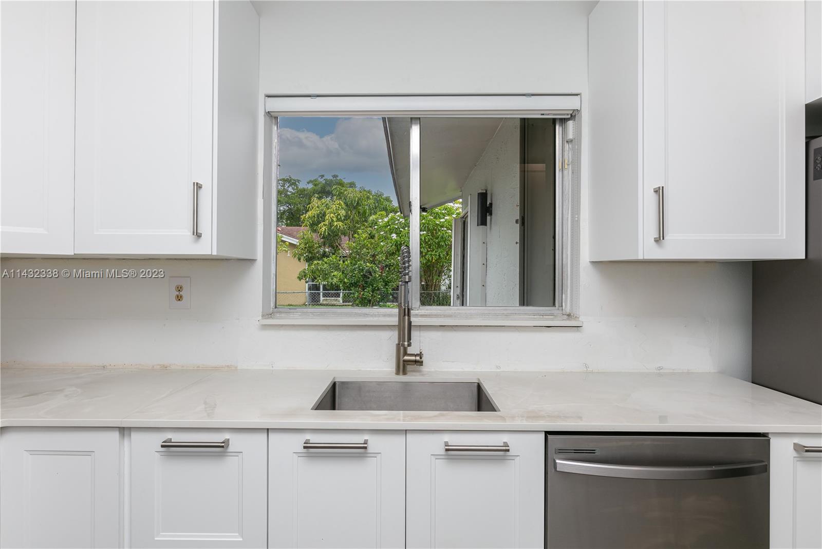 Lovely 3/2 pool home with 2 car garage located on a corner lot in Sunrise. This home boasts new white, shaker kitchen cabinets, quartz countertops, stainless steel appliances, new vinyl flooring, accordion shutters, freshly painted exterior and plenty of natural light. Cool off in the pool and relax in the spacious yard. You can also pick mangos, peaches and cherries from your trees! Added bonus....NO HOA!