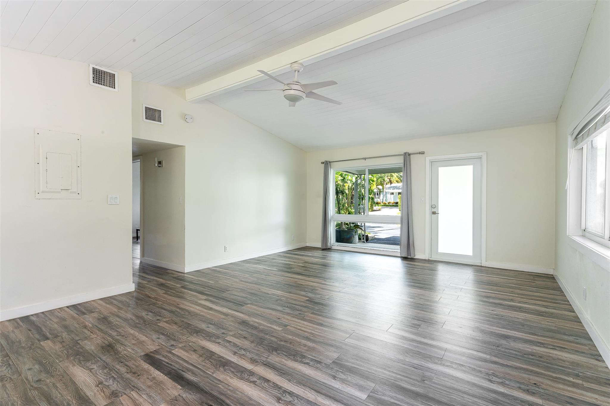 Your very own secret hideaway in the heart of downtown Boca! This 2/2 has been tastefully renovated and is ready to make it your own. New modern appliances and granite countertops provide stylish entertainment space. New impact windows and doors throughout. Roof , water heater and AC replaced 2017, with AC coils replaced 2023. All new plugs and light switches throughout as well. 2023 permitted patio enclosure allows enjoyment of the backyard with mature vegetation including two large mango trees. Enjoy mango daiquiris year round! There is a shed, plenty of space for a pool and landscape lighting and fountains throughout the property. 10 min walk to Mizner, Brightline station,and 1.5 mi to the beach!! Rare opportunity to own a slice of paradise in east Boca with all A rated schools.