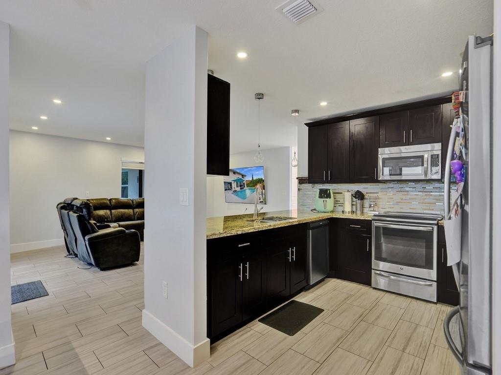 One of the prettiest views in Shenandoah! Enjoy breathtaking sunset & tropical breezes from the wide lake. Canoe or fish from your own yard. Sparkling pool, big patio & built in BBQ to splash & entertain. Large Harrisburg model complete with 4 bedrooms, 2.5 baths. Kitchen has been upgraded with wood cabinets, granite & stainless. Big shed for storage, heated pool, AC Garage with epoxy floor. Built in basketball hoop. Impact windows and doors were done last year. Roof is original, a new 4 point/wind mit was done last year when impact windows were installed and inspector gave at least 5 years of life remaining.