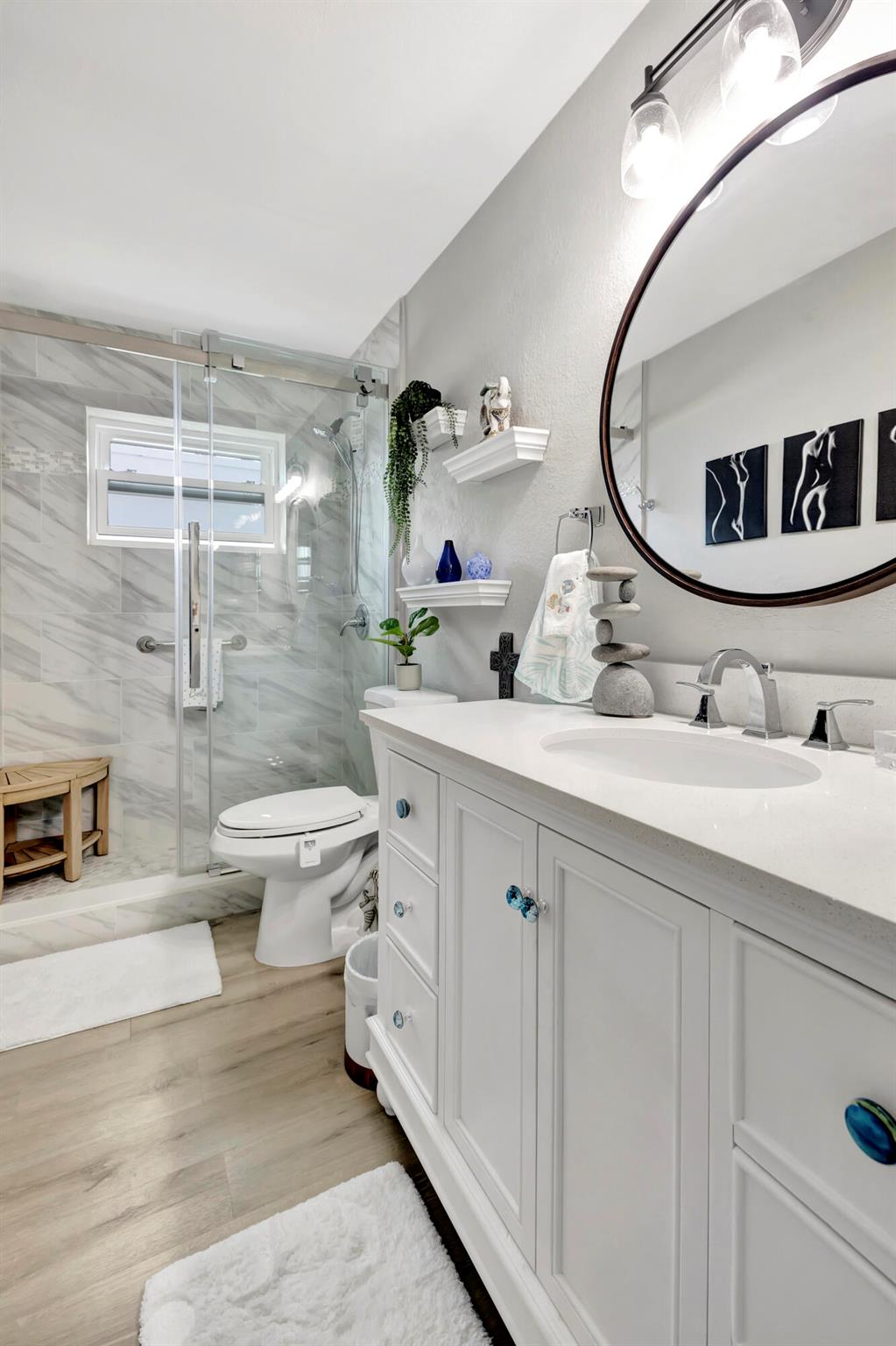 Beautifully Renovated 2 Bedrooms & 2 Full Bathrooms, Single Family home with garage, Open floor plan including Renovated bathrooms & kitchen with quartz countertops & SS appliances, Double oven and large pantry. Home is fully hurricane protected with Impact windows, AC 2021 Leisureville Pompano Beach - A Private Golf Community. Leisureville offers 2 pools, scheduled shuttlebus, two clubhouses, free Par 3 - 9 hole Golf to all residents, shuffleboard, billiards, game room, small library and more. Must be 55 years old. Pets welcome.