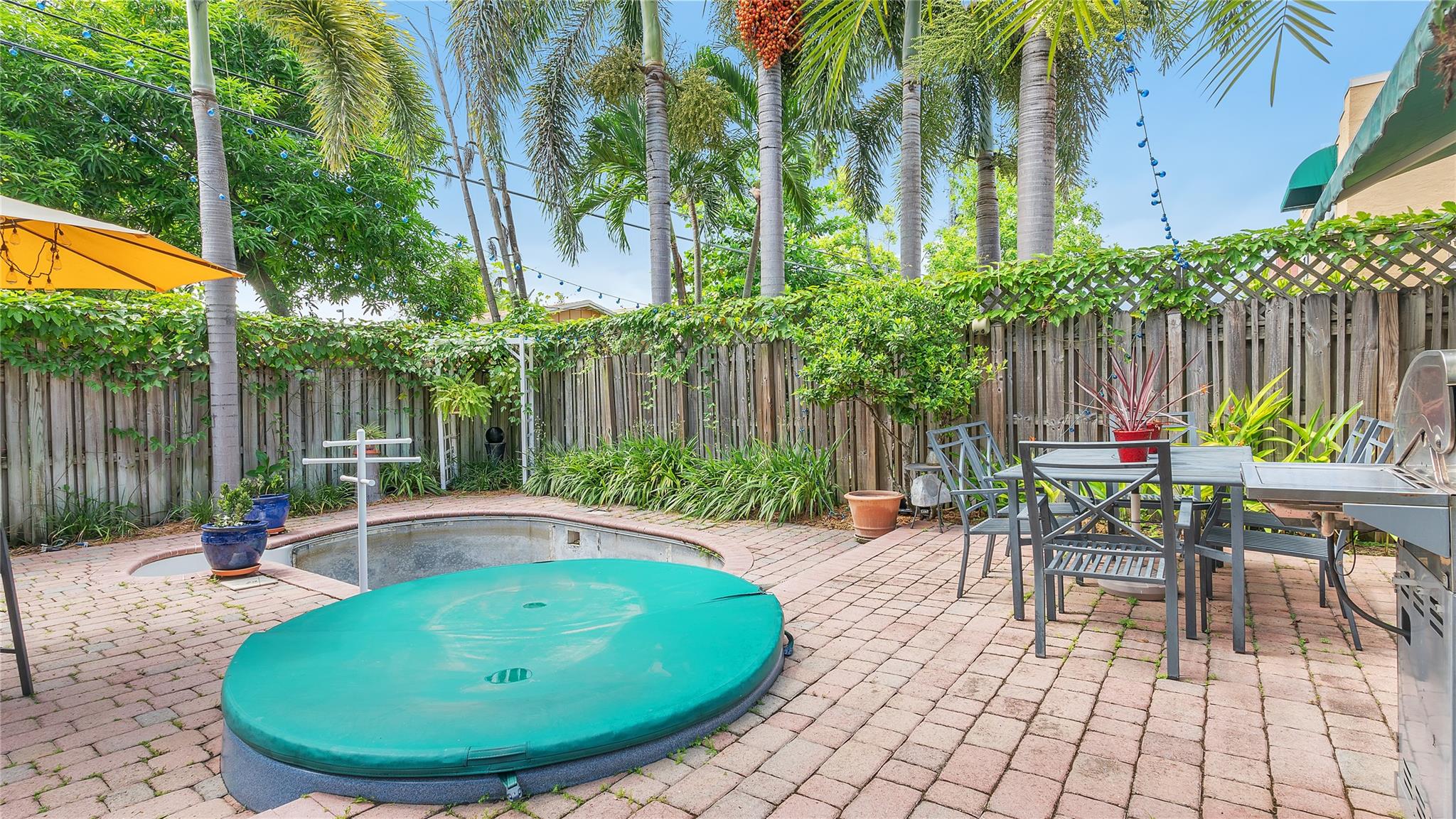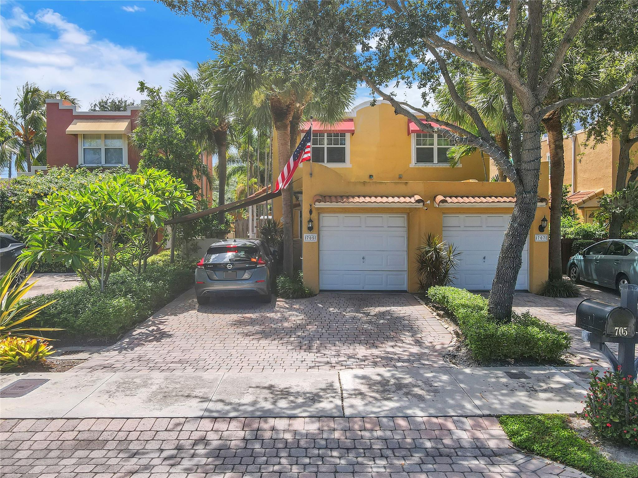 Elegant Spanish-style townhome nestled in Old Progresso Village, a trendy hotspot of Ft Lauderdale. Paver driveway leads to a detached garage, complemented by a quaint courtyard. Inside, an open floor plan seamlessly connects the living, dining, family, and kitchen spaces - perfect for modern living. Step out to the back paver patio where a plunge pool and flow-over hot tub invite relaxation. The main level offers a full bath, with 2 beds and 2 baths upstairs. Embrace eco-friendly features: solar water heater, rubber-sealed and insulated roof, rain barrels w/pump, and LED landscape lighting. Impact windows/doors. Security/camera system included. Just moments to Sistrunk Marketplace, FAT Village, The Wharf, Las Olas, Brightline, beaches, lively bars, and eateries!