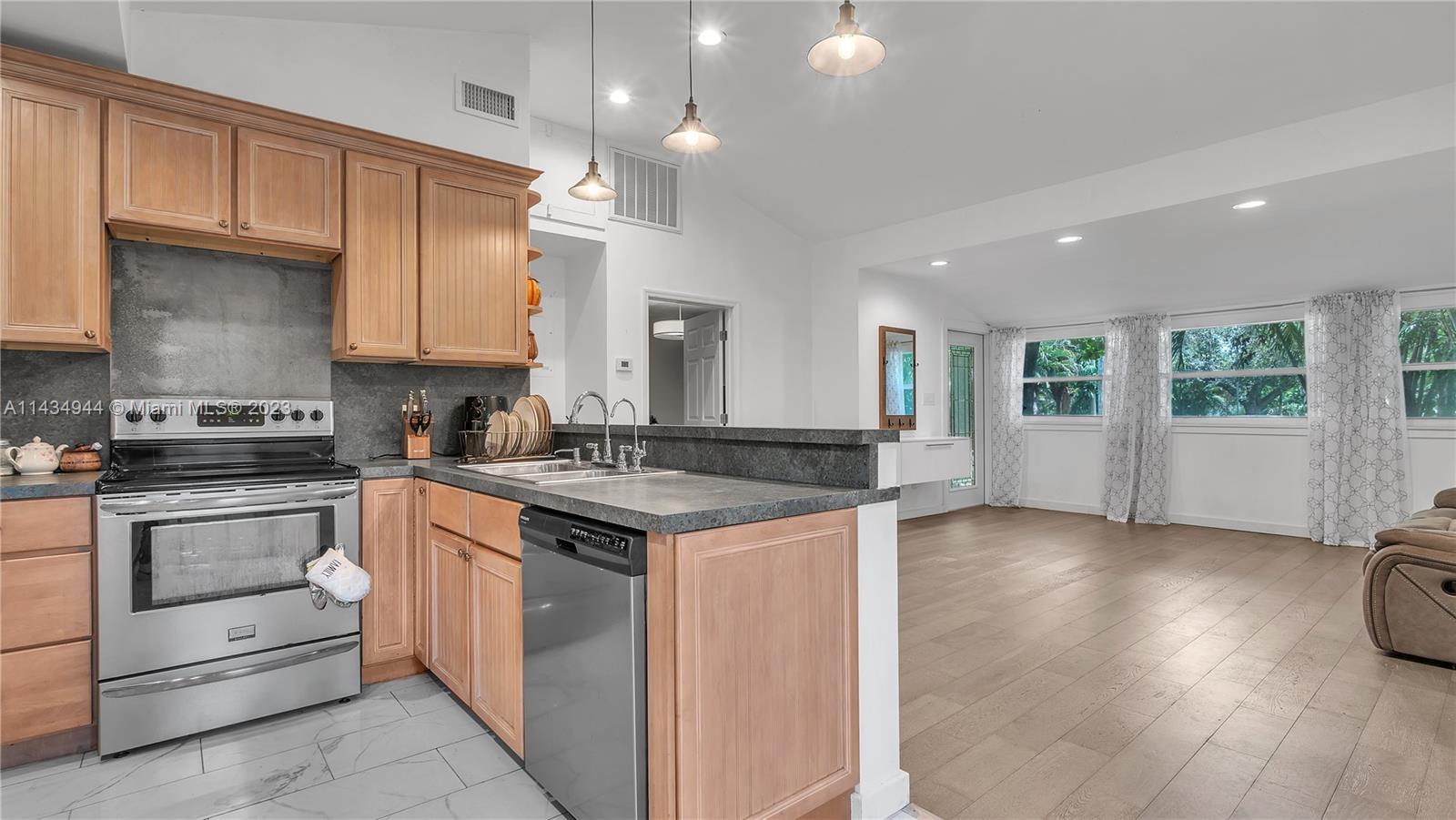 Welcome to your dream home in the highly sought-after area of Pompano Beach! This 4-bedroom, 2-bath gem has been meticulously renovated for your immediate enjoyment. NEW flooring, NEW windows, NEW bathroom, NEW roof, and a NEW modern kitchen with NEW appliances. Natural light throughout with vaulted ceilings creates an inviting atmosphere. The spacious front and backyard with mature trees, offer endless possibilities - picture your own private pool oasis or lush garden retreat. Nestled in Old Pompano across the street from Kester Park, minutes from the beach, dining, shops, entertainment, and a New Top Golf COMING SOON! NO HOA. Make it your own! Bring your toys, boat, and RV! Perfect for a first-time home buyer, or highly desirable Airbnb. Your affordable dream home awaits!