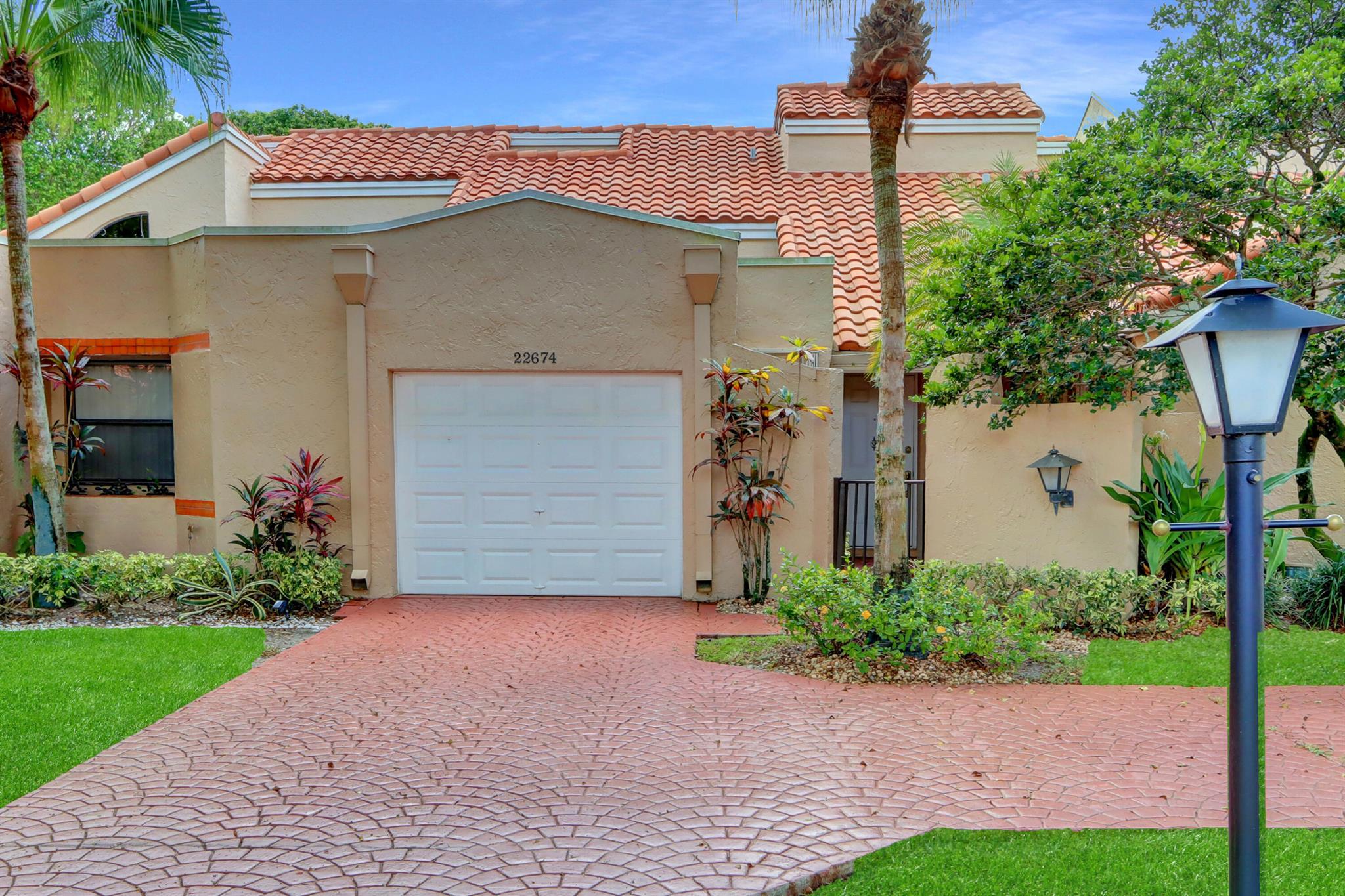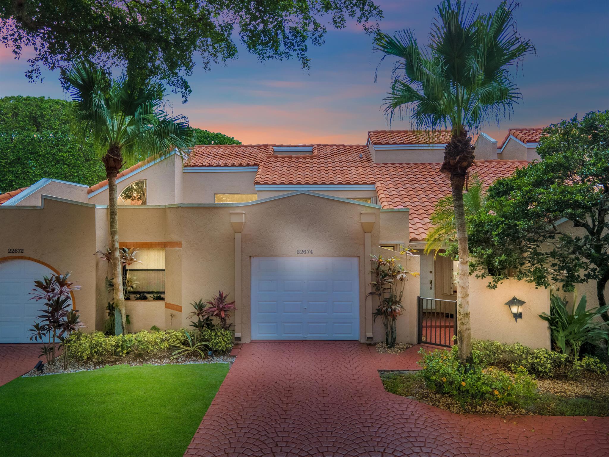Embrace the luxury living in this STUNNING LAKEFRONT VILLA at 22674 Meridiana Drive, Boca Raton, FL. Enjoy the best of both worlds with tranquil lake views that soothe the senses while being nestled in the highly sought-after Meridiana community within Boca Pointe. This one-story villa showcases unparalleled elegance with a kitchen that features newer stainless steel appliances, White Shaker Cabinets, and Granite Countertops. Both bathrooms have been tastefully updated, offering a spa-like retreat. Revel in the comfort of NEW flooring in both bedrooms and a fresh coat of paint throughout. NO Popcorn Ceilings. Modern conveniences like remote-controlled ceiling fans and 2 Atriums infuse the home with natural light.Step onto the HUGE Covered & Screened Patio, perfect for outdoor