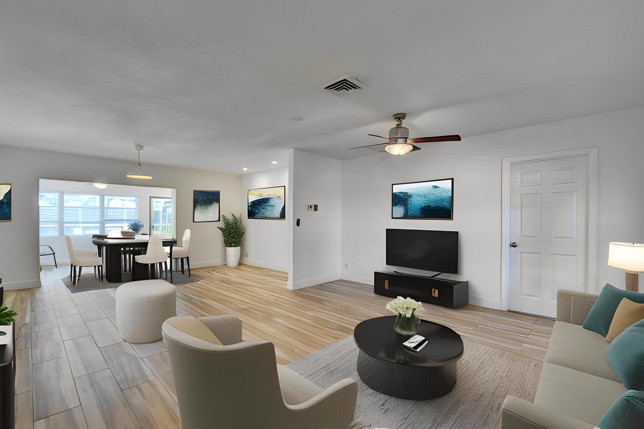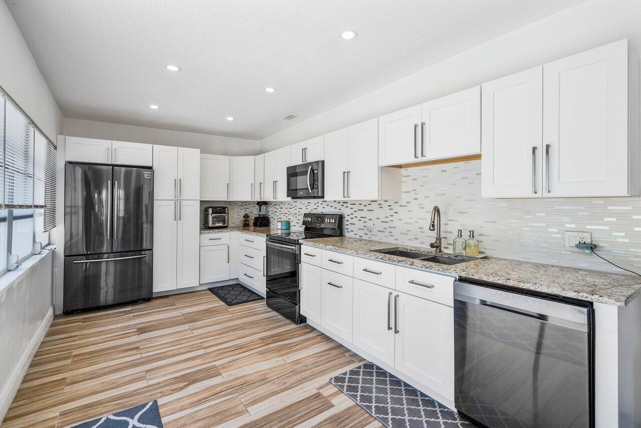 Nestled in the heart of vibrant East Boca Raton, a captivating haven awaits to redefine your idea of home. Get ready to experience this updated single-family gem, boasting 3 bedrooms and 2 bathrooms. Step inside to discover a carefully curated space of comfort and convenience.The open layout seamlessly connects the living, dining, and kitchen areas, creating a sense of fluidity that's perfect for both quiet evenings and lively gatherings. Natural light dances across the wood plank tile, enhancing the warm and welcoming atmosphere. Outside the walls of this stunning abode enjoy the sparkling pool situated on a large private lot with room for a boat. Impact windows on front, back, & sides of the home, installed in 2022. See MORE.