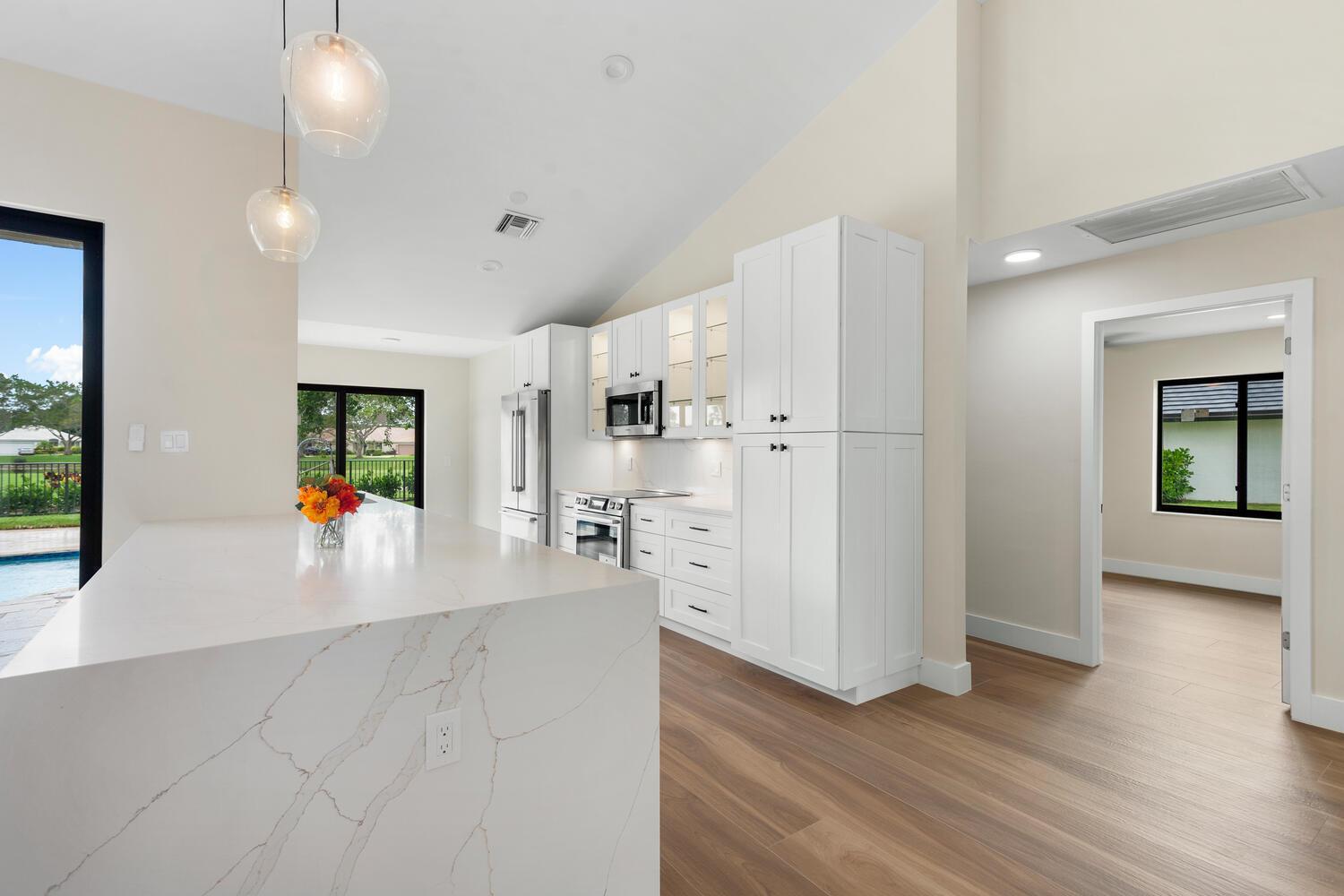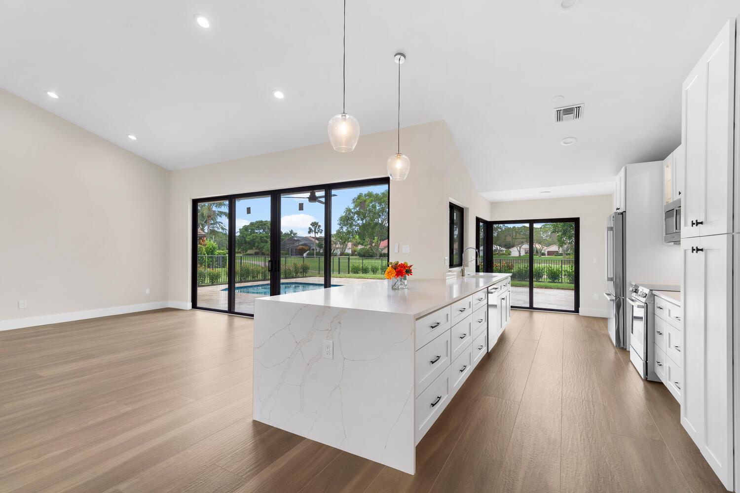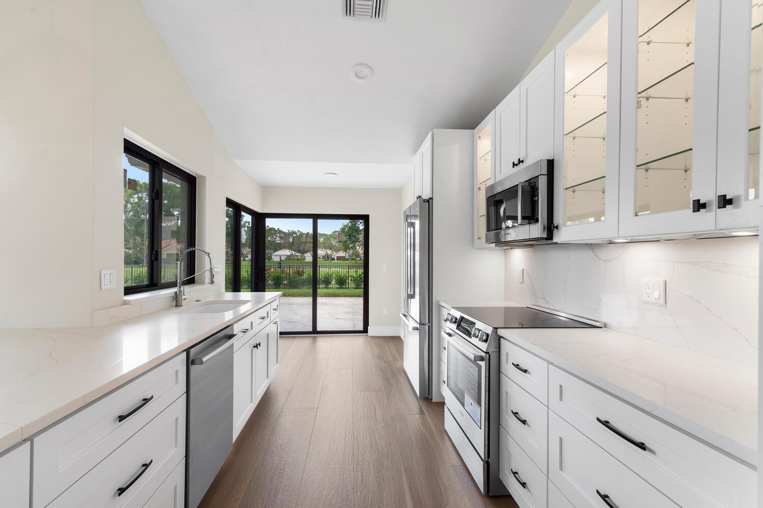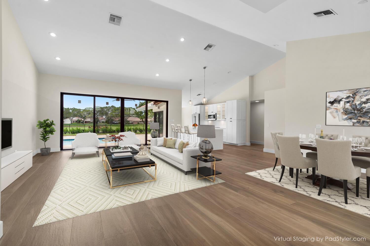 Must obtain private Golf membership. Stunning full renovation. Italian porcelain plank floor throughout home, gorgeous custom baths with high end designer fixtures. New diamond bright pool and deck pavers. All brand new Bosch kitchen appliances, LG Front loading washer/dryer. New 5 ton a/c, new garage doors. ALL NEW IMPACT GLASS THROUGHOUT! Golf View w/ pond beyond. See membership fees and monthly fees under documents tab $95,000 with $20,000 refundable when you sell the home + $20,598 (Annual Dues + $2000 (Annual Dining minimum) + $125. monthly as there is no tipping. Gorgeous Boutique Golf Club with 2 beautiful 18 hole courses. New 15 million dollar club renovation! See Broker Remarks for showing.