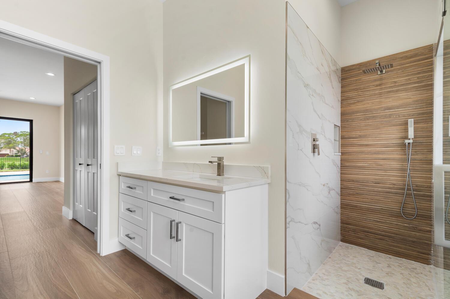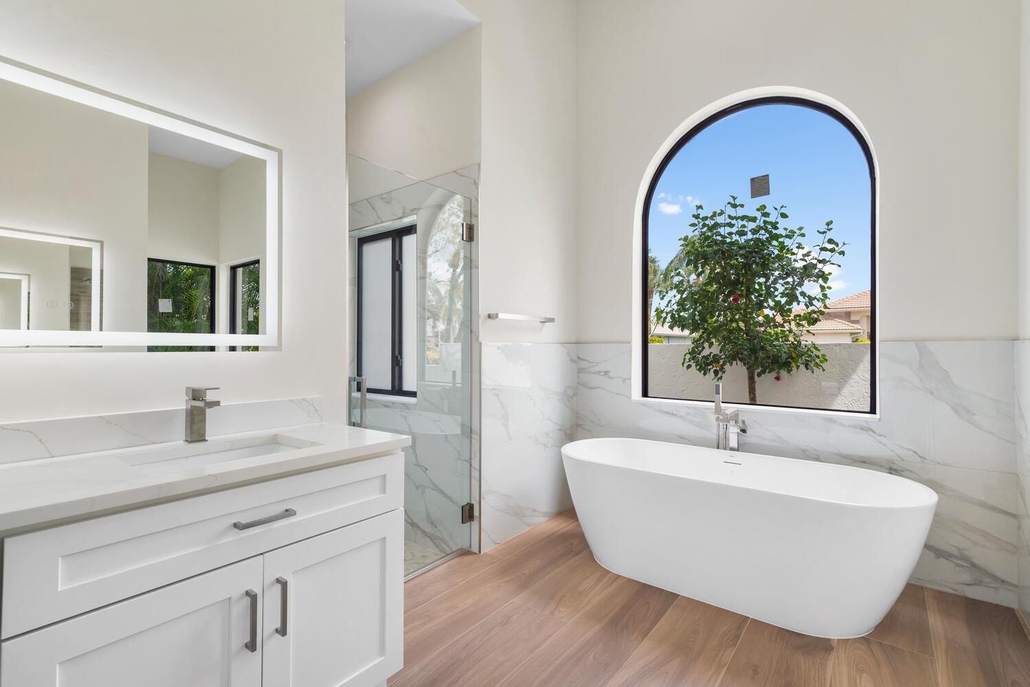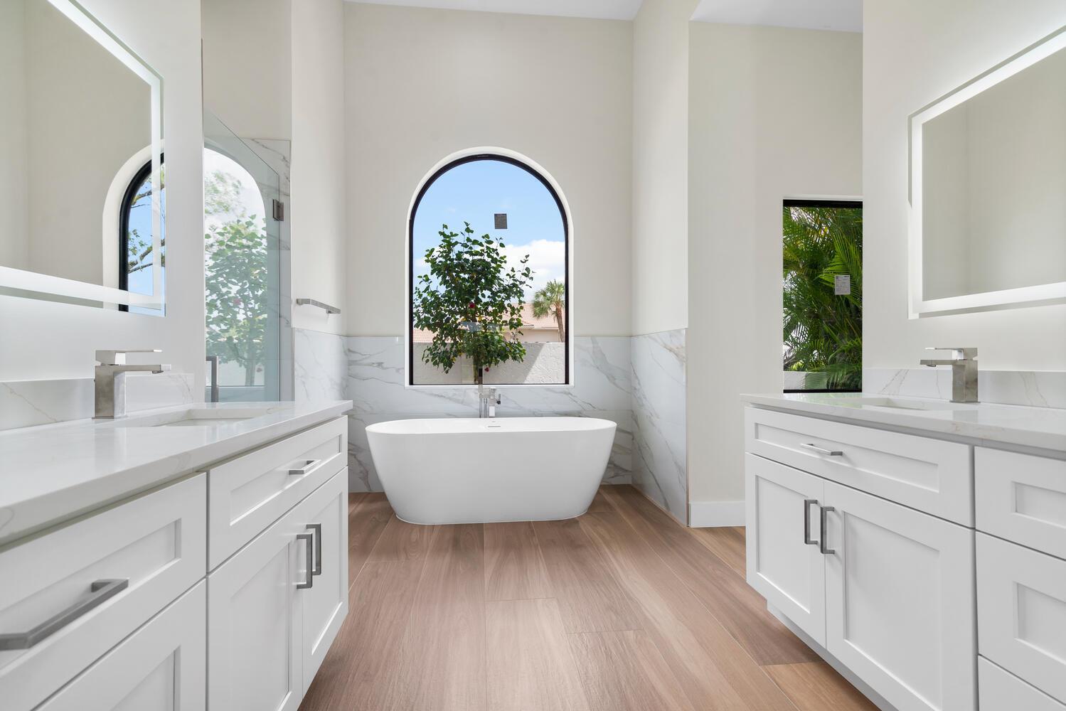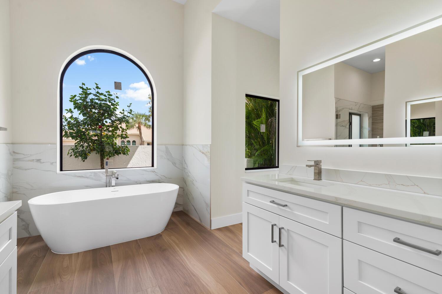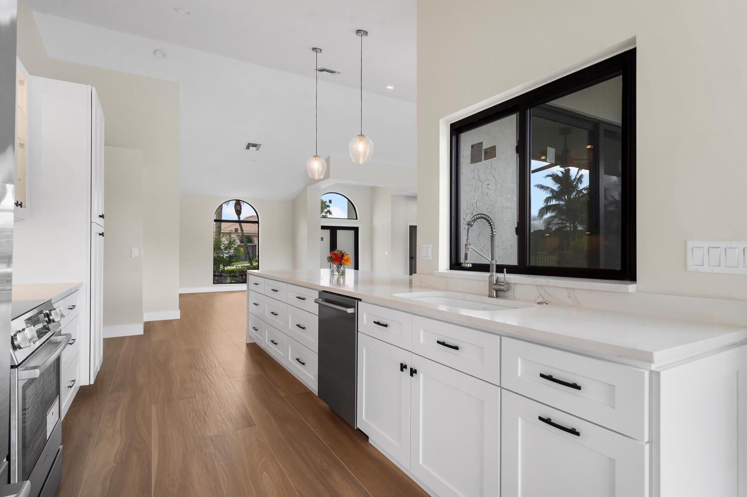 Must obtain private Golf membership. Stunning full renovation. Italian porcelain plank floor throughout home, gorgeous custom baths with high end designer fixtures. New diamond bright pool and deck pavers. All brand new Bosch kitchen appliances, LG Front loading washer/dryer. New 5 ton a/c, new garage doors. ALL NEW IMPACT GLASS THROUGHOUT! Golf View w/ pond beyond. See membership fees and monthly fees under documents tab $95,000 with $20,000 refundable when you sell the home + $20,598 (Annual Dues + $2000 (Annual Dining minimum) + $125. monthly as there is no tipping. Gorgeous Boutique Golf Club with 2 beautiful 18 hole courses. New 15 million dollar club renovation! See Broker Remarks for showing.