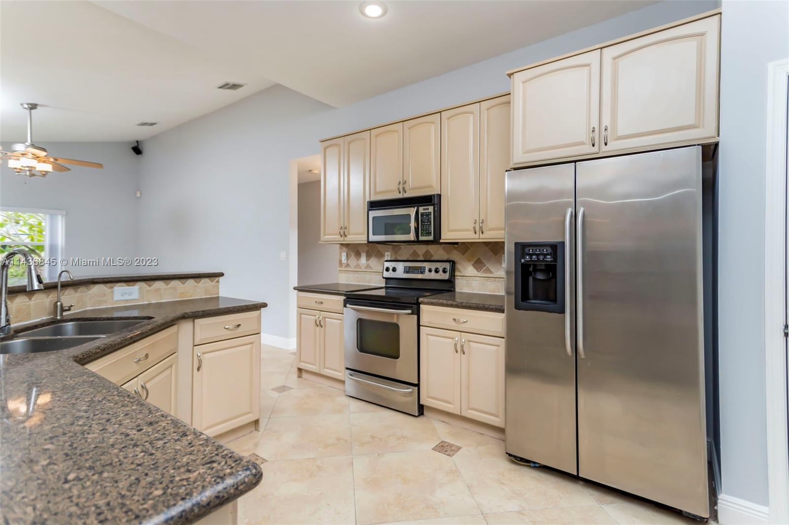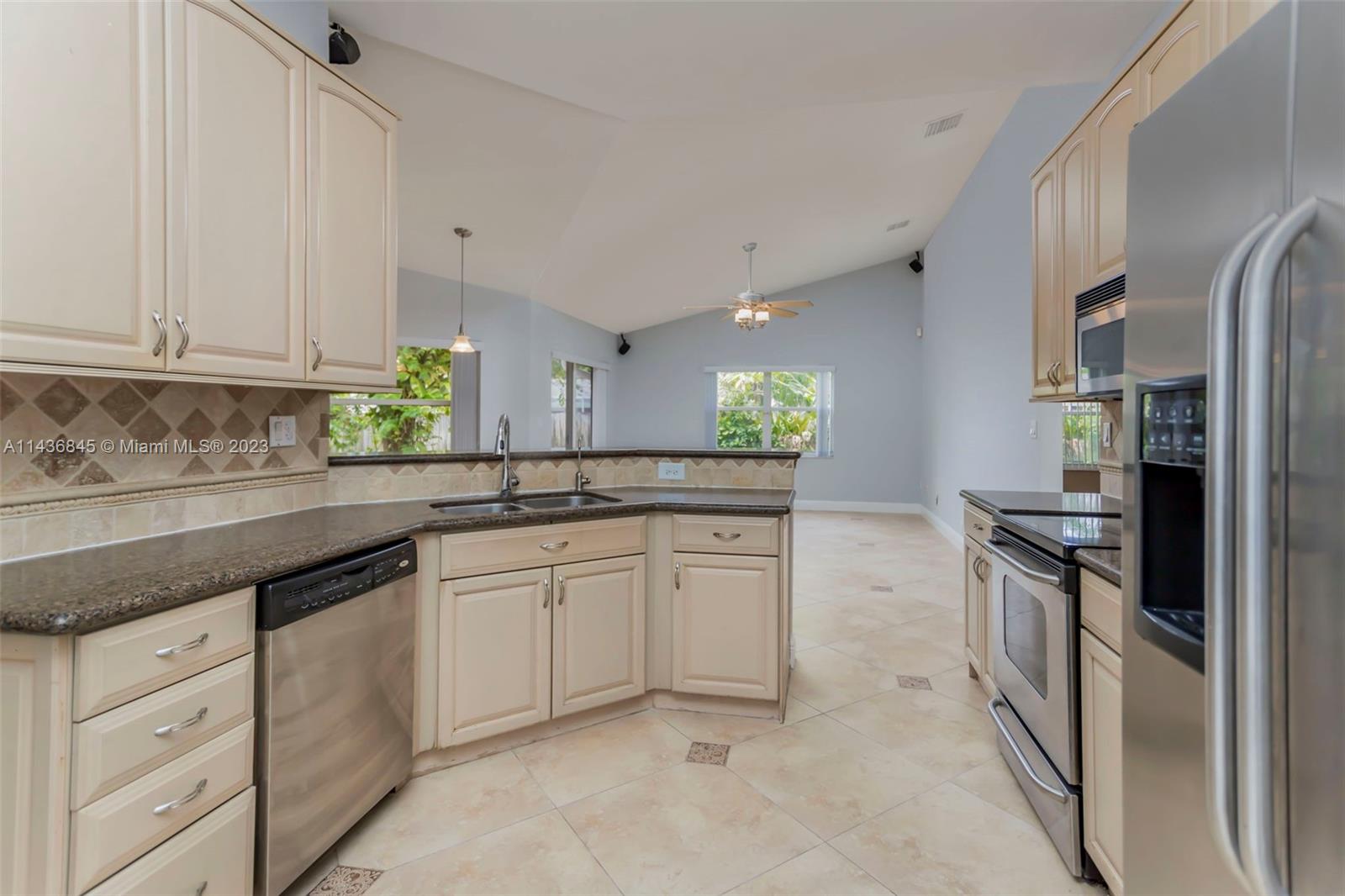 BEAUTIFUL 3 BEDROOM TWO BATH CORNER LOT HOME IN THE HEART OF PLANTATION! VOLUME CEILINGS, PORCELAIN TILE THROUGHOUT, FRESHLY PAINTED & NEW CEILINGS-NO POPCORN. UPDATED KITCHEN WITH STAINLESS STEEL APPLIANCES AND GRANITE COUNTERTOPS OPEN TO THE FAMILY ROOM. FORMAL LIVING AND DINING ROOM. RENOVATED GUEST BATHROOM. PRIMARY BEDROOM FEATURES LARGE WALK IN CLOSET, DOUBLE SINKS & SEPARATE TUB AND SHOWER. 2020 BARREL TILE ROOF & BRAND-NEW GUTTERS! NEW BLINDS THROUGHOUT. LARGE CORNER LOT, 2 CAR GARAGE, LOW HOA! AMAZING LOCATION- HIGH SCHOOL RIGHT ACROSS THE STREET AND EASY WALK TO ELEMENTRAY AND MIDDLE PLUS HERITAGE PARK! EASY ACCESS TO TURNPIKE AND 595! UNLIKE THE SURROUNDING PROPERTIES THIS HOME OFFERS A MUCH YOUNGER BUILD OF 1996!