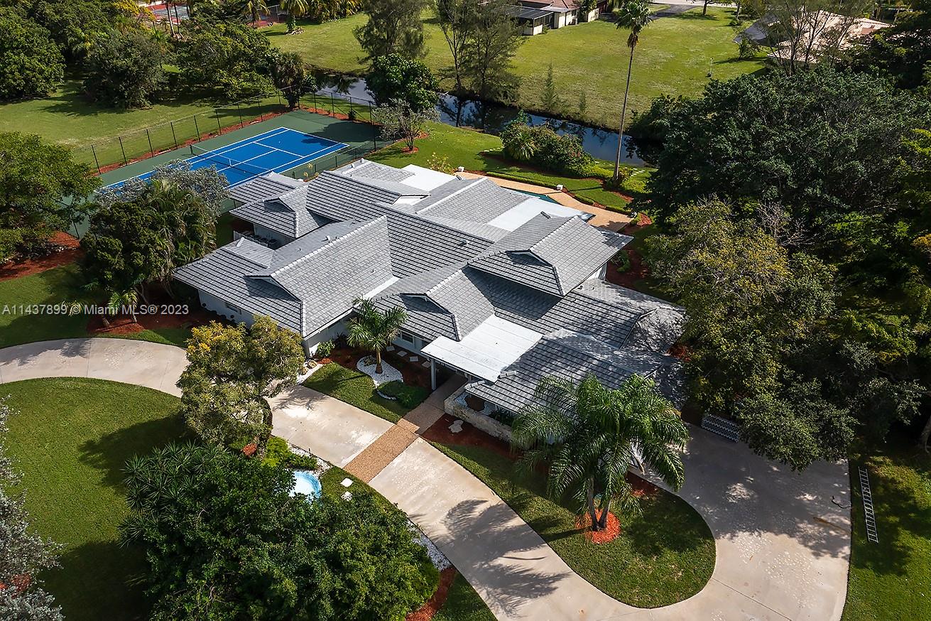 BACK TO THE MARKET! Waterfront estate w/ pool & tennis court that sits on a 1+ acre lot in the exclusive Running Brook Hills, Coral Springs. Its architectural style was conceived to incorporate, in perfect harmony, the beauty of the external into the internal spaces.This renovated home boast 4 beds, 3 baths. Vaulted wood beans ceilings, open concept Family & Kitchen, formal dining & living. Screened patio w/ access from different areas of the house that offers great views of the pool and garden & tennis Court, gourmet kitchen, master bedroom w/ bonus room, 2 walk-in closets, huge master bathroom. Independent Mother-in-law suite. Huge Circular driveway surrounded by manicured landscaping. Renovations were done in 2022 including roof, AC, heater, kitchen, floors, bathrooms, & more. NO HOA!