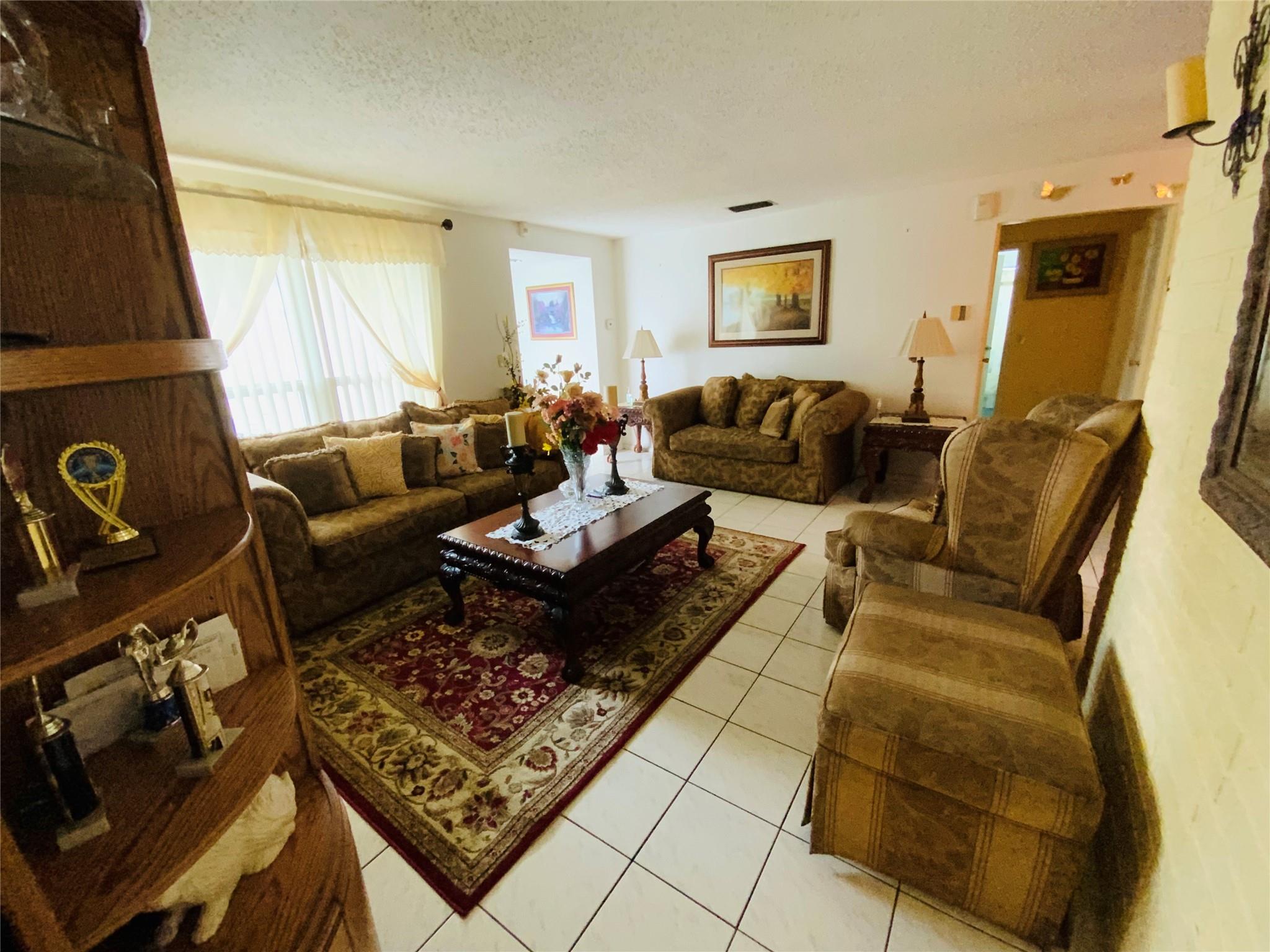 This meticulously maintained 3/2 is extremely spacious in every room! Split bedroom floor plan. Including a family room, living room and bonus room could be multi purpose! Cozy sitting space on porch out front. Roomy backyard for get togethers and bbq’s with family and friends. Shed for extra storage. Two linen closets. Brand New Impact windows and doors installed April 2023! Full Kitchen remodeled 2021 including cherrywood cabinets, granite countertops and appliances! Newer water heater and AC only 6 yrs. Located in a quiet, desirable neighborhood of Sunrise. Must see for yourself! Schedule a showing today, this will not last!