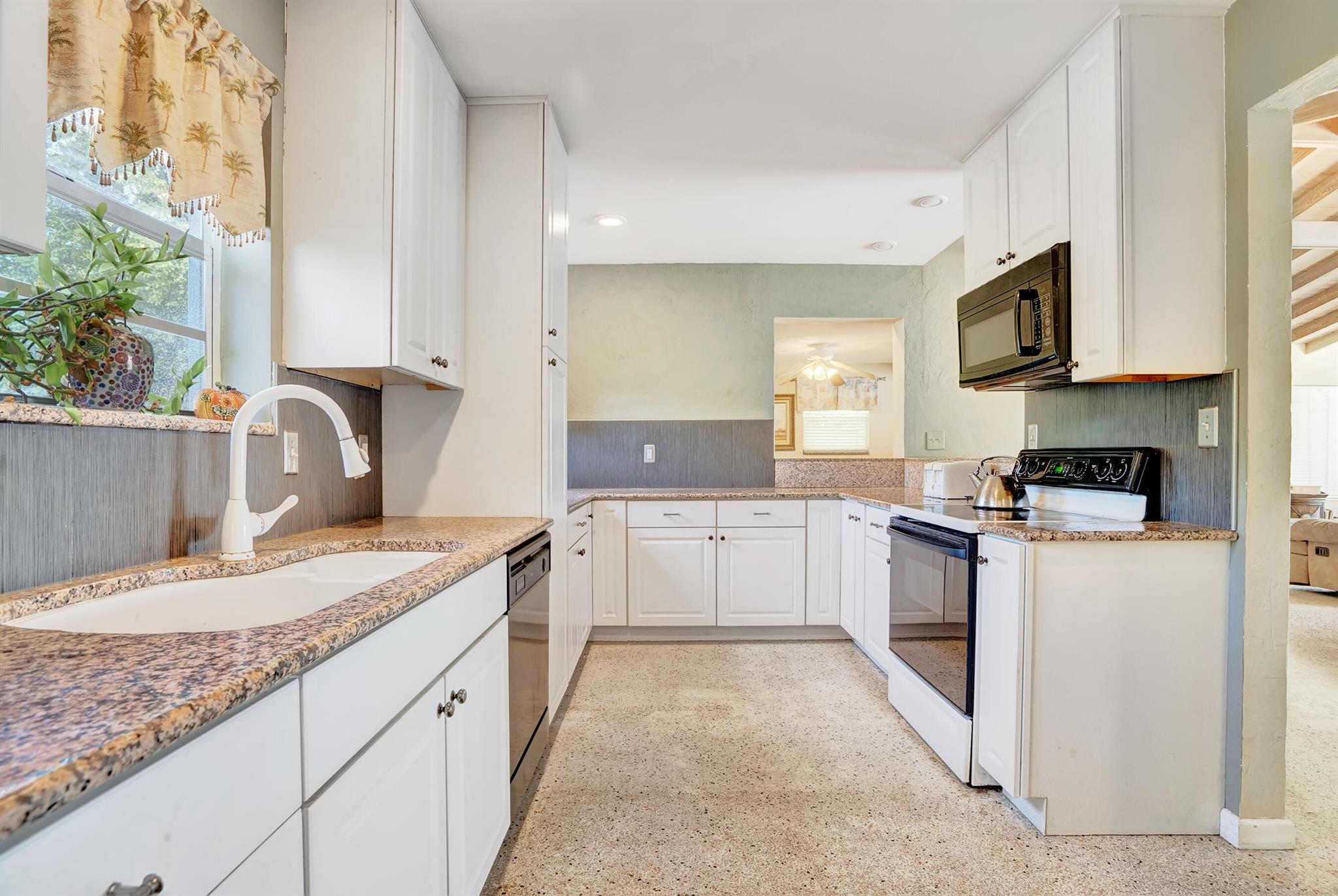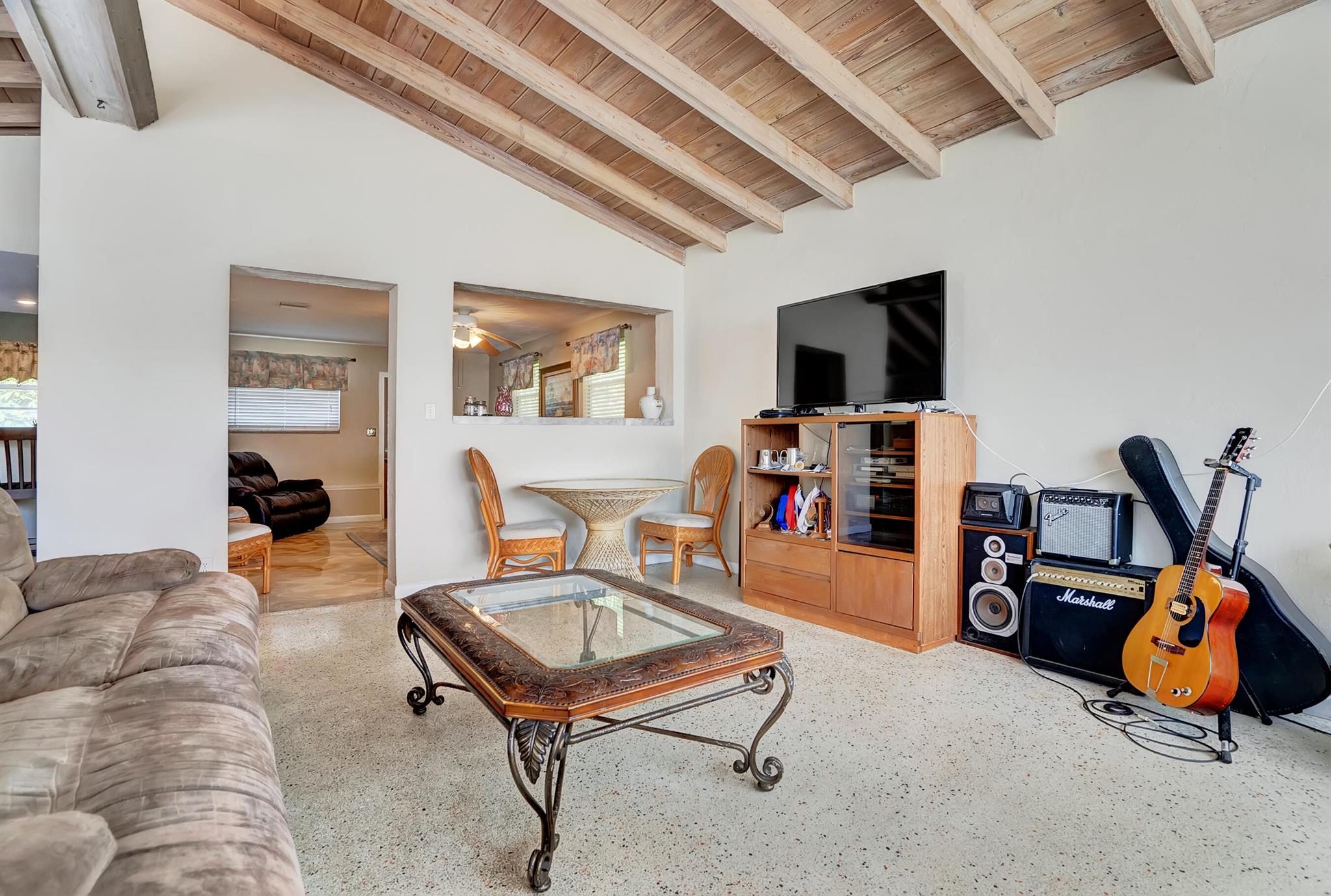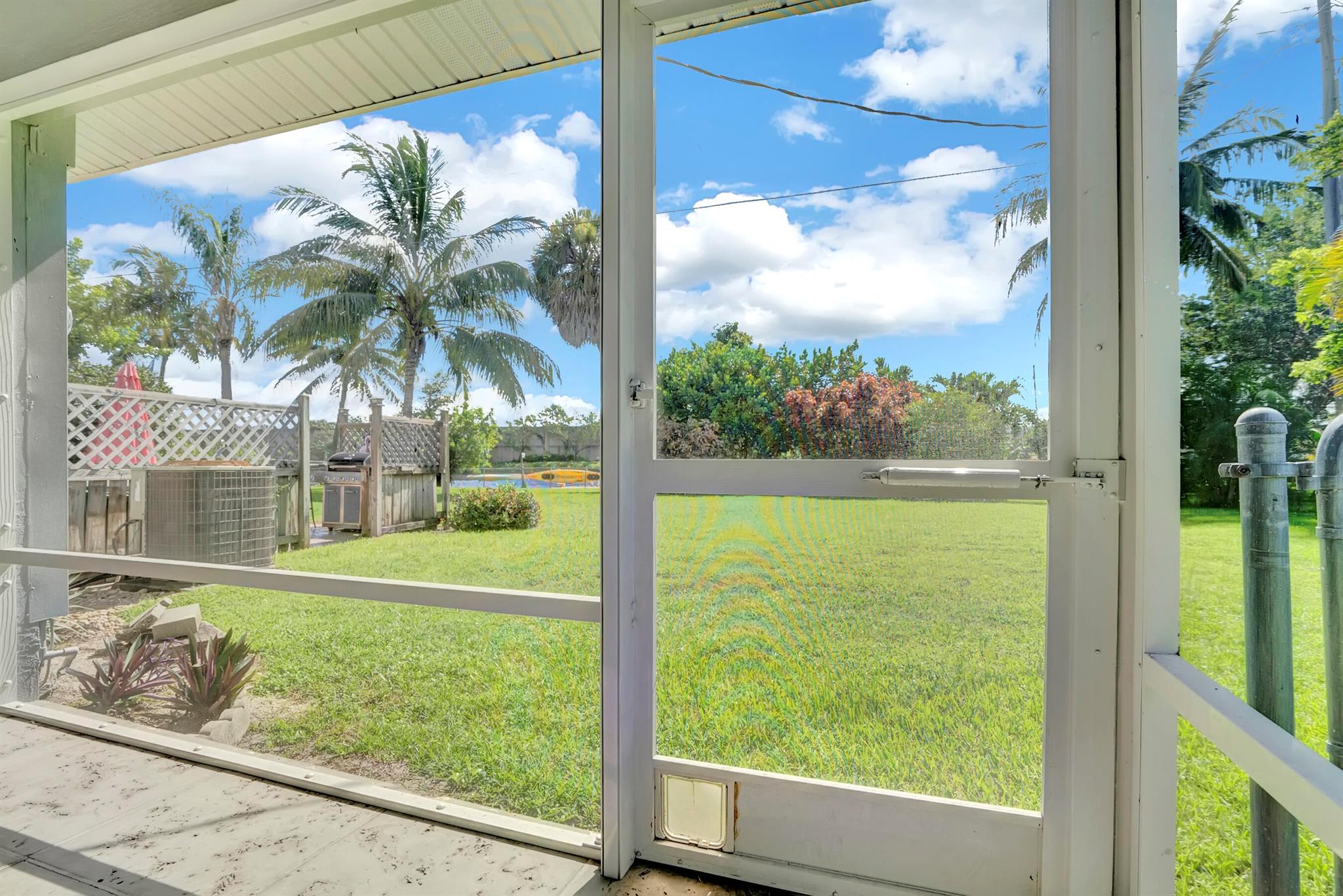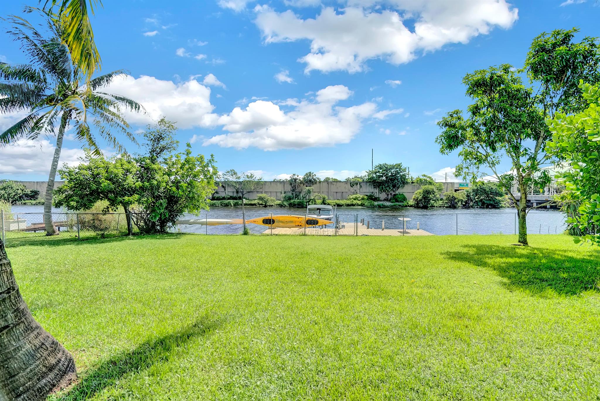 Boaters dream home. Rare waterfront property on NAVIGABLE canal with access to Clear Lake; Lake Osborne, Lake Ida and canal systems throughout Palm Beach. Open bright and spacious 3 bedroom 2 bath home. Updated kitchen with granite counter tops. Beautiful terrazzo flooring throughout living space with volume ceilings. Large exposed ceiling beams add character to this modernized home. 3 large bedrooms. Massive open living space for entertaining with walk-out to large deck with hot tub and barbeque station. A large fenced yard leads to custom dock on wide canal. Recent complete exterior painting. Oversized 2 car garage - room for boat. This home is centrally located with easy access to schools; shopping; beaches and highways. All of this in a lovely neighborhood with NO HOA