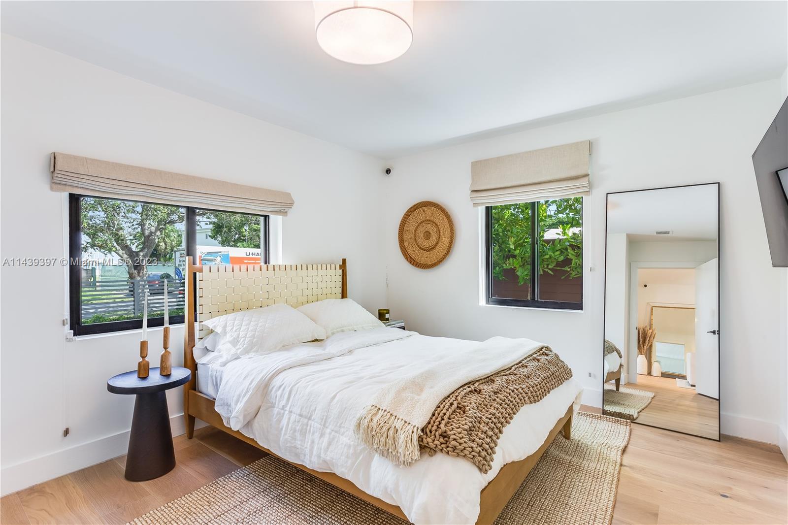 Located on the prestigious North Bay Rd this gated 4 bed/4.5 bath newly renovated turn key house will wow you with its overall attention to detail. Beautiful new light wood oak floors run throughout the entire home. All 4 spacious light filled bedrooms have full en-suite bathrooms and great closet space. The house also has two separate living areas perfect for Miami Beach entertaining and/or family use. The kitchen features all top of the line appliances, plenty of counter space and generous storage. Outside you will find a beautiful oversized pool, large turfed backyard, full summer kitchen all surrounded by fully matured landscaping with all new landscape lighting. This is the North Bay Rd house you've been looking for to call home.