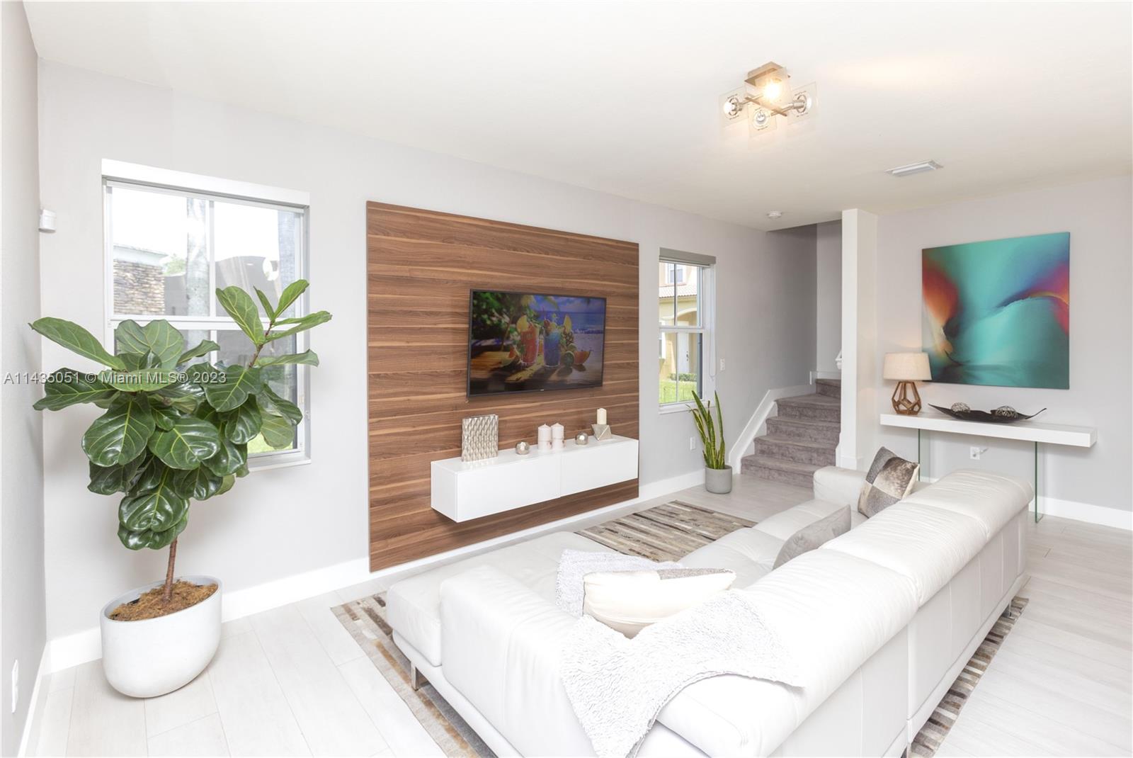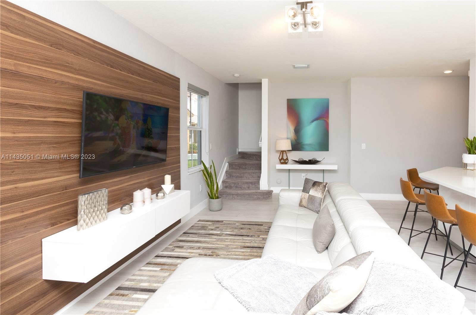 Beautiful and spectacular corner townhouse located in one of the best complexes in Doral, Polynesian at Islands at Doral, strategically located with easy access to everything. It offers you 5 bedrooms and 3 full bathrooms, beautiful open and integrated kitchen design with quartz countertop, stainless steel appliances. It also offers a spectacularly modern and spacious patio, porcelain floors, a bedroom and full bathroom located on the first floor. Double garage, all rooms have modern wooden closet design and Blackout blinds on all windows. Amenities include playground, pool. Additional access to the beautiful Islands At Doral Club house, which offers you tennis courts, swimming pools, a gym, a basketball court, a children's park and more.