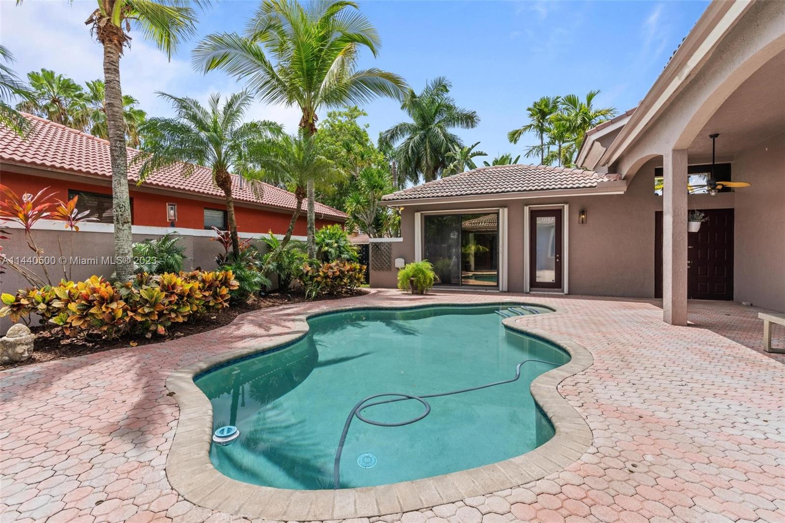 Welcome to a truly MAGNIFICENT courtyard estate in the highly desired Sunset Lakes! The most sought-after model in the subdivision for its unique design! As you walk through the main doors you are greeted by an open courtyard, which features a newly resurfaced pool & covered patio! An ideal + impressive setting for outdoor entertaining & S Fl living! Fantastic floor plan w 6 BR/4 BA including a separate guest quarters! BRAND NEW ROOF + PARTIAL IMPACT WINDOWS being installed! 2 NEW A/C units! Triple split floor plan where every room organically flows into the other. Gourmet kitchen w white wood cabinets, beautiful tile backsplash, stainless steel appliances & granite countertop. Accordion shutters throughout the house. Resort style community w/ many amenities and amazing fitness center!