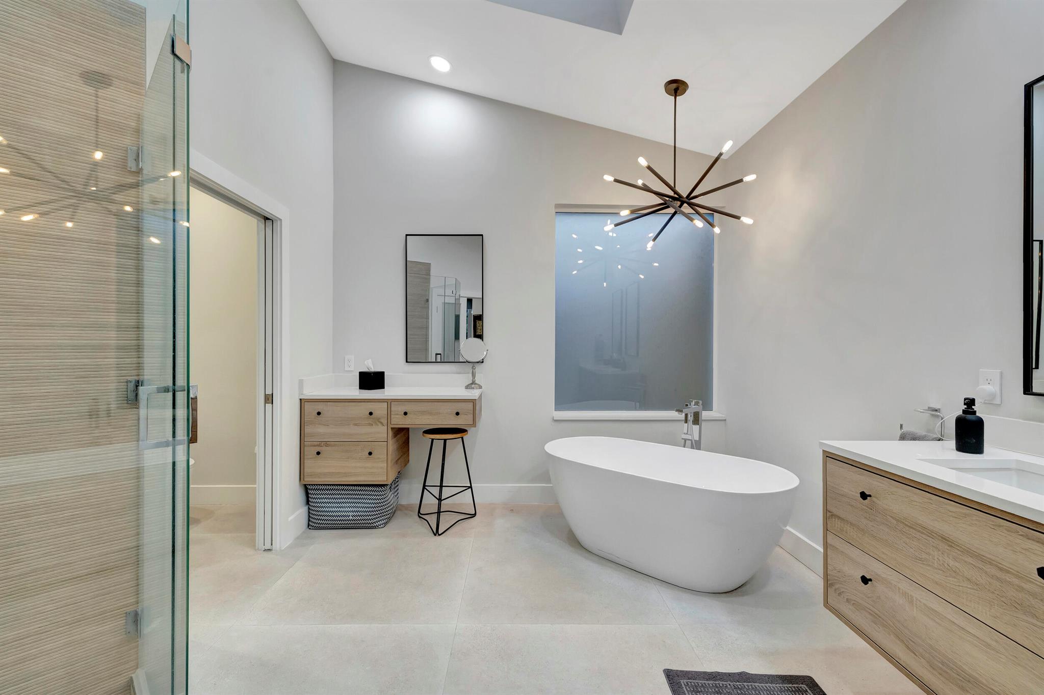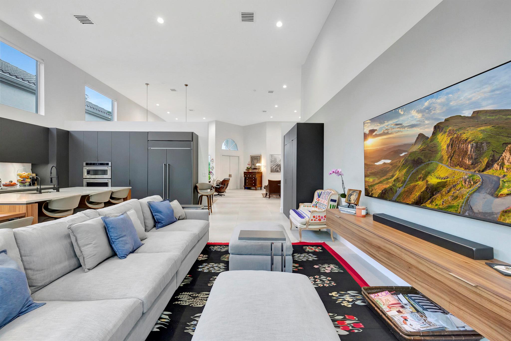 Move right in to this extraordinary renovated one story, 3 bedroom, 3.5 bath home in the highly sought after village of Fairway Lake in Broken Sound. Features include: Solar Heaters for the pool & water, electric shades, soaring ceilings, split bedrooms, open floor plan, 4X4 porcelain tile floors, contemporary custom built-in bar and impact glass (partial). The gourmet kitchen is open to the family room with quartz countertops, stainless appliances, a center island & 3 dishwashers. The bright primary suite features his/her baths with frameless showers, floating vanities and 2 custom walk in closets. Sip your morning coffee under your covered patio & enjoy plenty of sun by the private pool surrounded by Florida palms and serene landscaping. 2 A/C's 2020, roof 2006. Mandatory membership