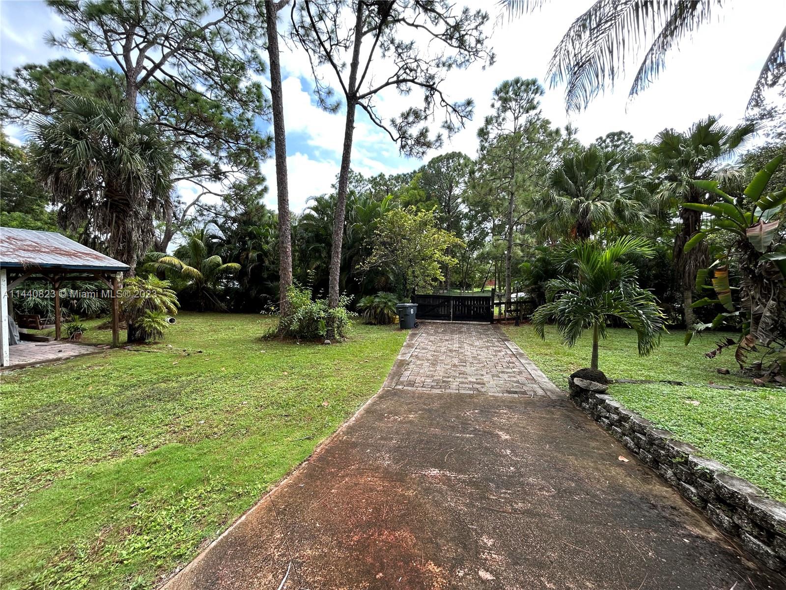 2 ACRE CORNER(1.94) BEAUTIFUL PROPERTY, Super PRIVATE. Bright 3 bedrooms, 2 baths, Oasis POOL and Gazebo, Vaulted wood ceilings and rock fireplace. Wood flooring and French doors. Plus a Separate Guest house with 1 bathroom, and a large poolhouse. FPL new underground wires. Paddock for horses, 1 car Garage. RV/Boat parking. Tall arbors and fruit trees, gated side entry. **Remodeling added 1,350 SQFT additional in 2012 as per tax records. Seller Disclosure.