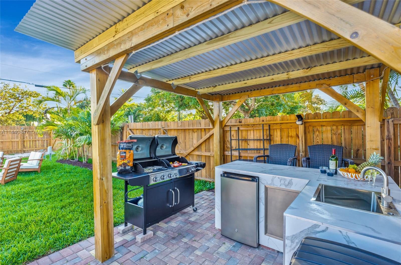 Fully REDONE 4 full-size bedrooms with 2 full-size bathrooms one level house on corner 9200 sqft lot. New plumbing and sewer line. New Electric. Impact Windows and doors. The house is used for the vacation rental business . Generates good Aibnb income. 5 stars reviews. The house has one level floor in the entire space. New white gloss kitchen with stainless steel appliances.,new A/C, New Pool heater. Deep large inground heated pool. The house is fully equipped and licensed for vacation business. Full-size summer kitchen and pergola . The house has two parking spots . No HOA. Park a BOAT or RV. The house has good elevation and a slab foundation. Never flooded.Possible to extend the house .