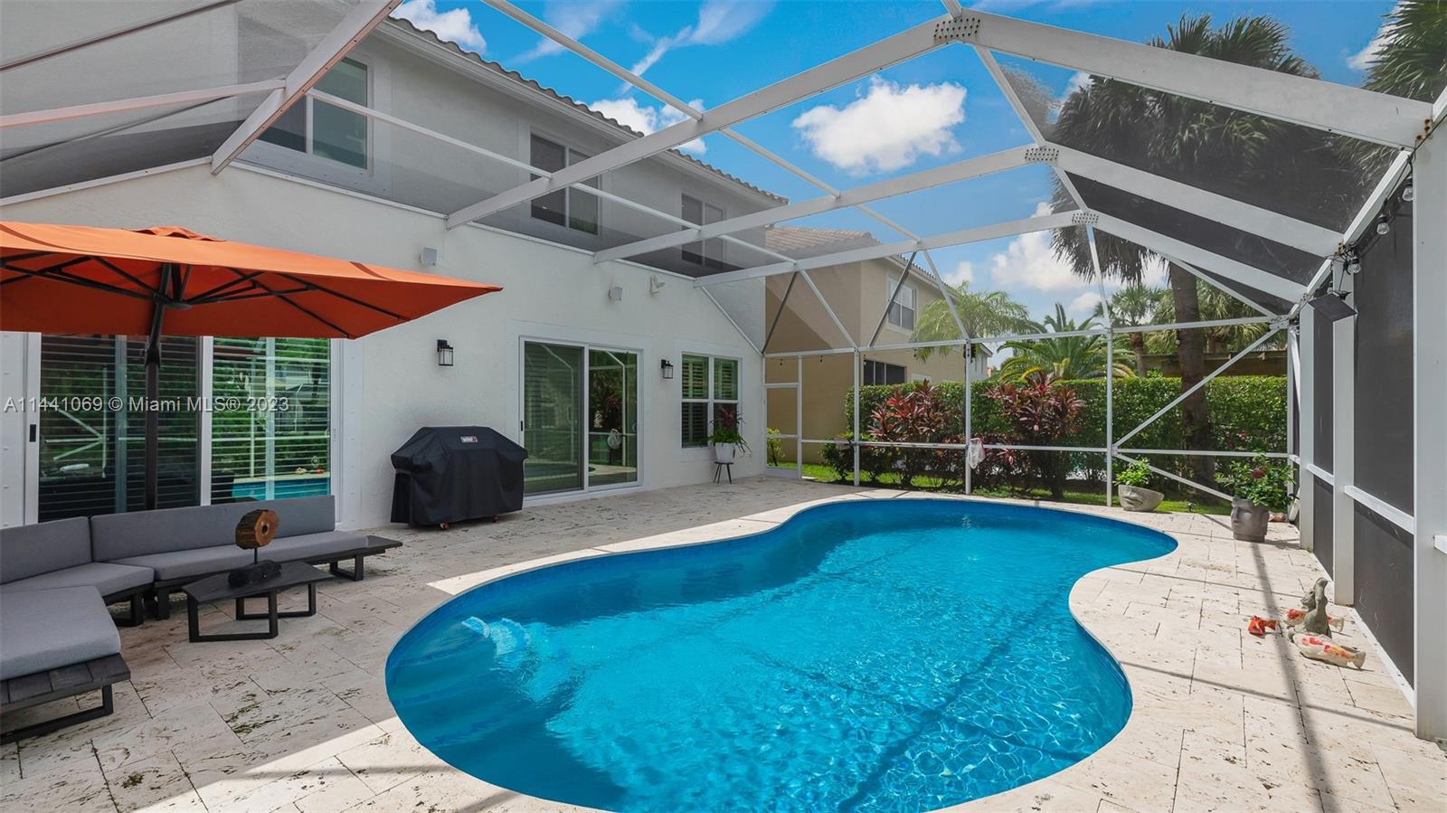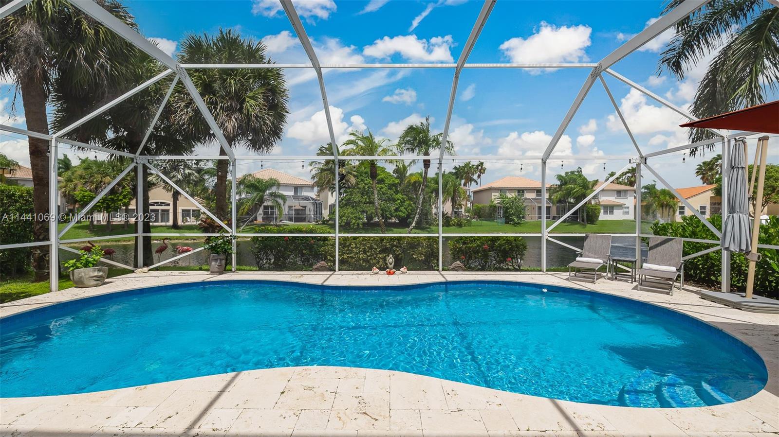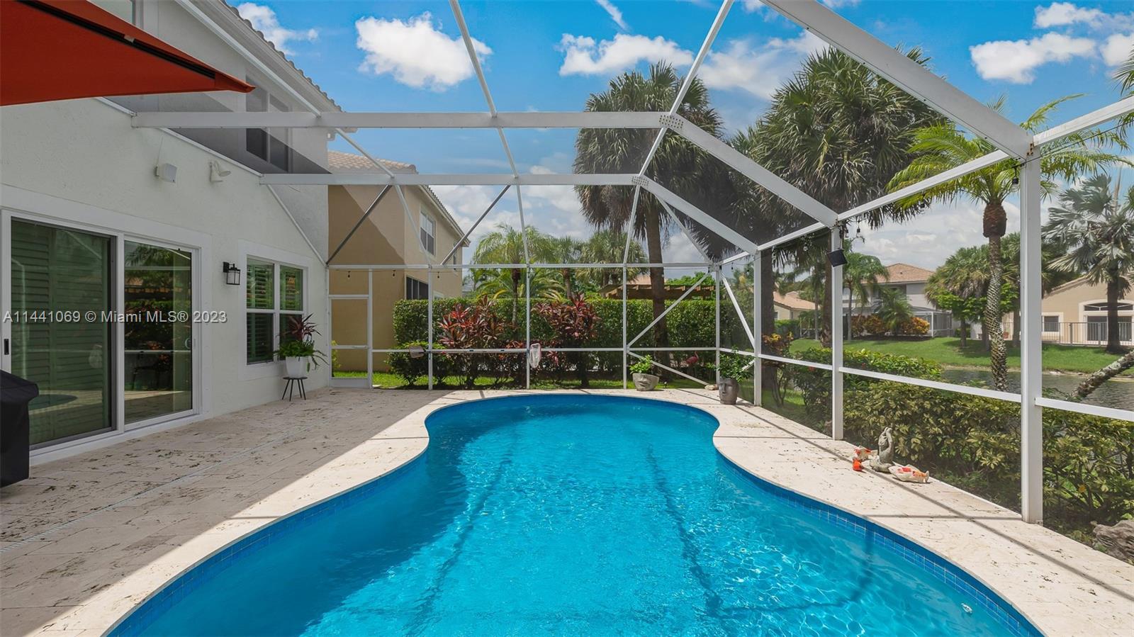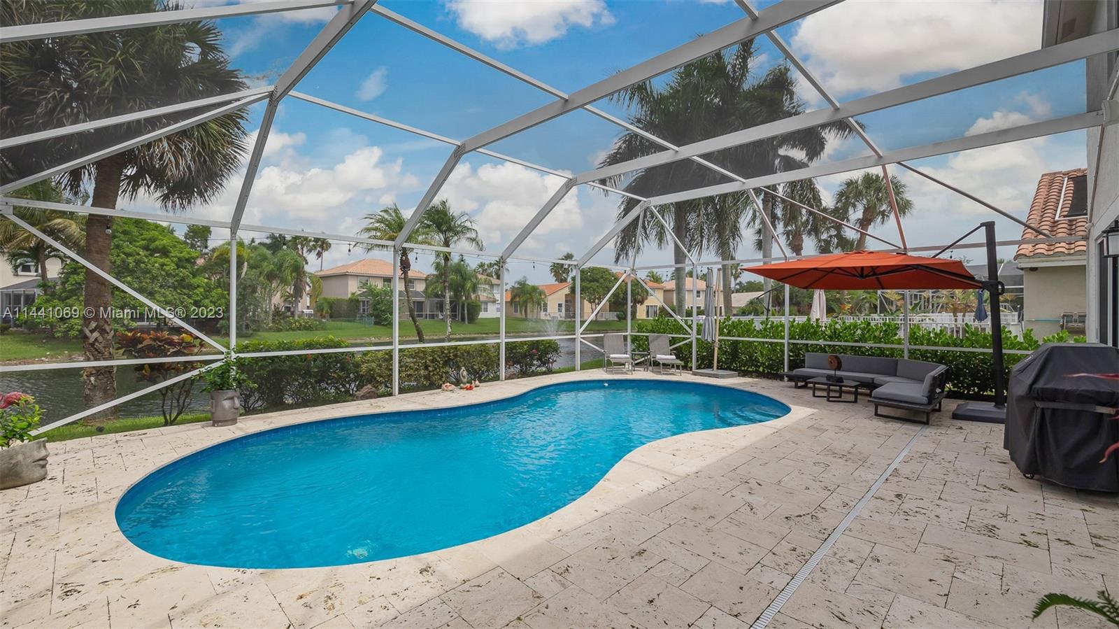Coral Springs Impeccably updated lakefront pool home in a privately gated community. Be ready for any season with New Hurricane Impact windows & doors, heated saltwater pool w large screened in lanai with breathtaking water views & lush landscaping.Open floor plan w volume ceilings perfect for entertaining and features contemporary white kitchen with granite countertops, stainless LG & Samsung high end appliances 2021. The main floor boast beautiful plantation shutters throughout. Custom wood built-in & dazzling chandelier highlight the dining room. Smart home features raise the level of ease and ambiance with LED lights, bluetooth speakers, ADT security system & more . Beautiful porcelain & wood floors through out, office built-in furniture. Newer washer & dryer. A MUST SEE!
