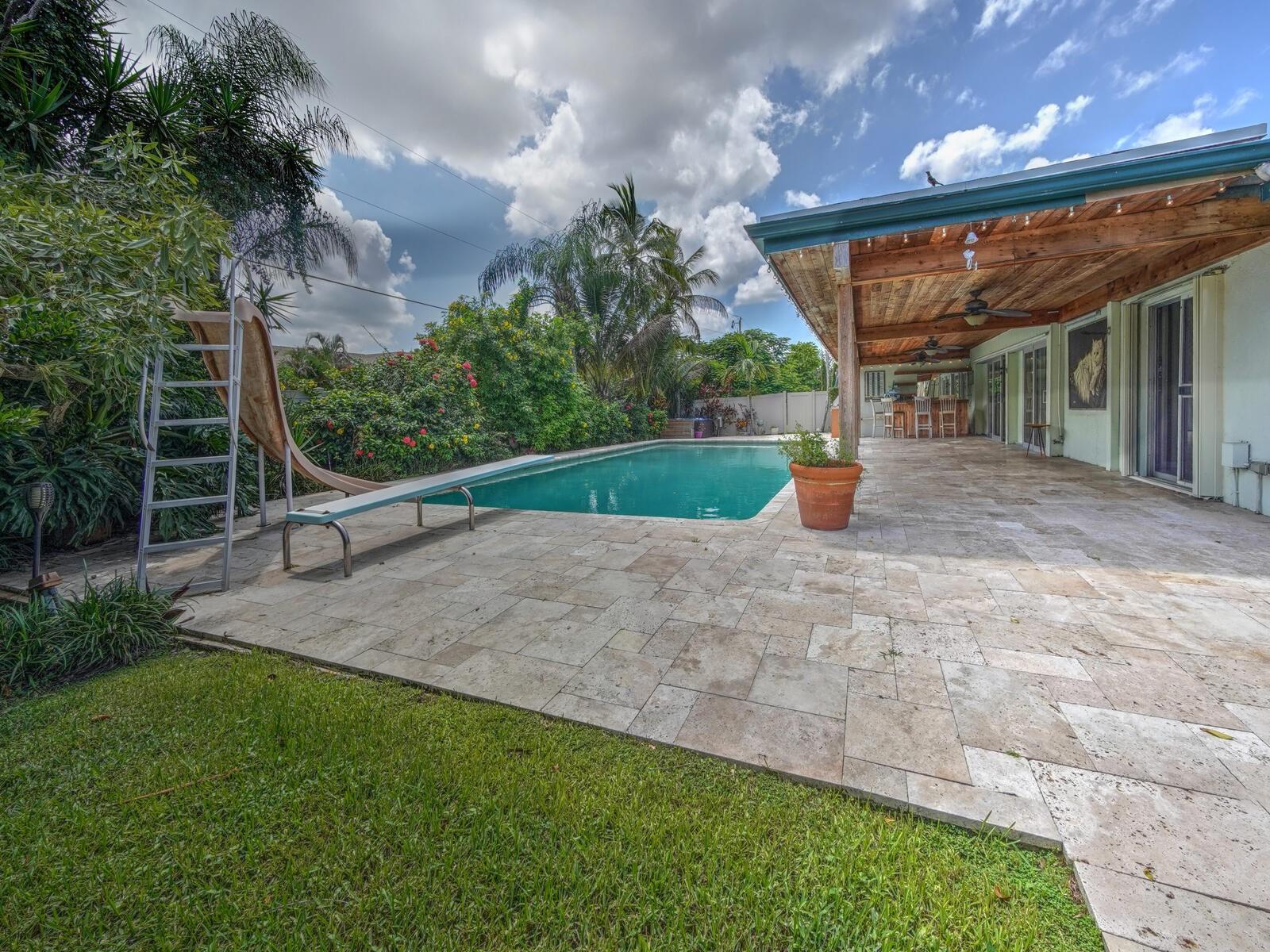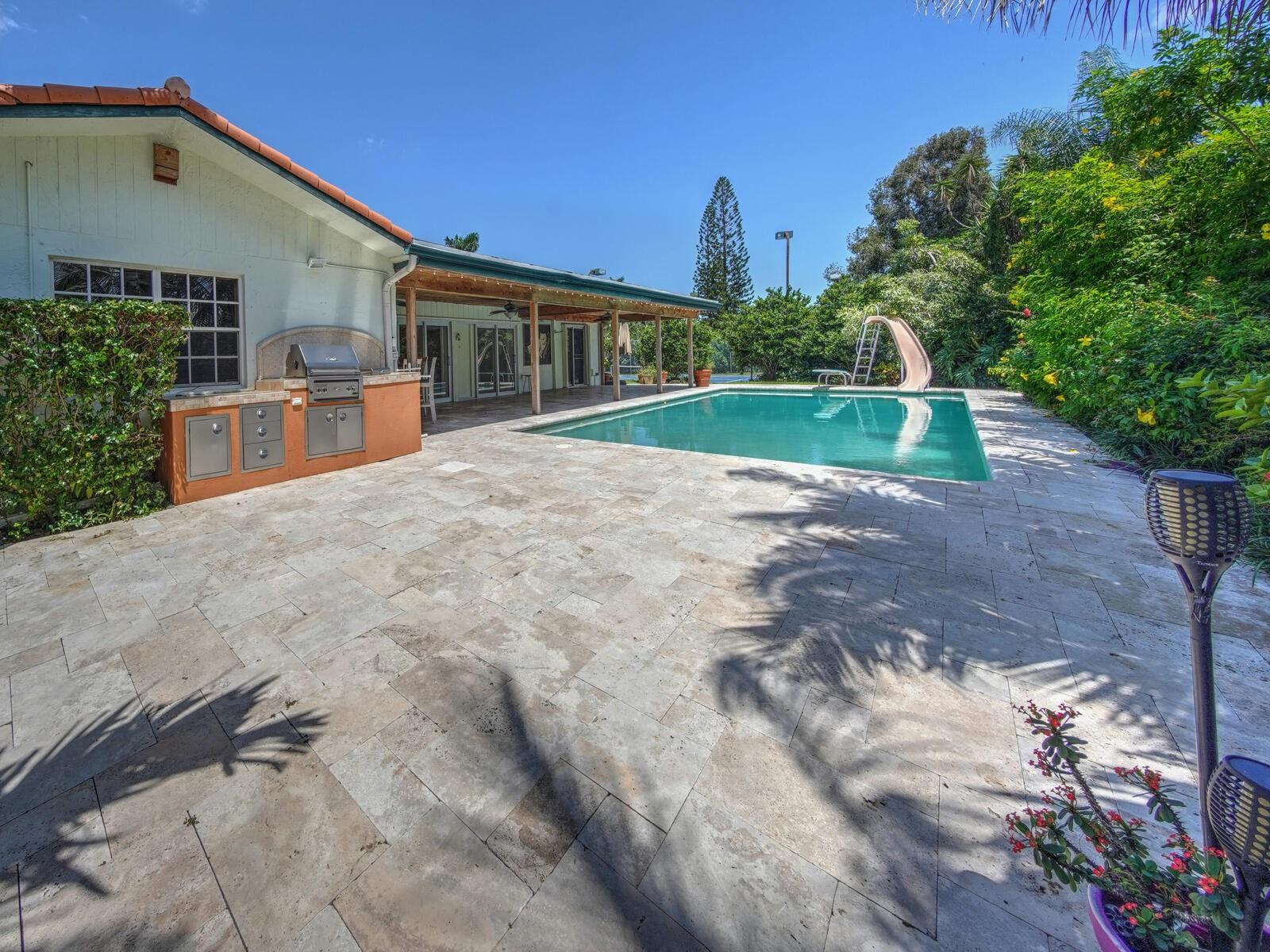 Welcome to this sprawling estate, featuring a spacious split floor plan, 4 bedrooms, 3 full baths, and a private home office off the master bedroom complete with a gas burning fireplace. The huge kitchen is a chef's delight, boasting a Viking refrigerator and gas range, granite countertops, wood cabinets and more! This captivating acre defines South Florida living at its best with outdoor entertainment like no other, including a 40'x20' diving pool, travertine deck, lighted tennis court, oversized covered patio, and wet bar! Garage converted to 5th bedroom/playroom can easily be converted back. Plenty of space to park your boat or RV. Want to play basketball or pickleball - your tennis courts can accommodate either. The possibilities are endless! Bring your horses too! Best of all no HOA!