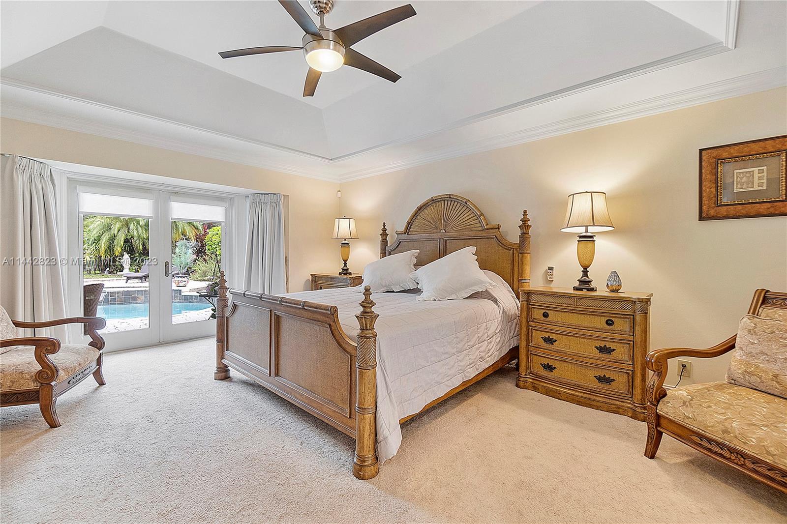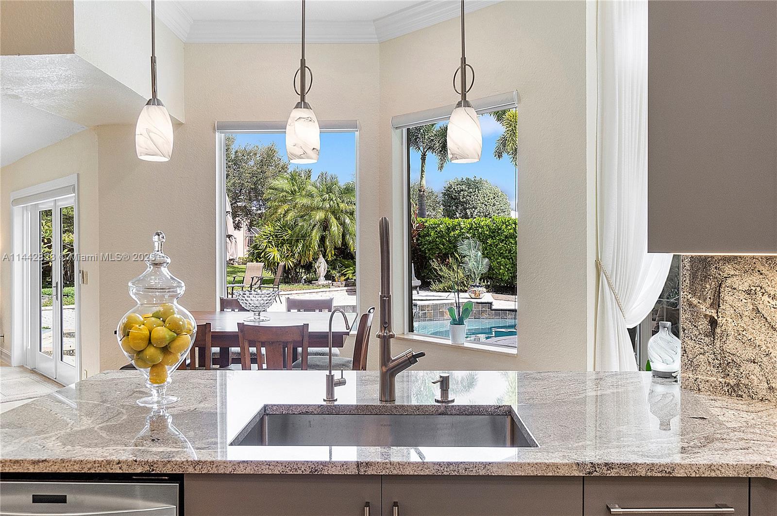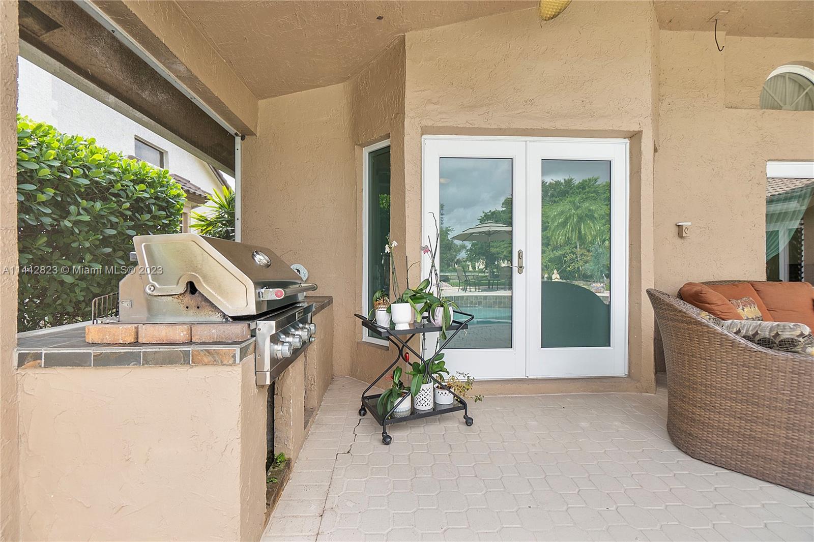 Eagle Trace community, 4 bedroom & 3.5 bath move-in ready dream home, one-story with pool and water view, high ceilings, upgrade kitchen, breakfast area, formal dining room, formal living room, family room, 3 cars garage & laundry room, impact glass windows, security alarm system, large patio with pergola and brick oven for entertain friend and families, gated community, Eagle Trace is a non-equity premier golf course community with only $236 HOA fee per month.