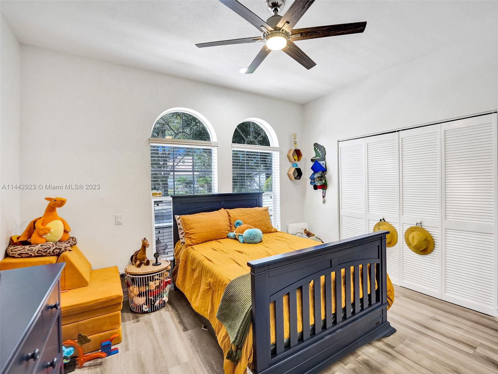 Welcome to this stunning custom 6 bed, 4 bath solar-powered home in the sought-after guard gated community of Eagle Trace. This luxurious home boasts an array of incredible features that are sure to impress. Inside, you'll find a spacious and inviting triple split floor plan with plenty of natural light & high-end finishes. Custom wood cabinets, vent, and quartz countertops in kitchen. Real wood-burning fireplace. Near the master there is a 6th room that could be used as a nursery, office, or just a quiet place to read or do some yoga. Step outside into one of the largest fenced yards in the community and you'll be greeted by a screened-in patio with bar and built-in kegerator, glass tiled pool w/waterfall, large screened, lots of green space perfect for children, pets, & entertaining.