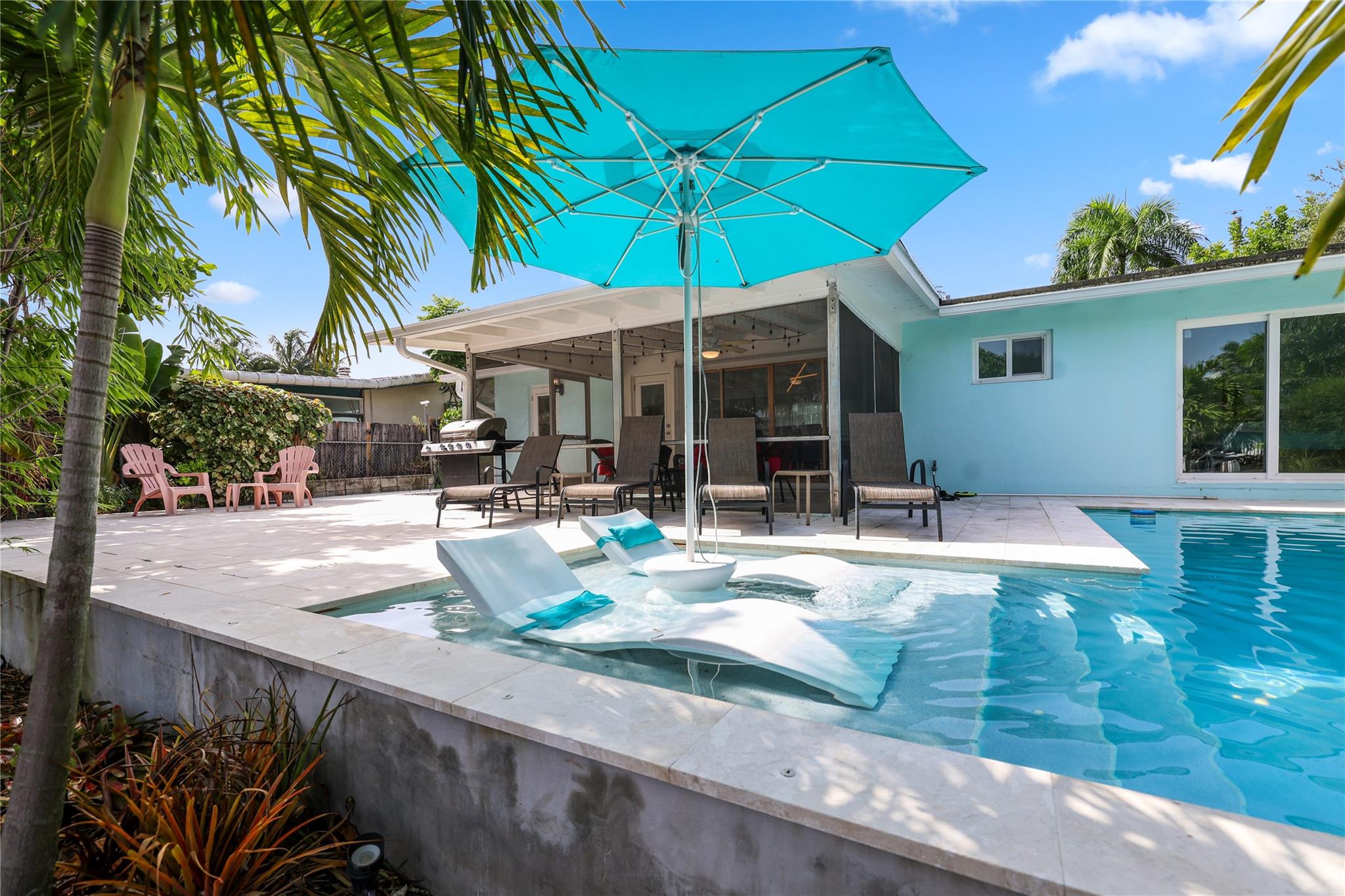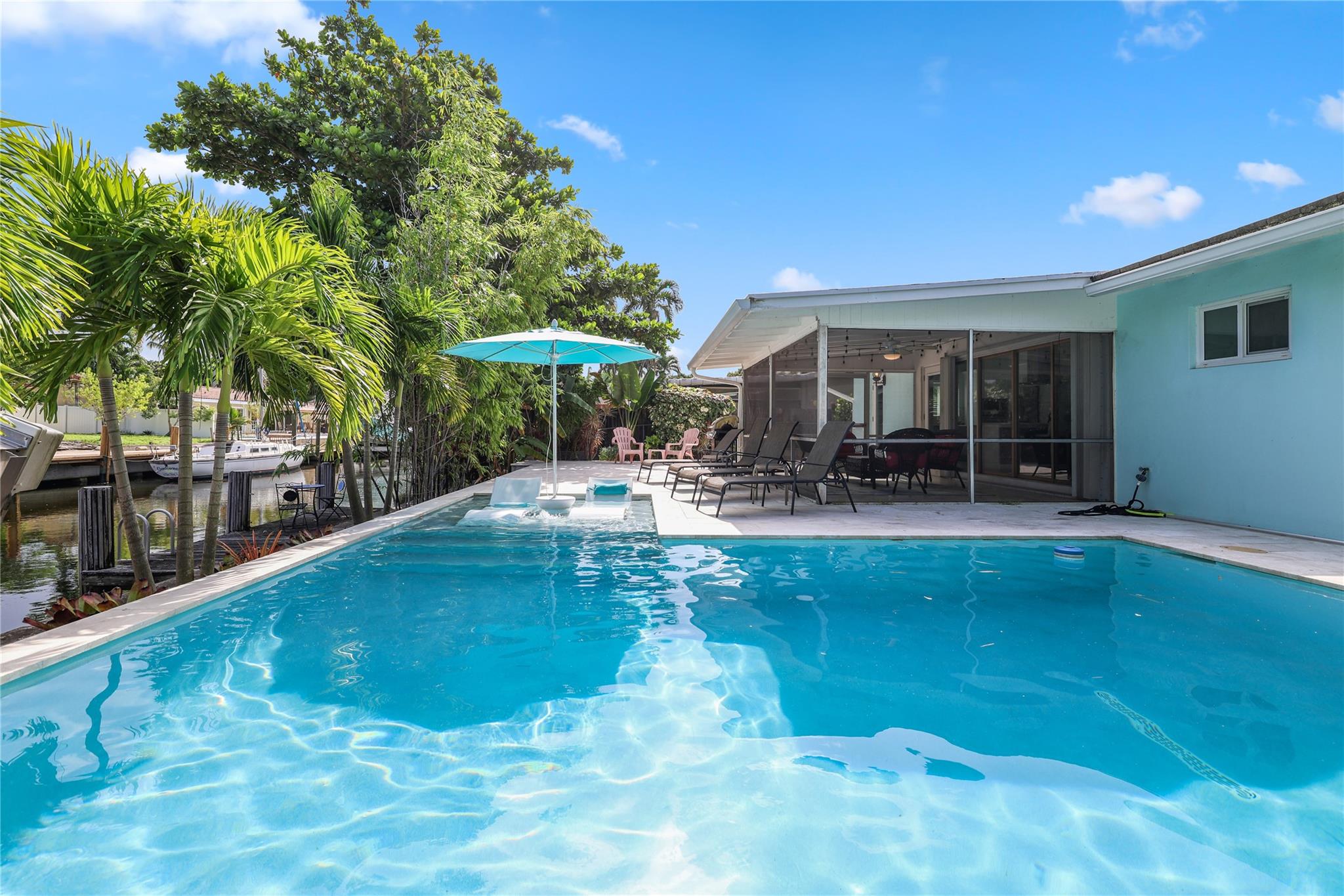 Beautiful 3/2 waterfront property on the North Fork canal with no fixed bridges to the ocean. Canal is deepwater, and dock includes a boatlift. Large screened-in patio is great for entertaining day & night. Great location just off of I-95 and Broward Blvd. Bathrooms, kitchen and plumbing has been beautifully remodeled. Vinyl impact windows throughout the home, and solid exterior make this home a safe and sound structure. Great location in a beautiful neighborhood! *Furnished pricing option available*