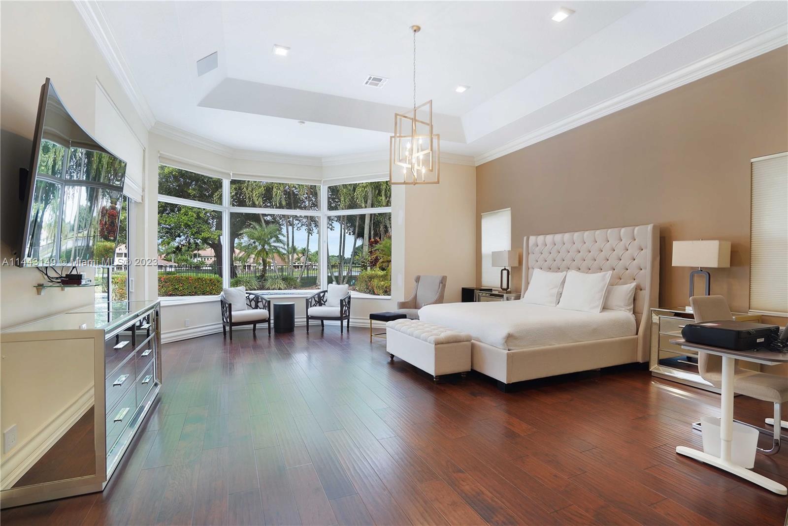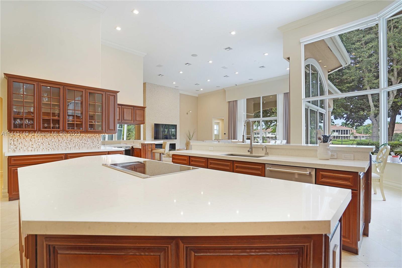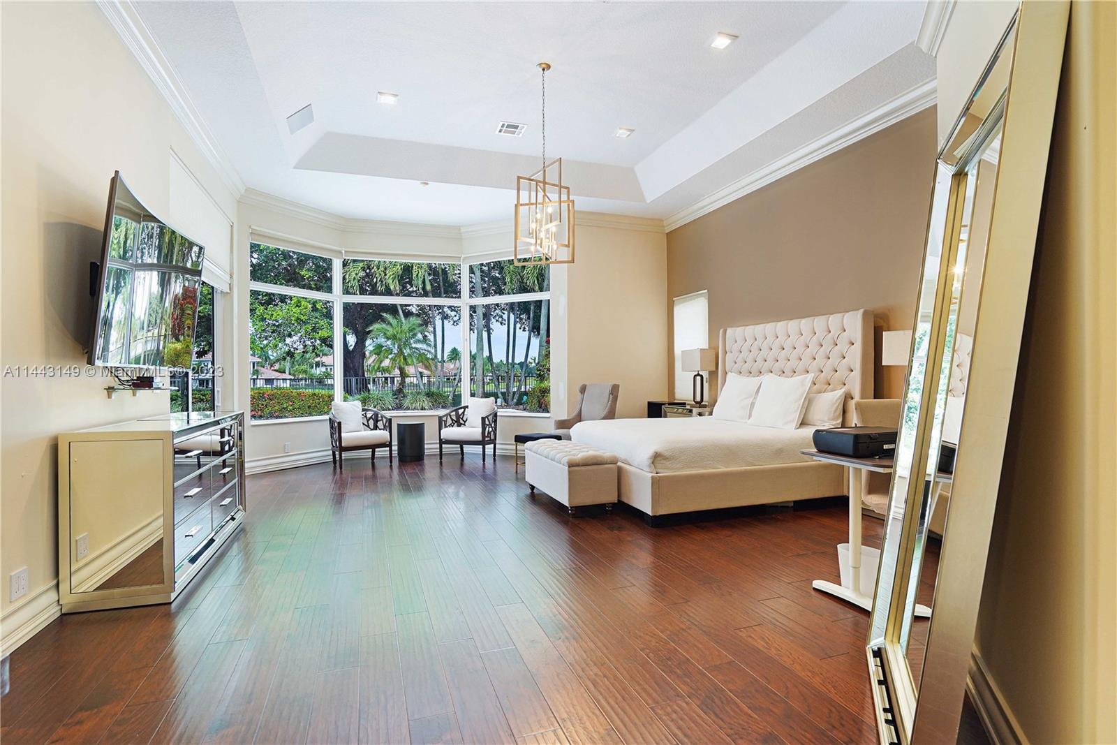 MAGNIFICENT CUSTOM MADE BREATHTAKING HOME WITH GOLF TO LAKE VIEW ON CUL-DE-SAC IN THE BEST COMMUNITY. AMAZING MASTER BEDROOM WITH ADDITIONAL BRAND NEW BUILT BEDROOM IN THE GARAGE. ELEGANT MARBLE FLOORS IN SPACIOUS LIVING AREA. 16FT CEILINGS AND HUGE HURRICANE IMPACT WINDOWS INSTALLED 2021. FABULOUS GOURMET KITCHEN, WITH ALL APPLIANCES, EXQUISITE FAMILY ROOM, WET BAR AND FIREPLACE. NEW ROOF, NEW A/C, ALL BATHROOMS REMODELED! ALL BEDROOMS WOODEN FLOORS AND CLOSETS. NEW EQUIPMENT FOR JACUZZI AND POOL. REMODELED GARAGE WITH A/C. SURROUND SYSTEM THRUOUT THE HOUSE.