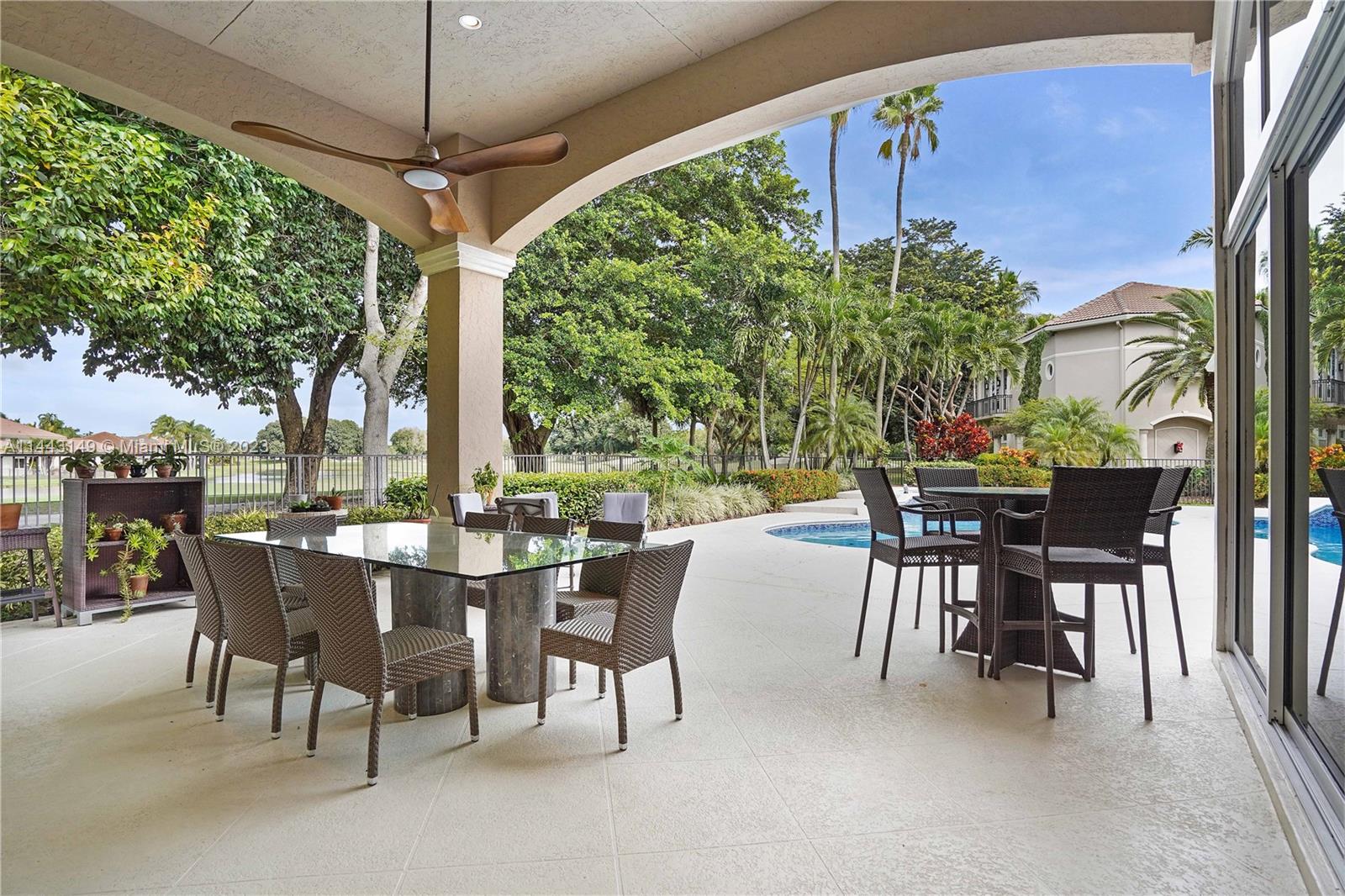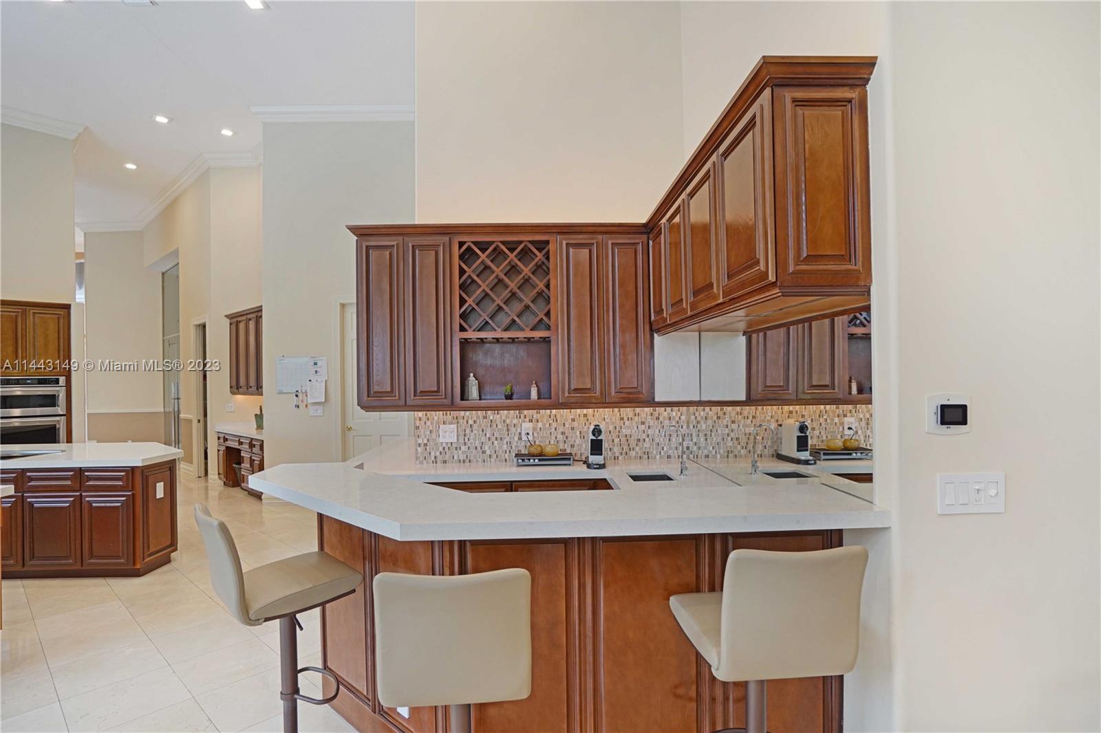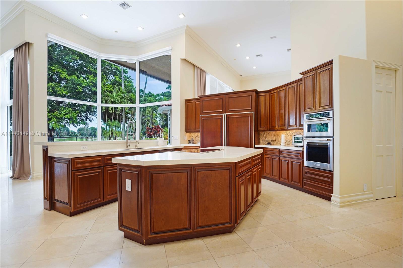 MAGNIFICENT CUSTOM MADE BREATHTAKING HOME WITH GOLF TO LAKE VIEW ON CUL-DE-SAC IN THE BEST COMMUNITY. AMAZING MASTER BEDROOM WITH ADDITIONAL BRAND NEW BUILT BEDROOM IN THE GARAGE. ELEGANT MARBLE FLOORS IN SPACIOUS LIVING AREA. 16FT CEILINGS AND HUGE HURRICANE IMPACT WINDOWS INSTALLED 2021. FABULOUS GOURMET KITCHEN, WITH ALL APPLIANCES, EXQUISITE FAMILY ROOM, WET BAR AND FIREPLACE. NEW ROOF, NEW A/C, ALL BATHROOMS REMODELED! ALL BEDROOMS WOODEN FLOORS AND CLOSETS. NEW EQUIPMENT FOR JACUZZI AND POOL. REMODELED GARAGE WITH A/C. SURROUND SYSTEM THRUOUT THE HOUSE.