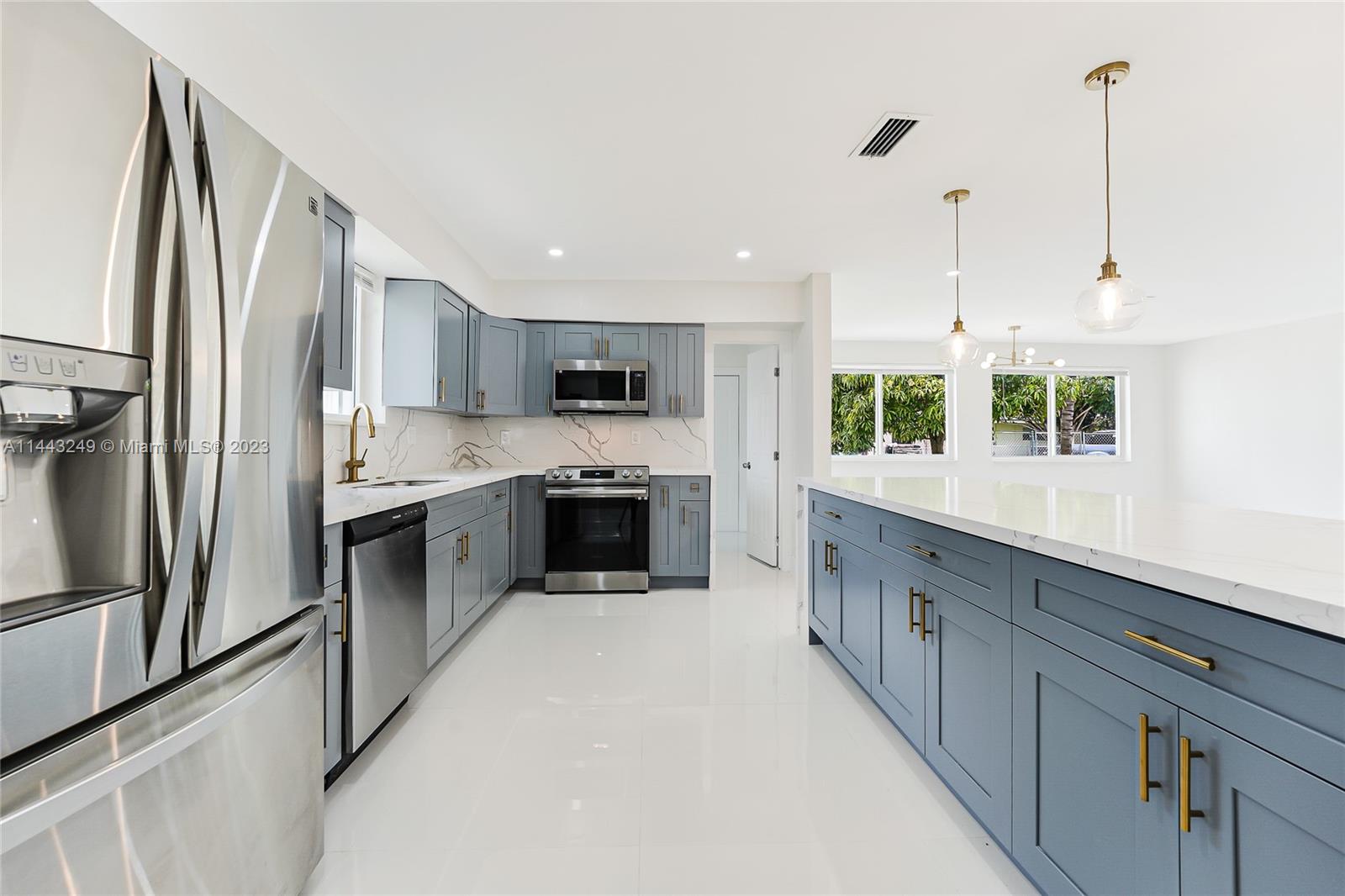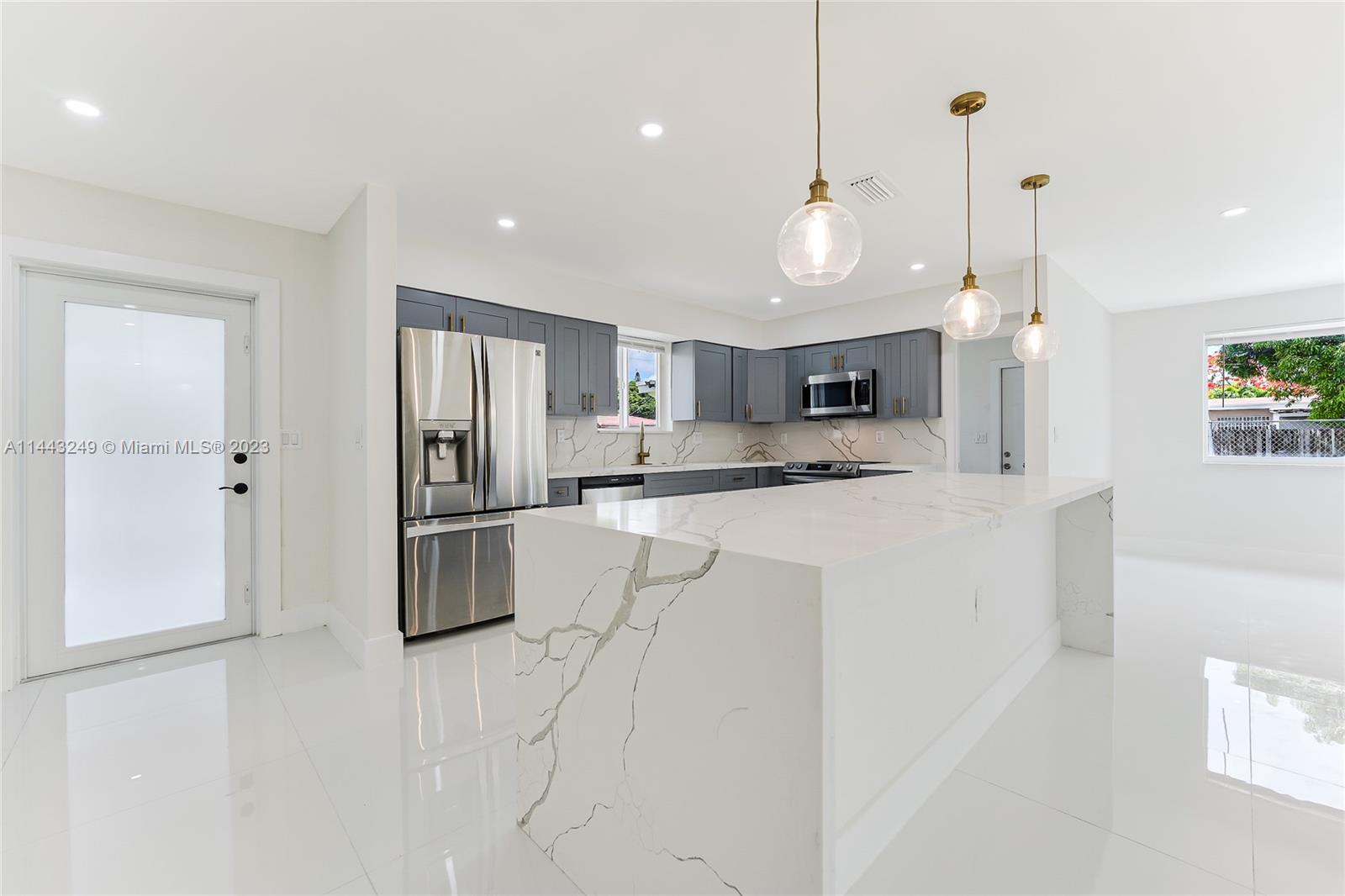 TURN-KEY OVERSIZED 4-BED/ 2-BATH HOUSE IN THE MOST CONVENIENT AND PRIME LOCATION! With almost 1900 sqft of living area, this house has been stylishly remodeled featuring a long list of upgrades including BRAND NEW 2023 ROOF, impact-proof windows and doors throughout, new porcelain and tile flooring, stylish kitchen with grey wood cabinetry, quartz countertops, and stainless steel high-end appliances, full washer and dryer in separate laundry room, one-of-a-kind bathrooms, closet cabinetry, 1-spot covered parking garage, and much more. Sitting on an extensive 9,300+ corner lot, this house has more than enough room to fit a pool and is perfect for entertaining. PERFECT LOCATION WITHIN 10 MINUTE DRIVE FROM THE BEACH, NEARBY TOP SCHOOLS, PARKS, SHOPS, AND MORE.